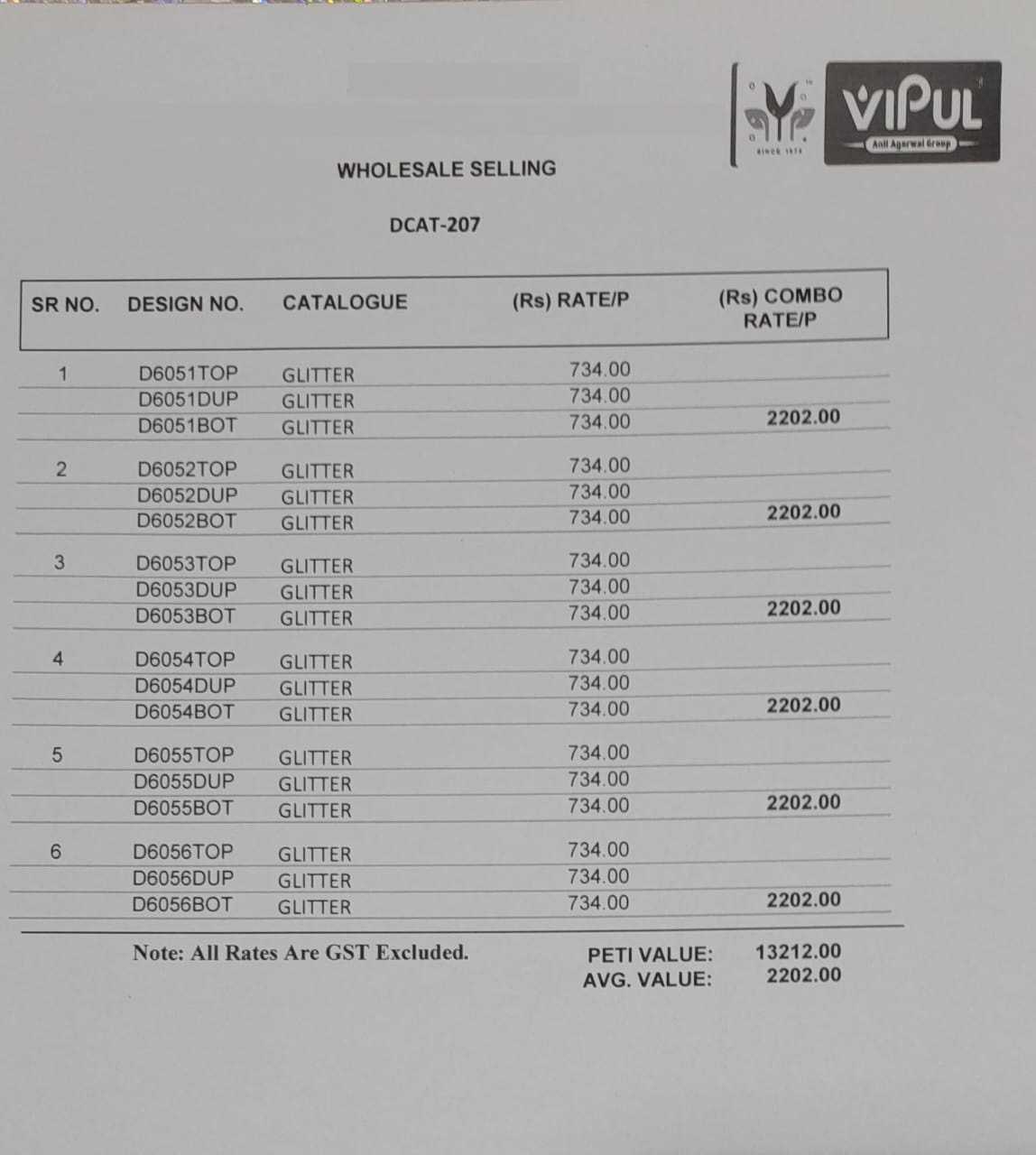 VIPUL TOP DUPATTA BOTTOM/INNER RATE: |