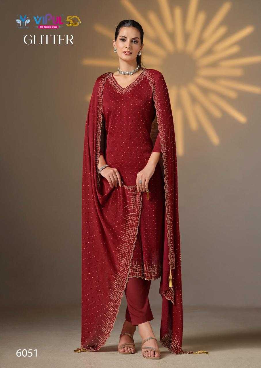 glitter by vipul fashion satin chiffon unique style ladies suits