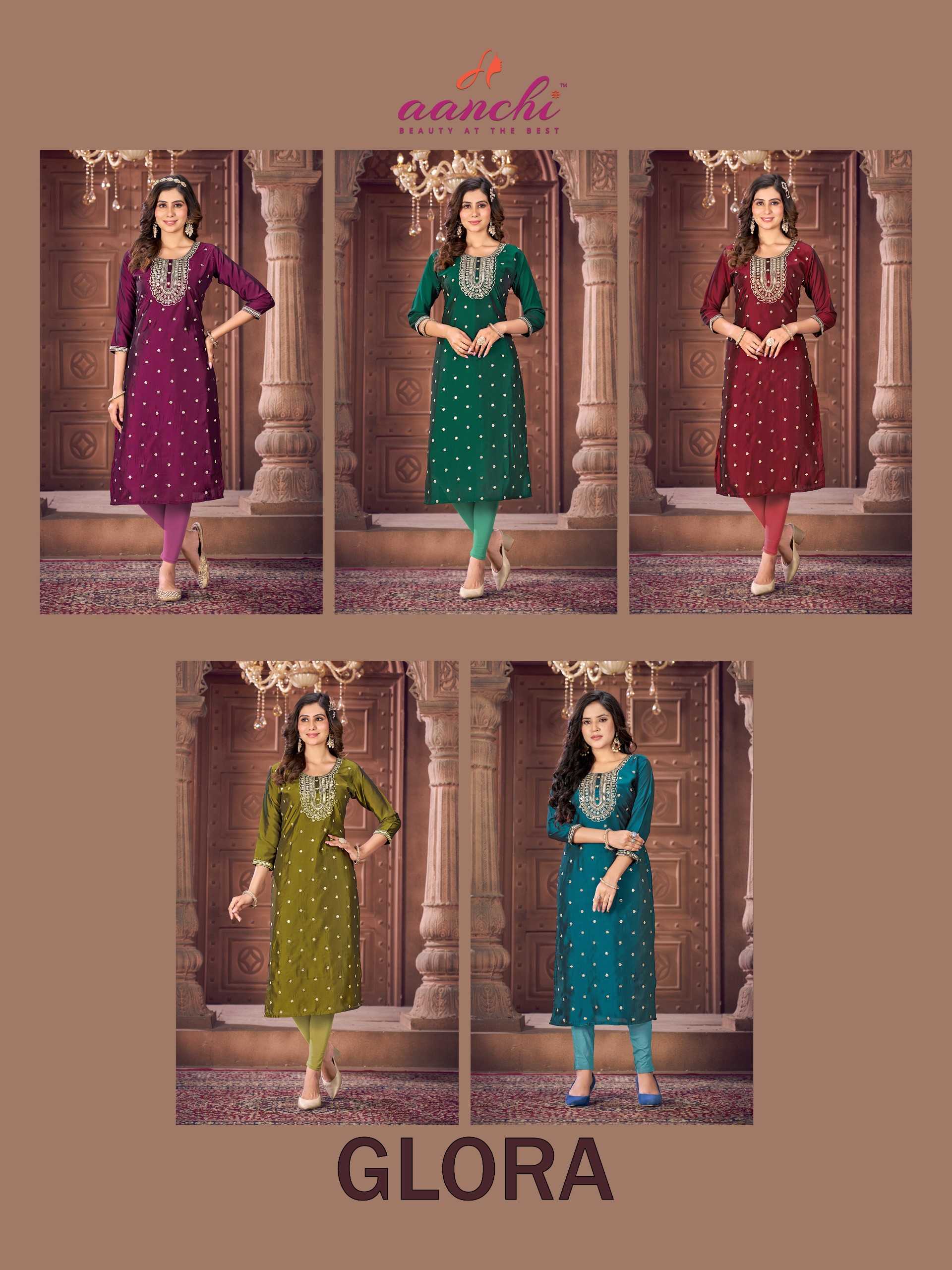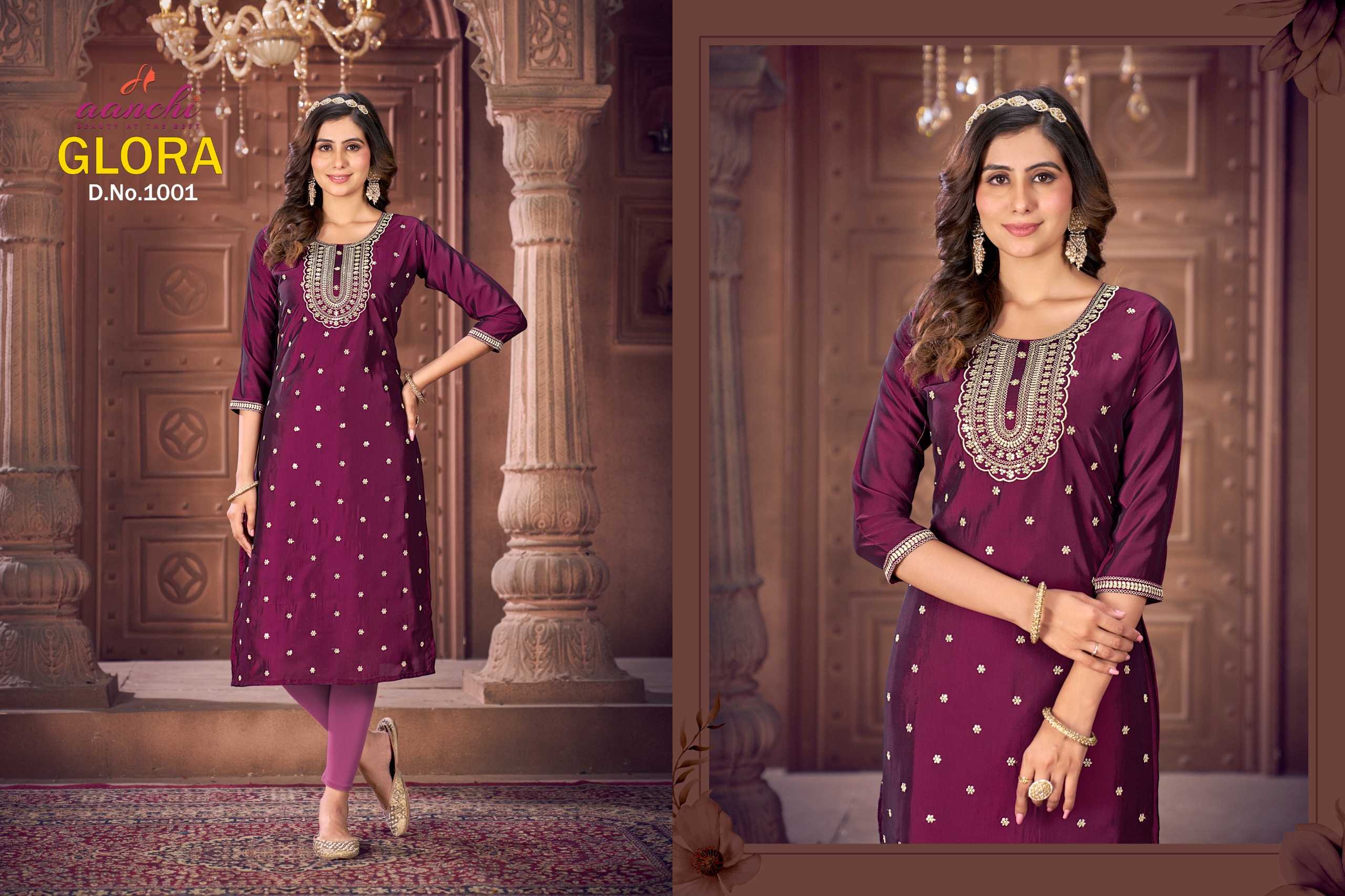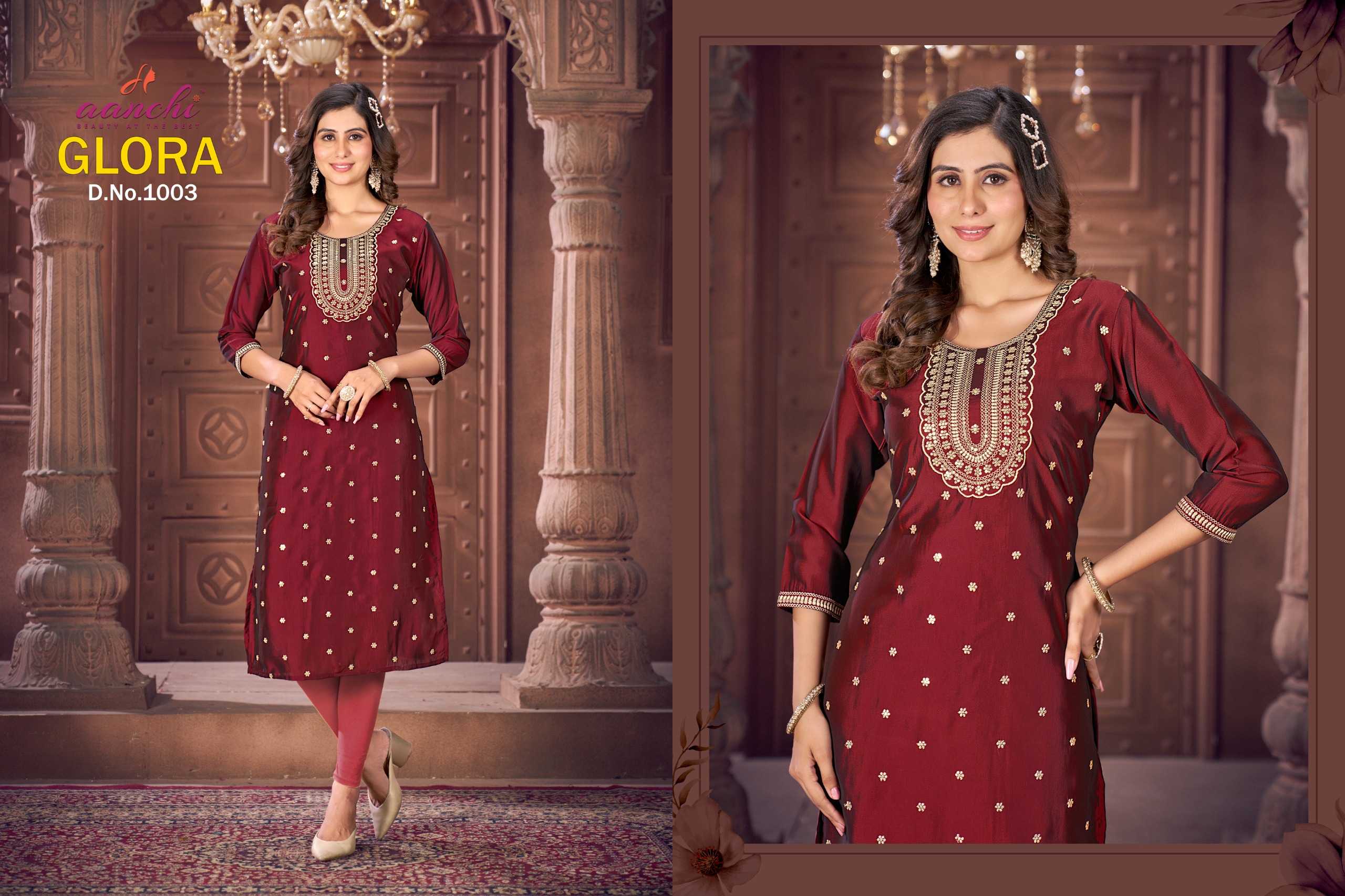 glora by aanchi kurti fancy readymade rangeela silk straight cut long kurti