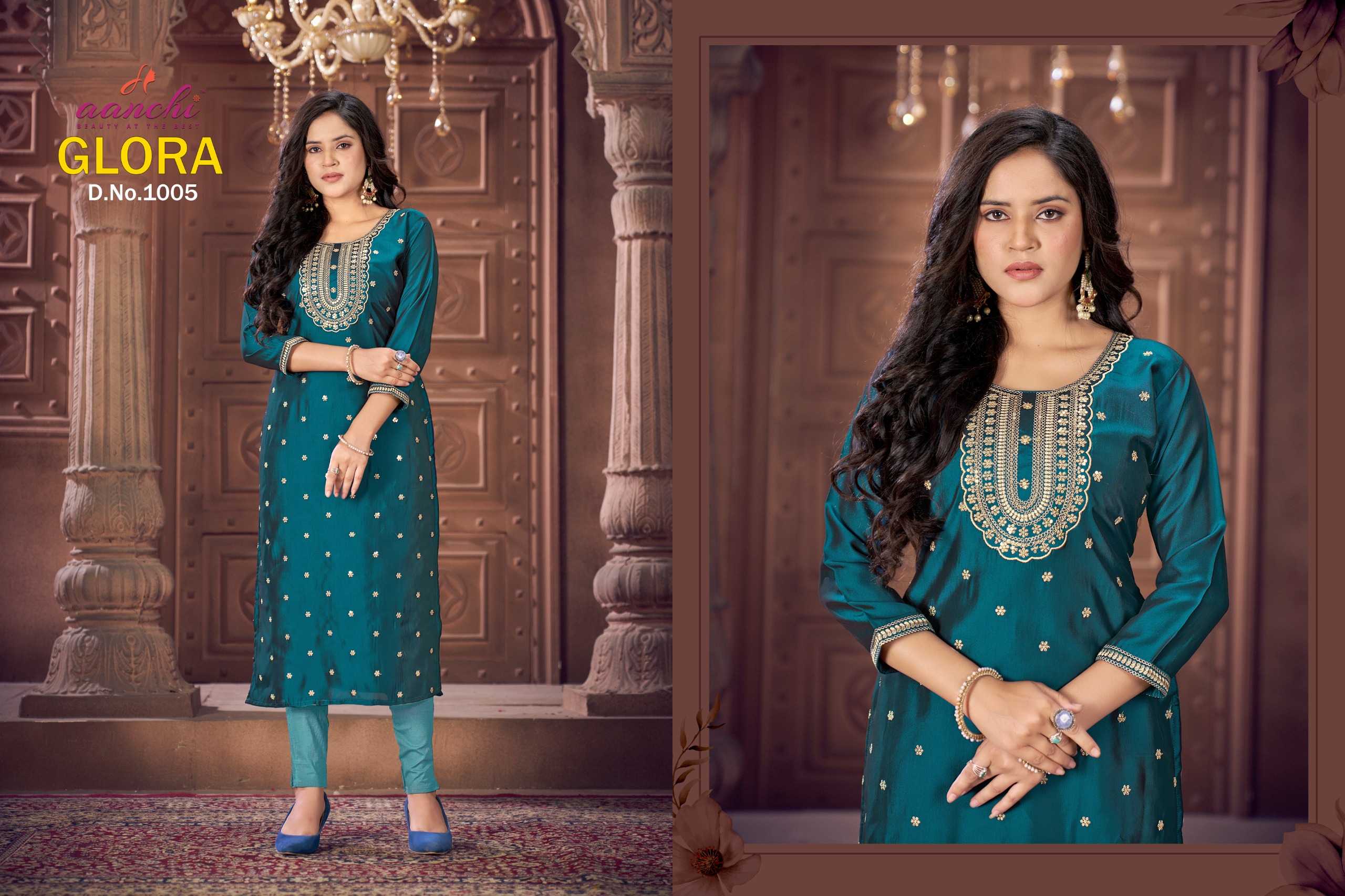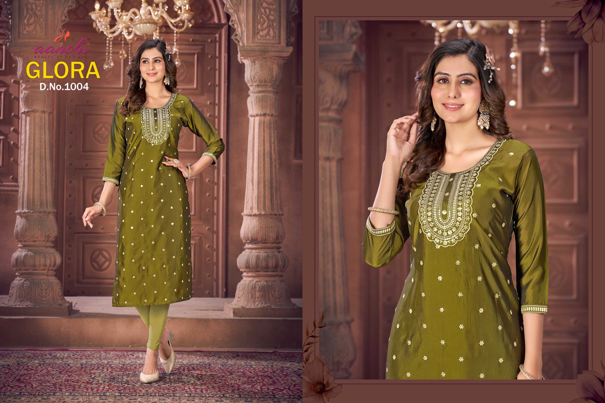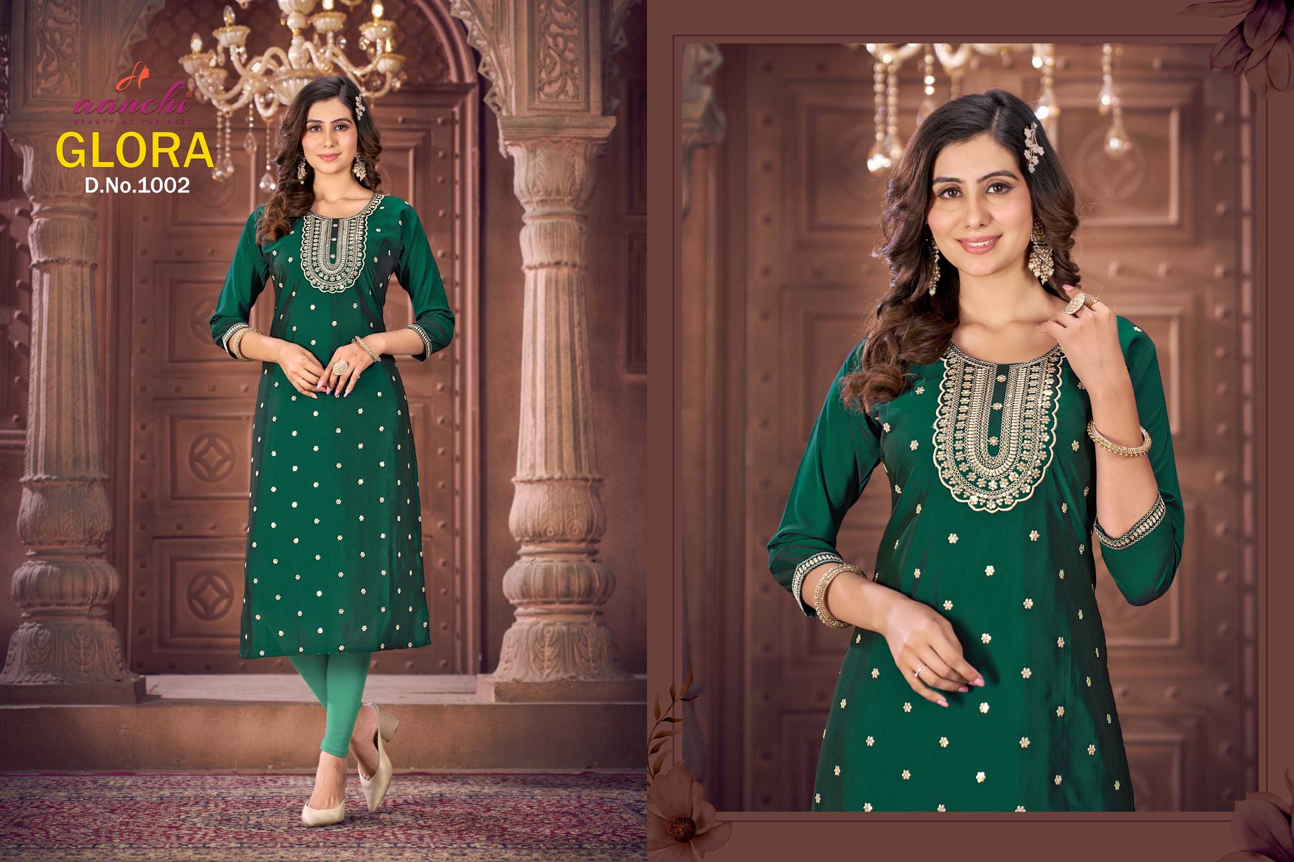 glora by aanchi kurti fancy readymade rangeela silk straight cut long kurti