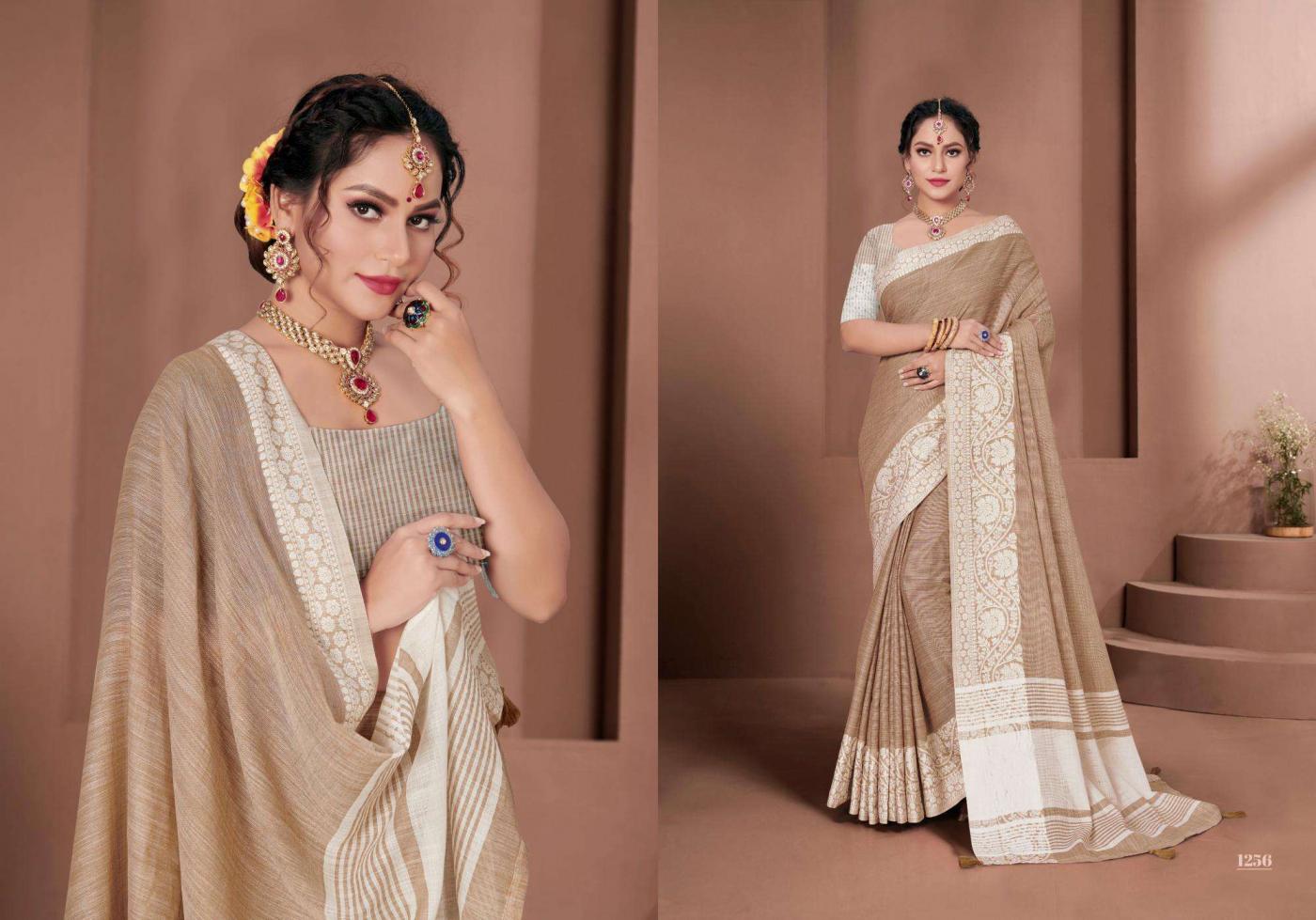 Glossy by astita fancy designer linen fabric saree with Lakhnavi Bordar wholesale saree with latkan