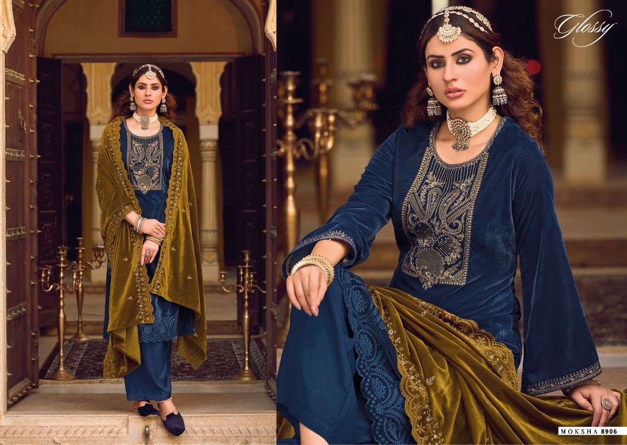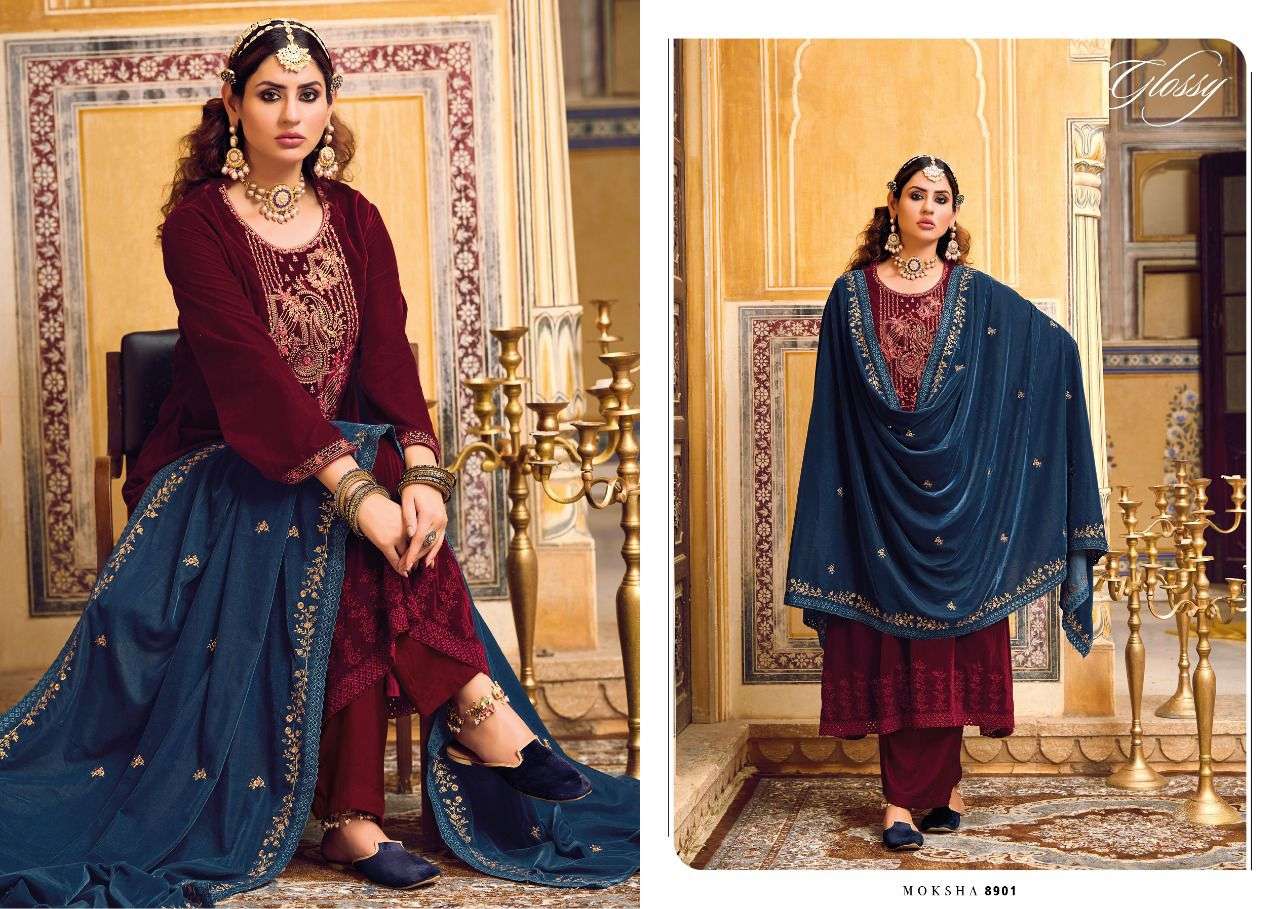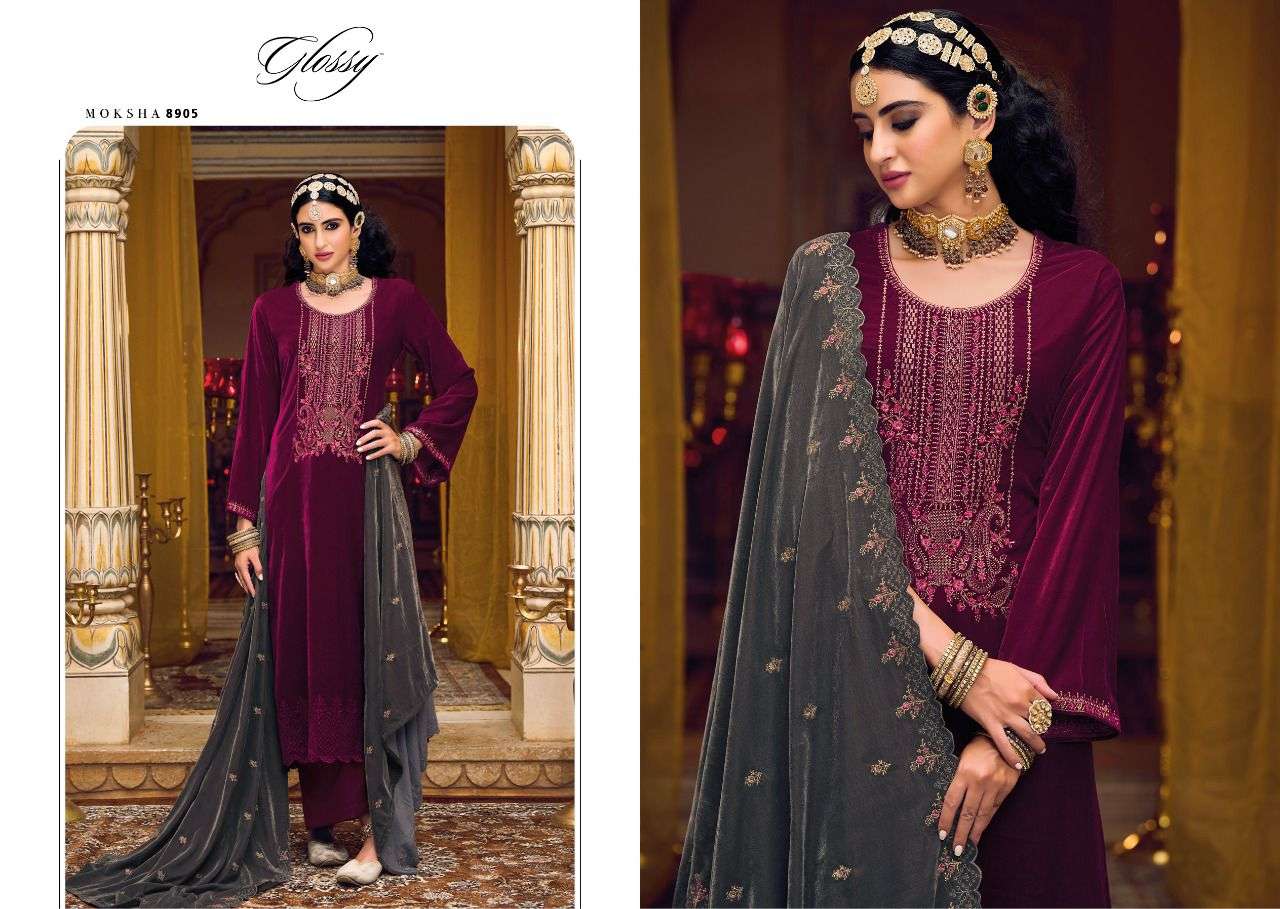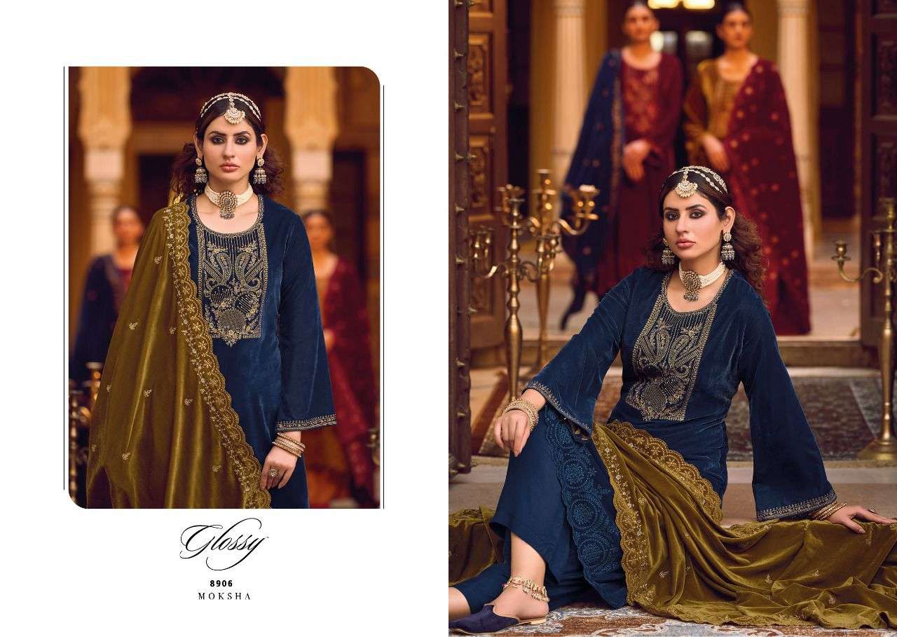 glossy moksha 8901-8906 velvet suit for women wholesale price