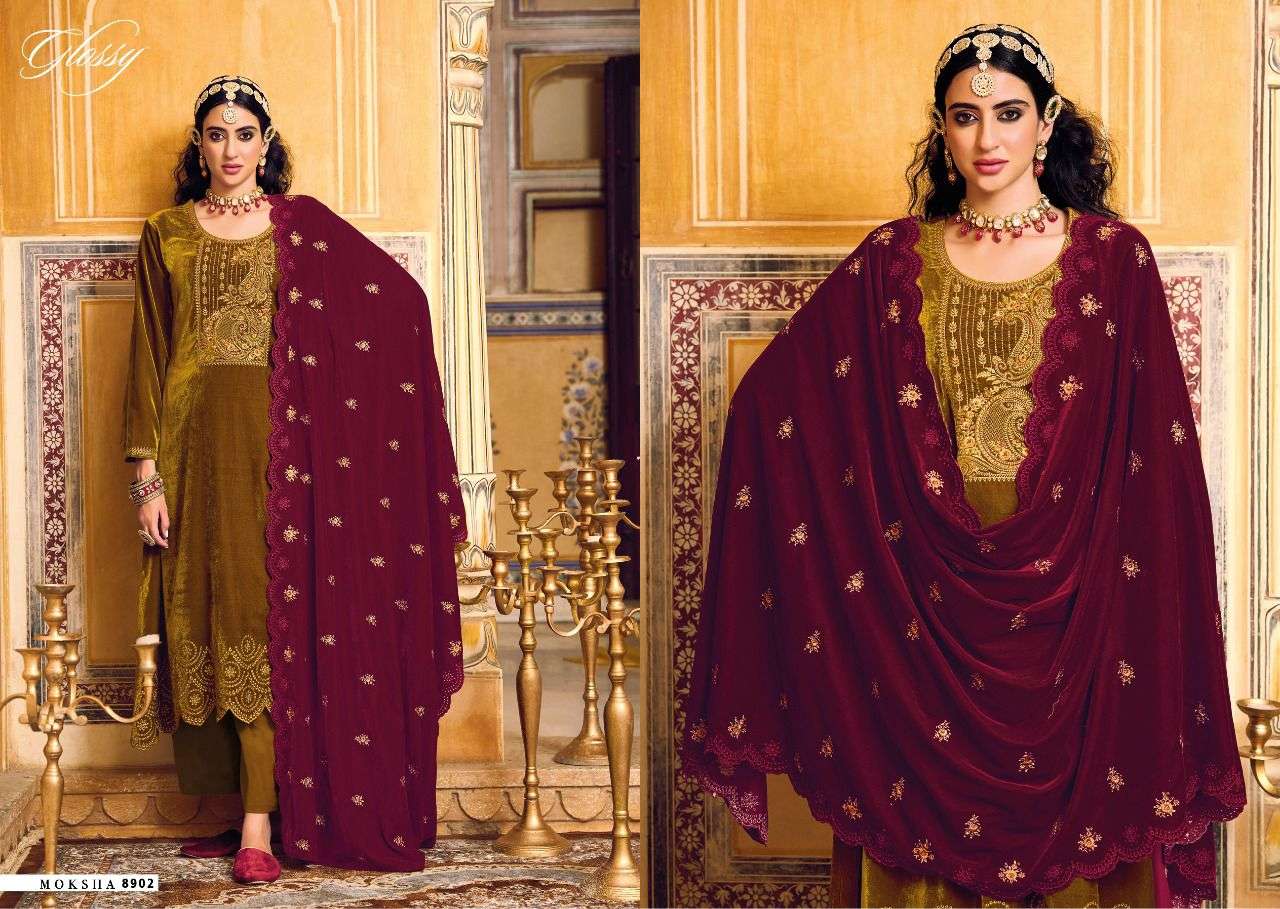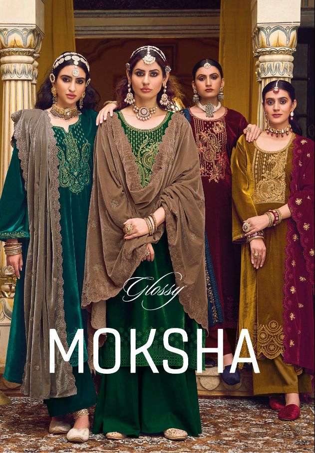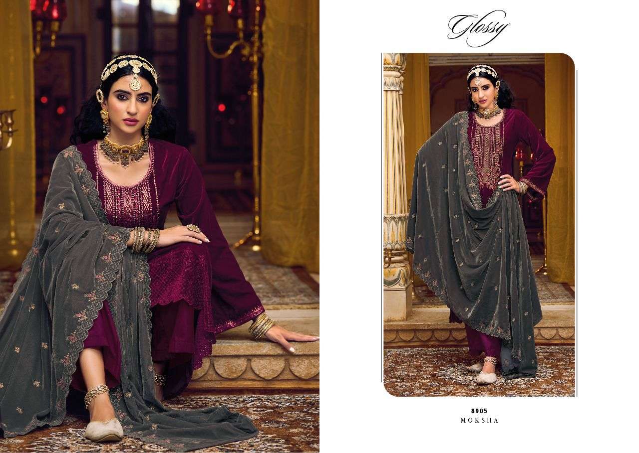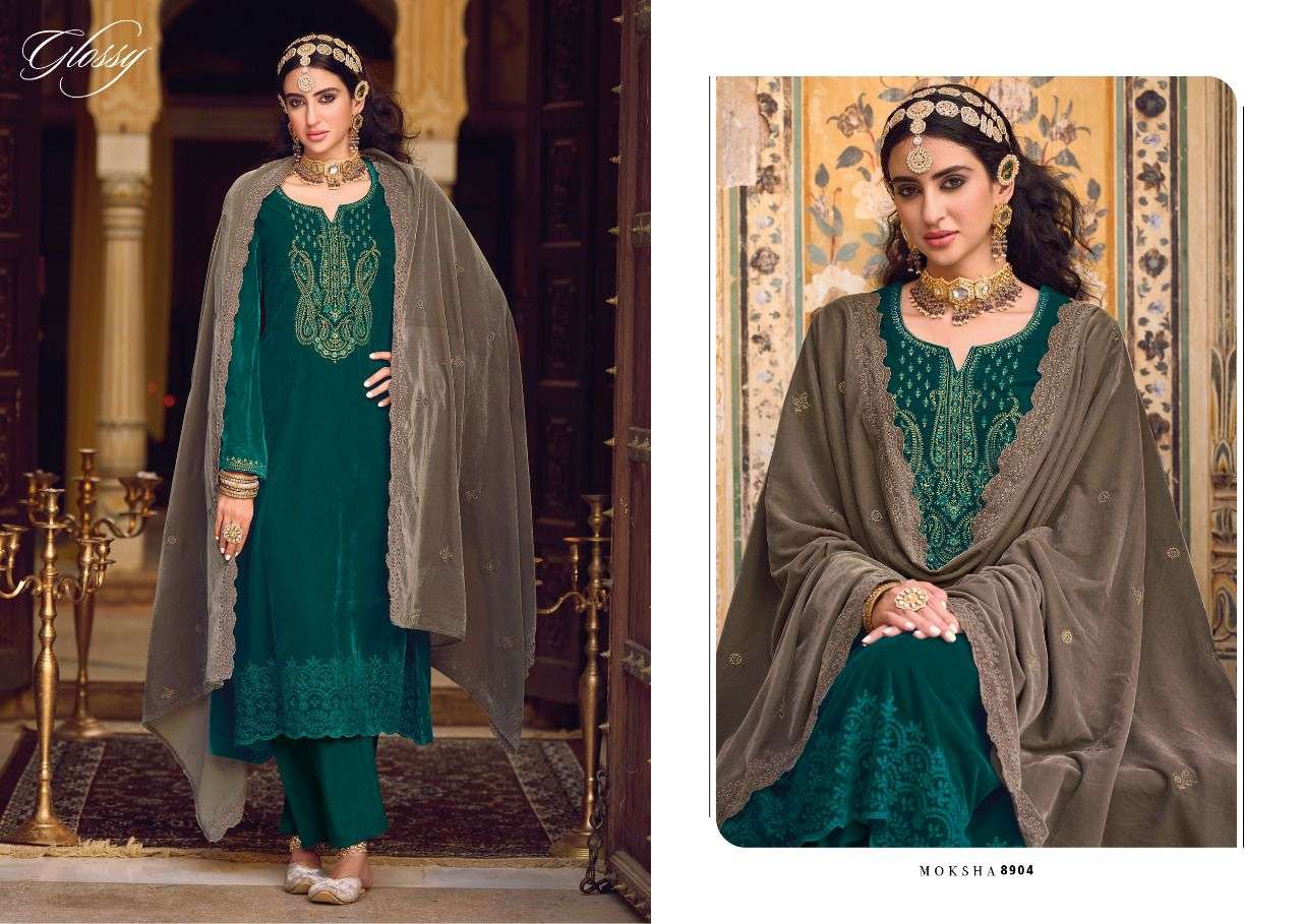 glossy moksha 8901-8906 velvet suit for women wholesale price