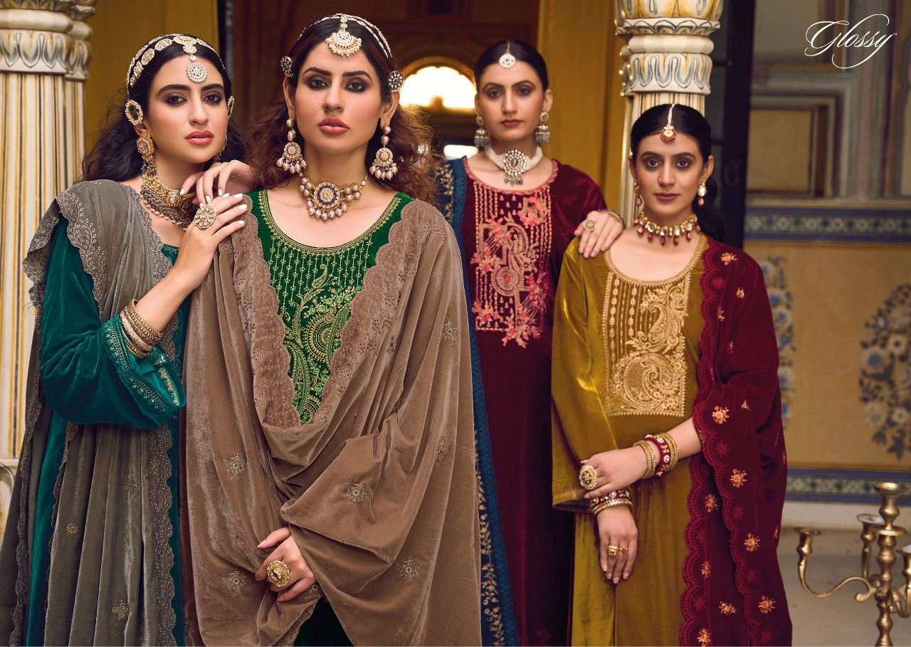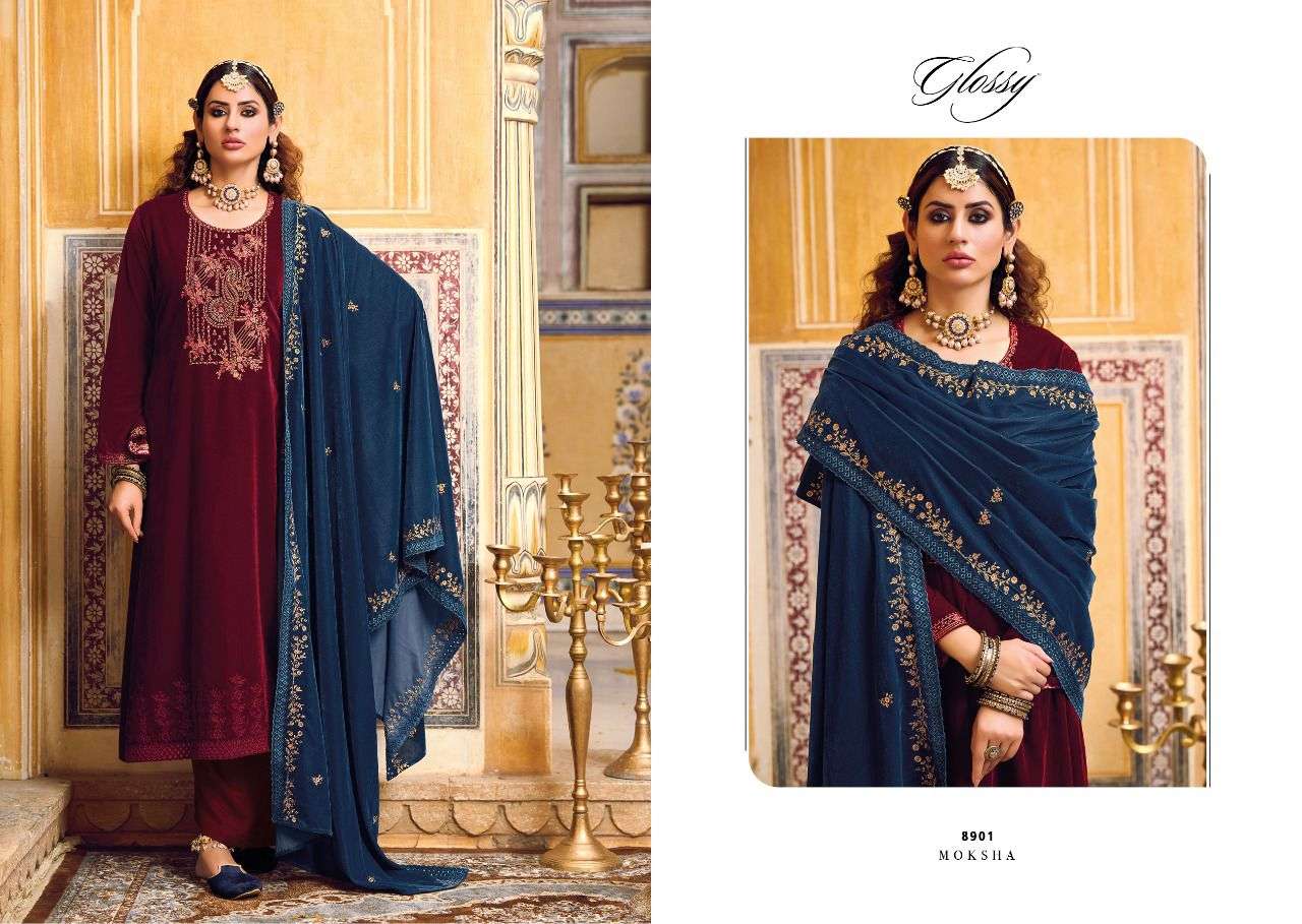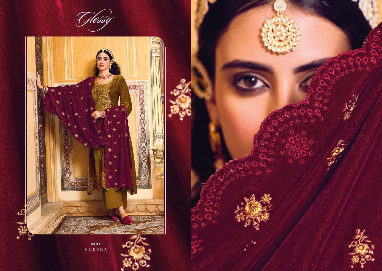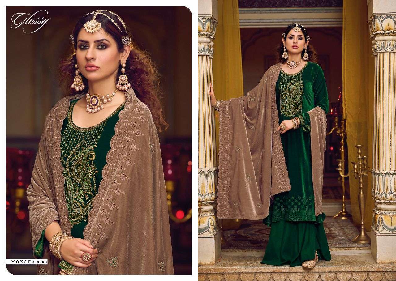 glossy moksha 8901-8906 velvet suit for women wholesale price