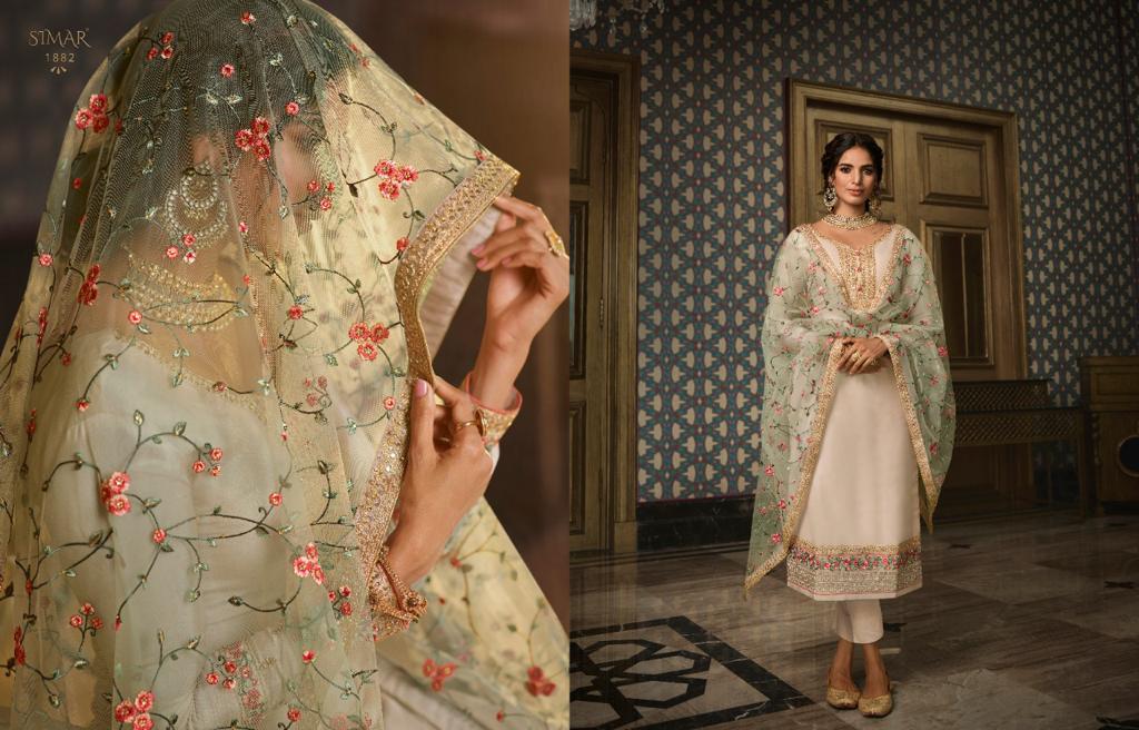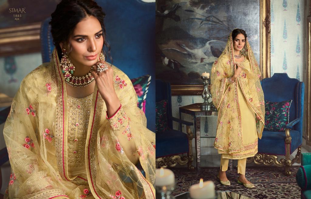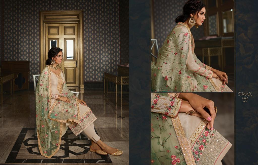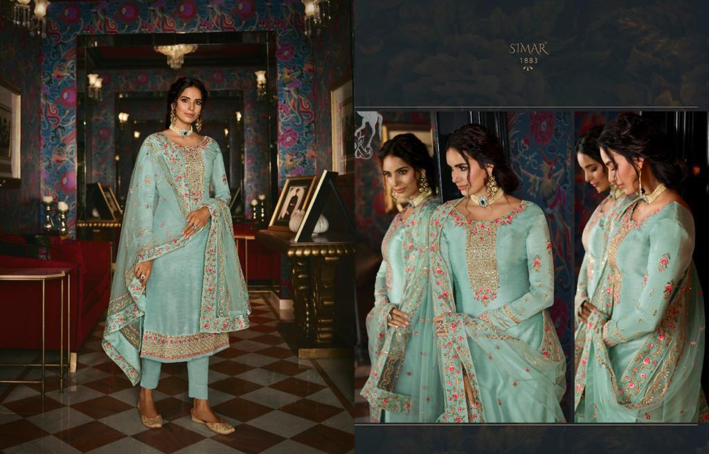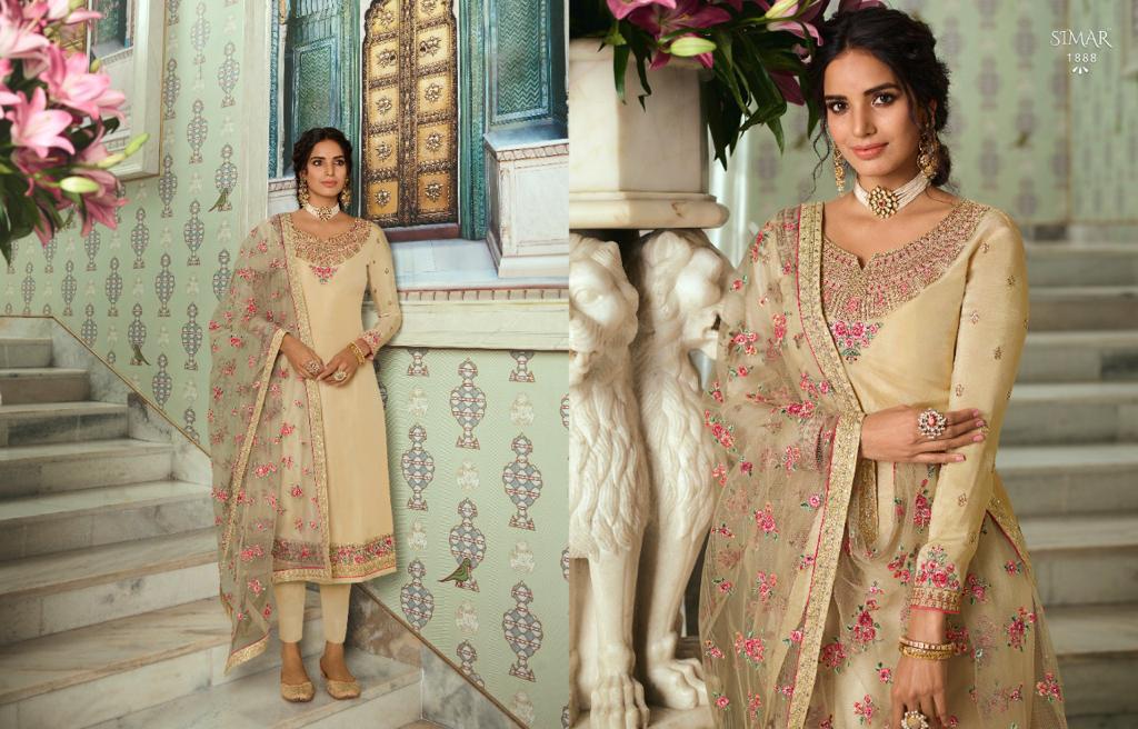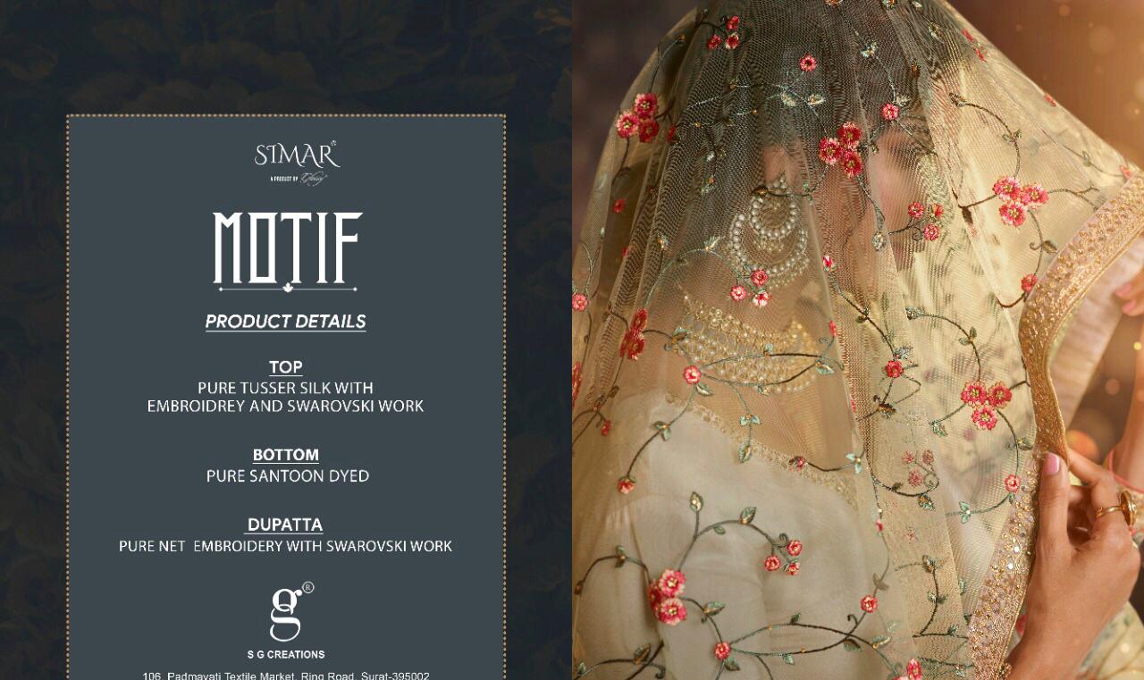 Glossy Motif 1881-1888 Series Tussar Silk With Embroidery Work Wedding And Festival Wear Suits