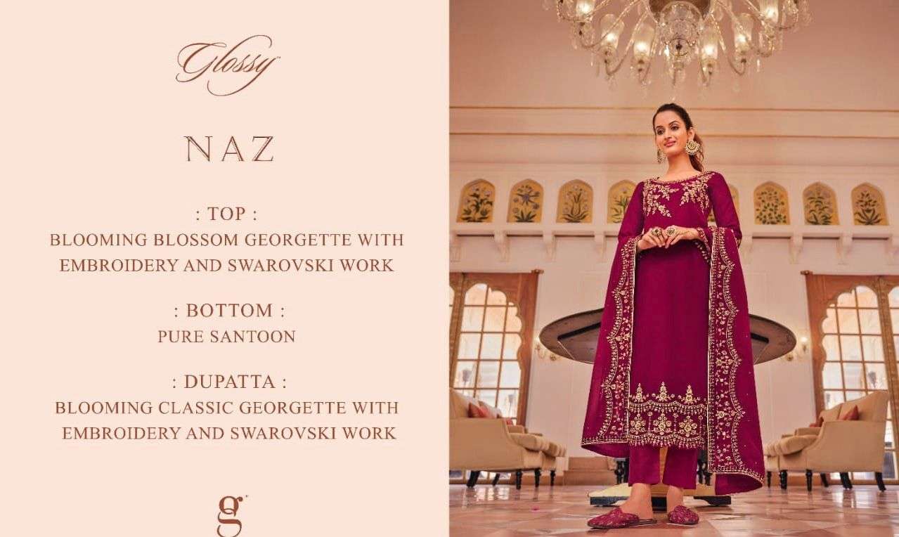 glossy naaz heavy embroidery elegant salwar kameez design 2022