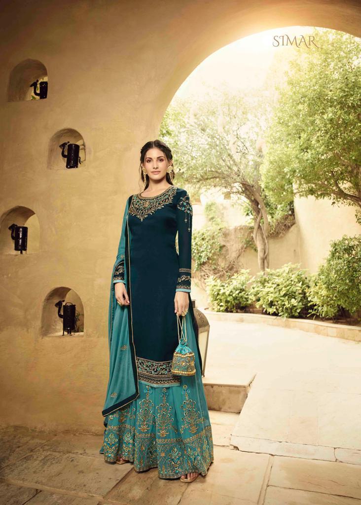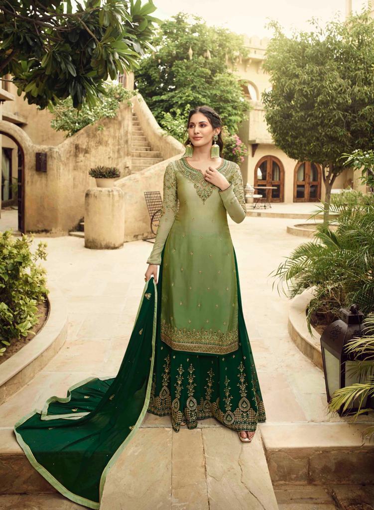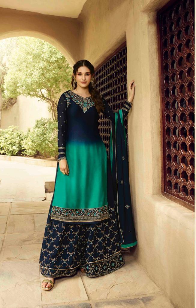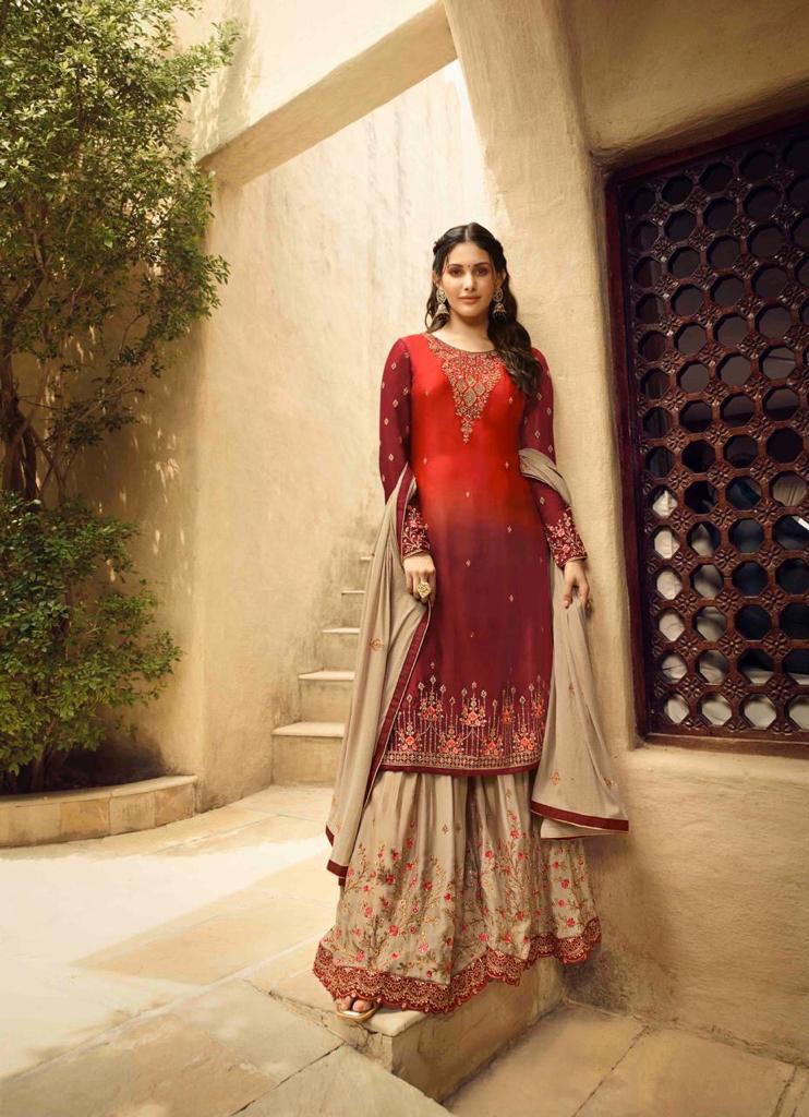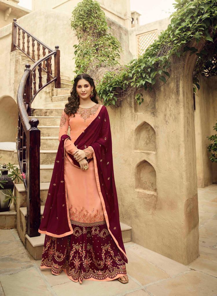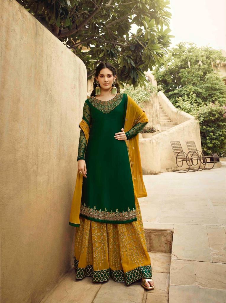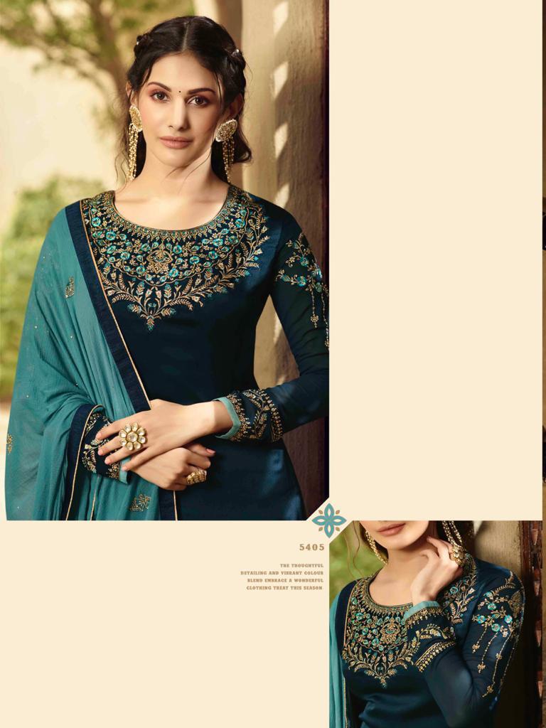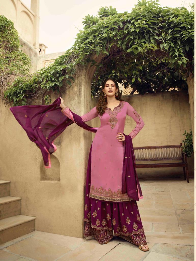 Glossy Raga 5400-5407 Series Satin Georgette Sharara Style Embroidery Salwar Suit