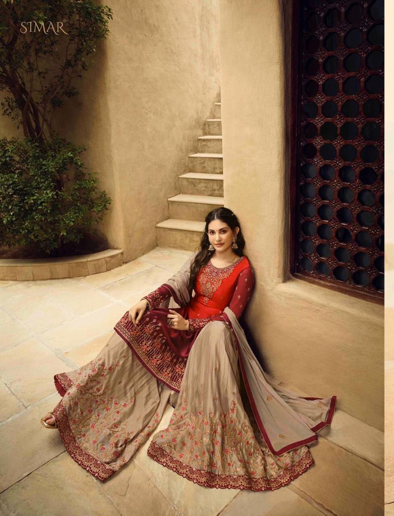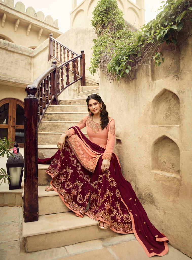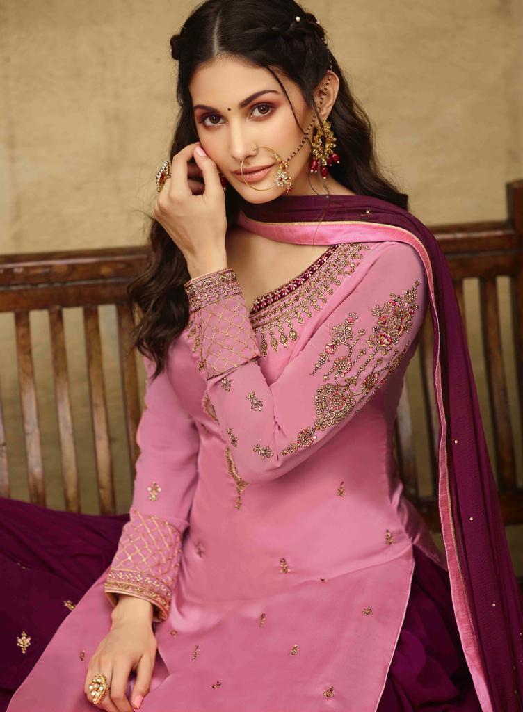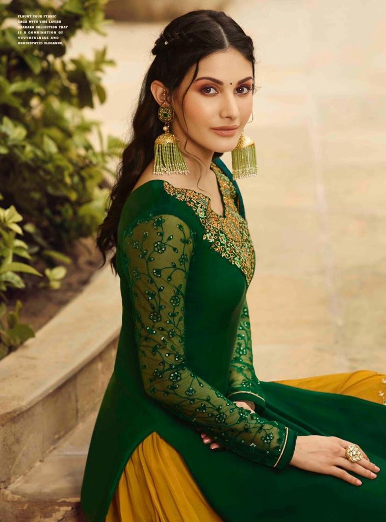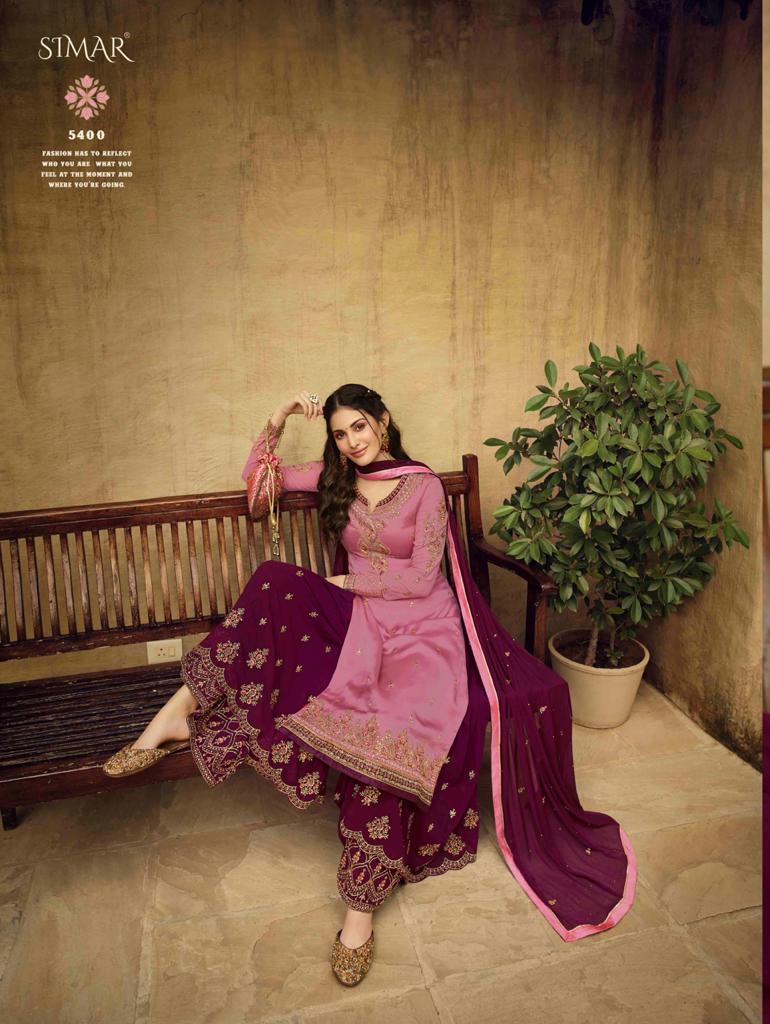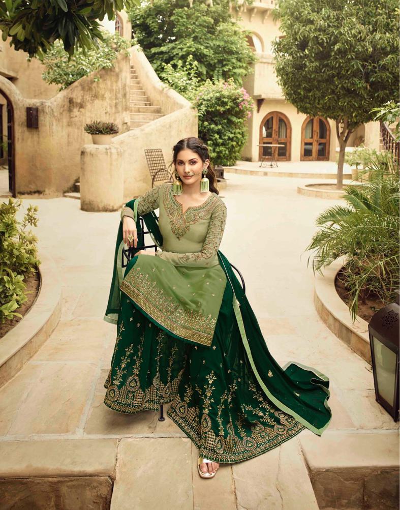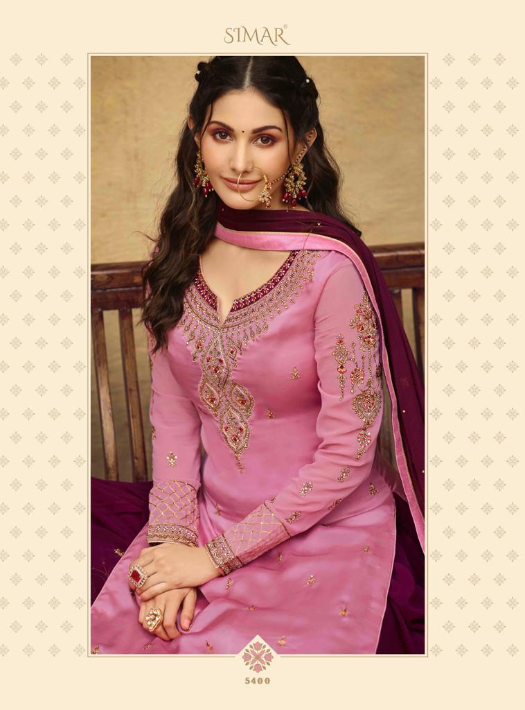 Glossy Raga 5400-5407 Series Satin Georgette Sharara Style Embroidery Salwar Suit