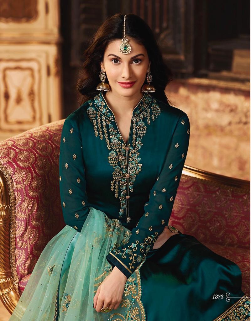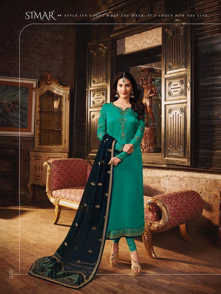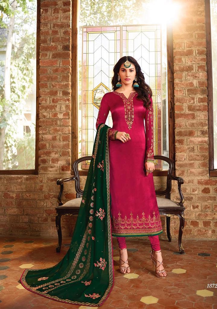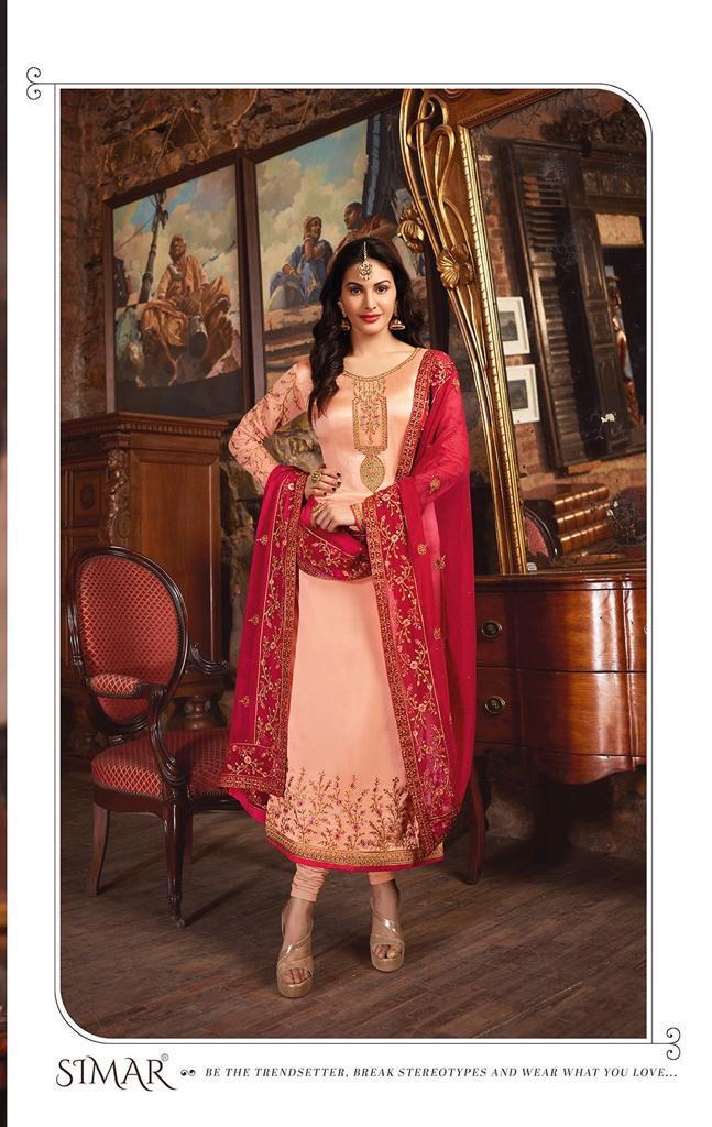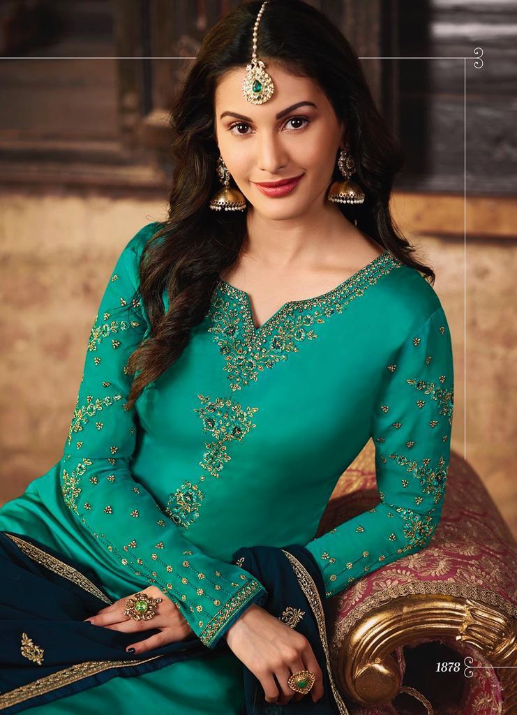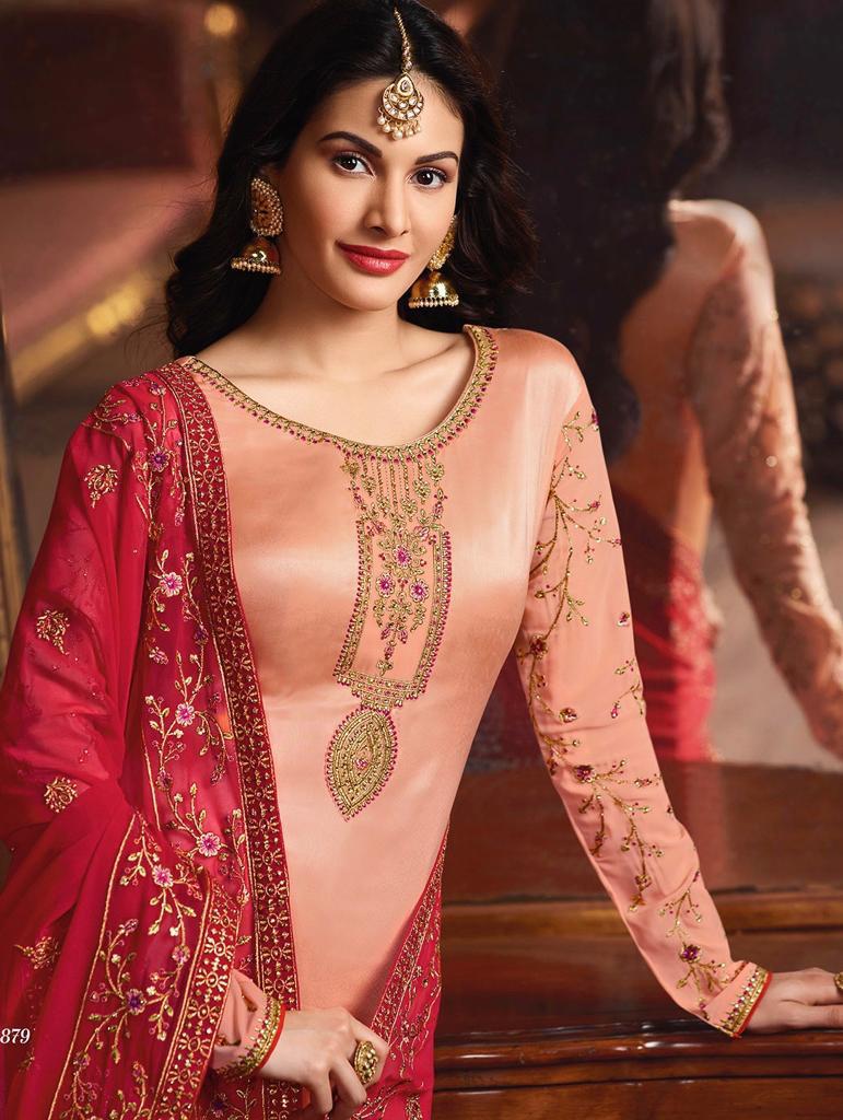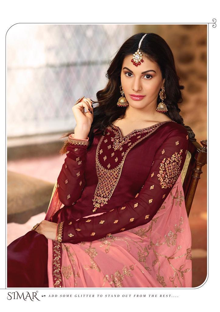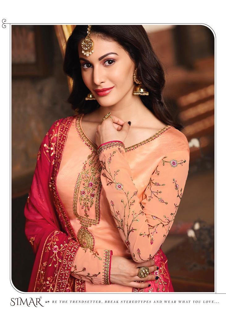 Glossy Lajja Satin georgette with embroidery and sarwoski work with georgette or net with embroidery dupatta Price- 1795/- Delivery 4 -5 Days |