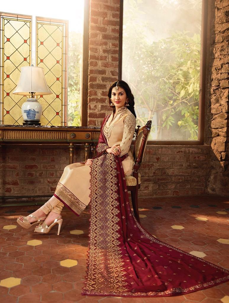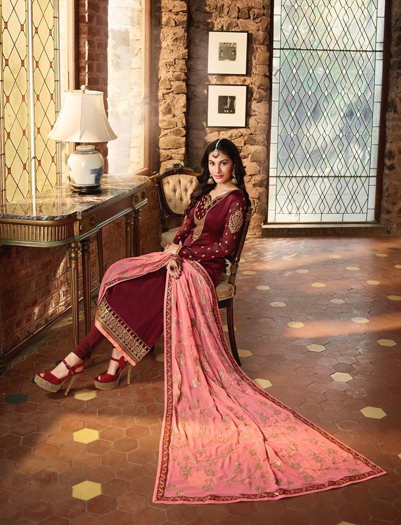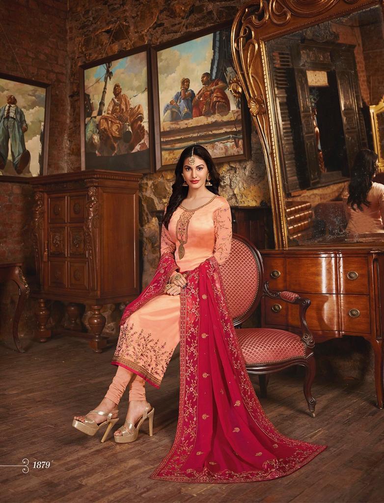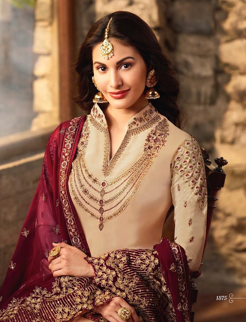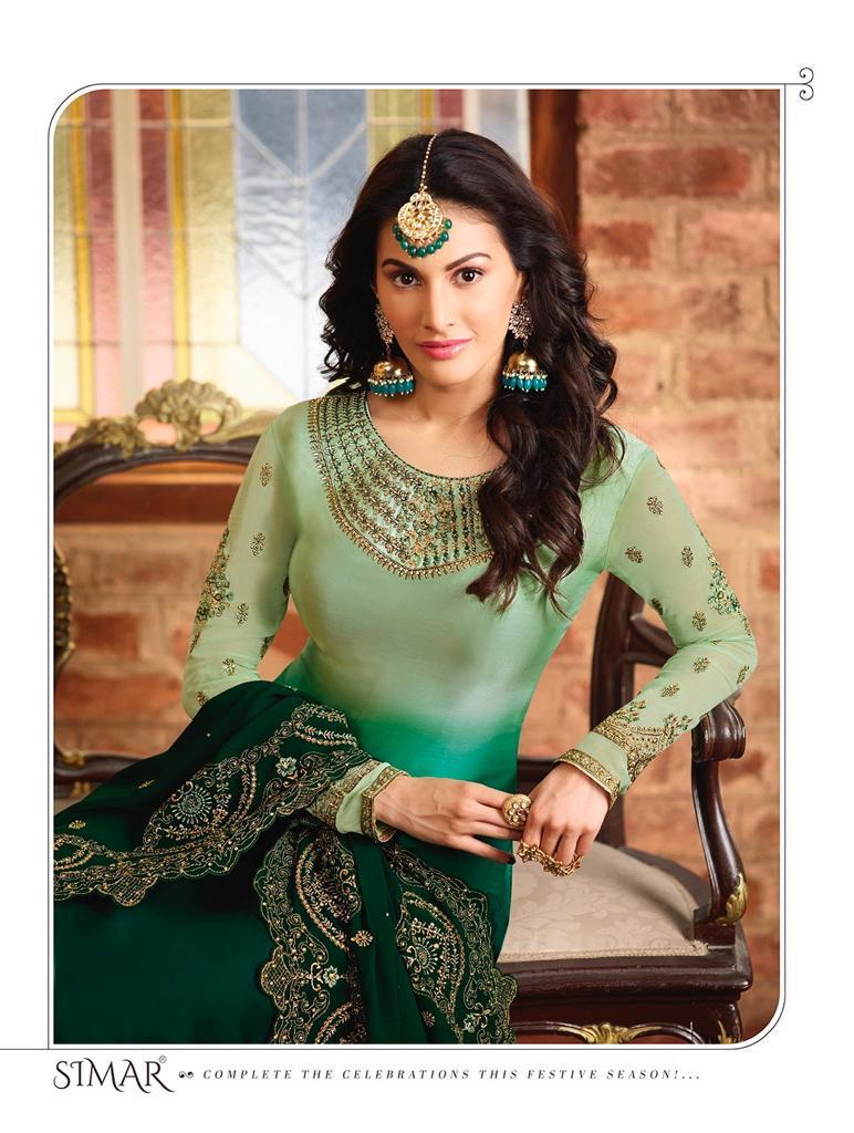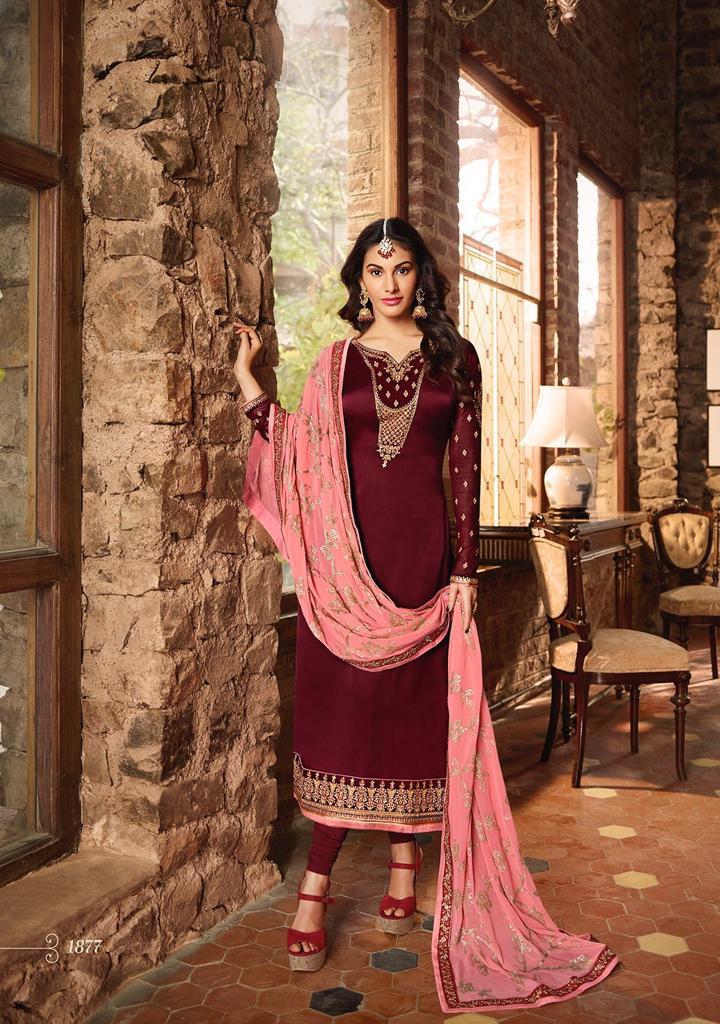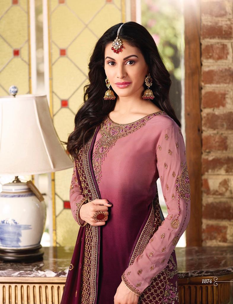Glossy Lajja Satin georgette with embroidery and sarwoski work with georgette or net with embroidery dupatta Price- 1795/- Delivery 4 -5 Days |