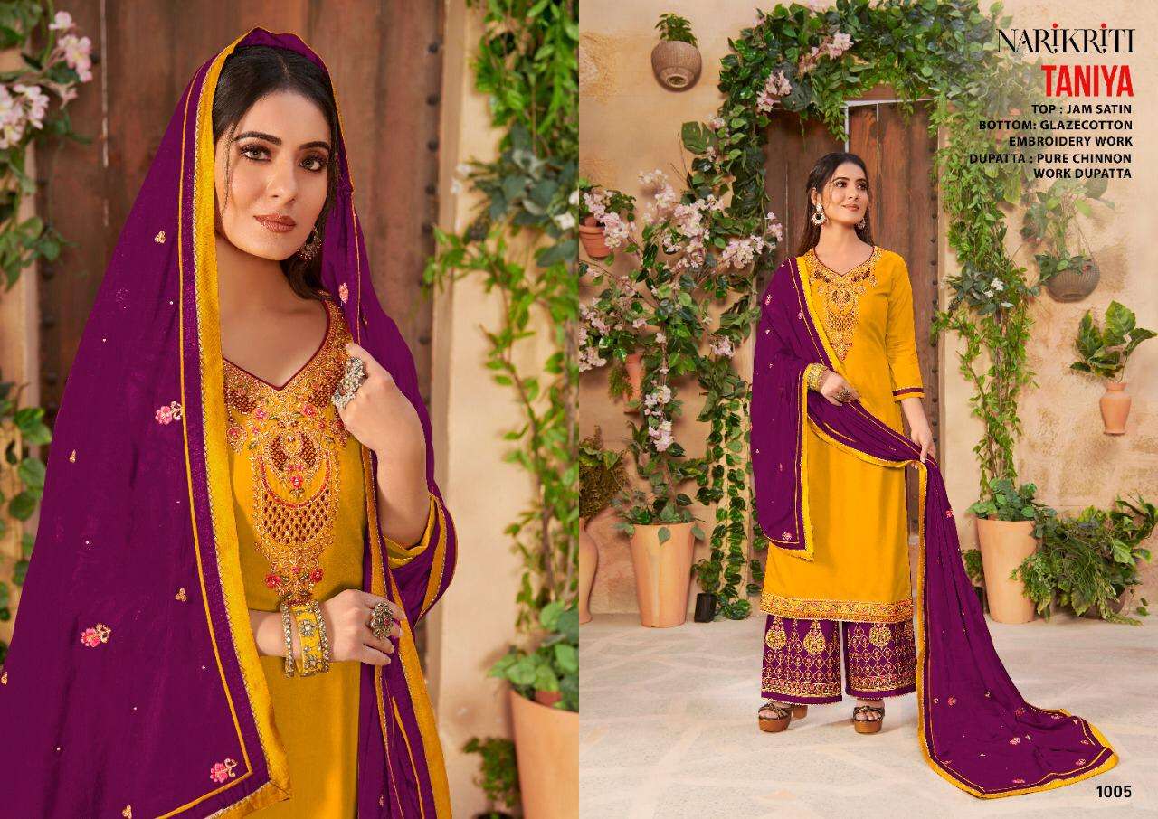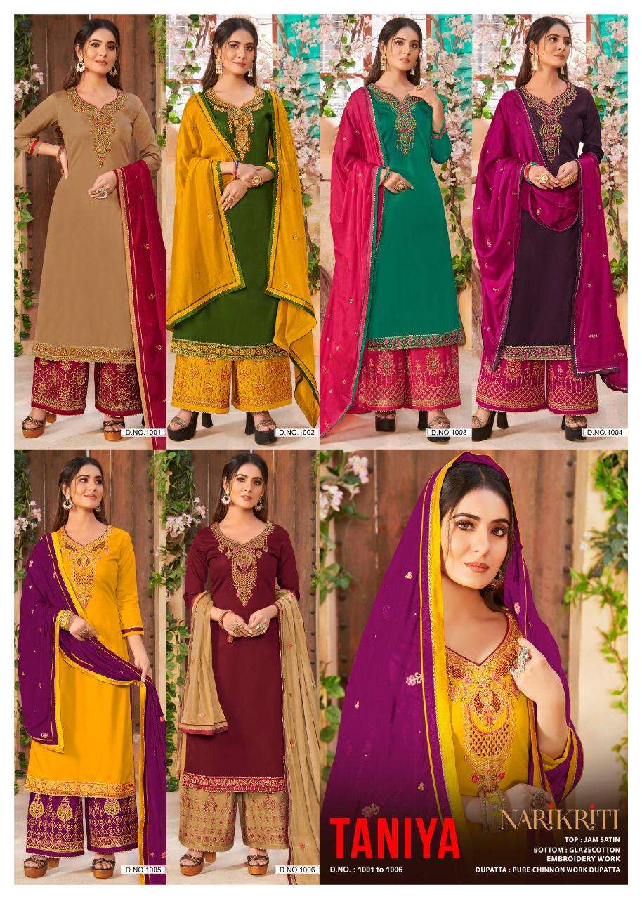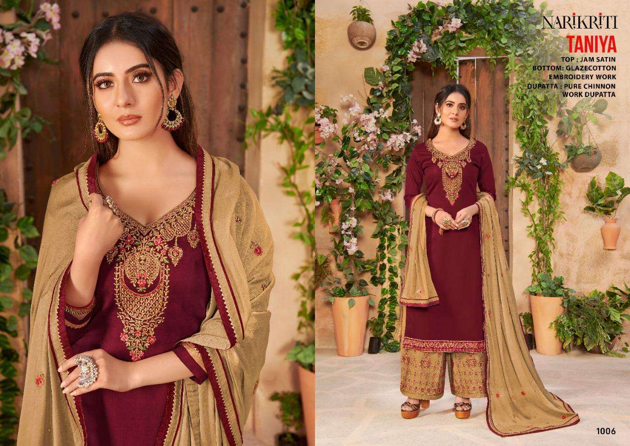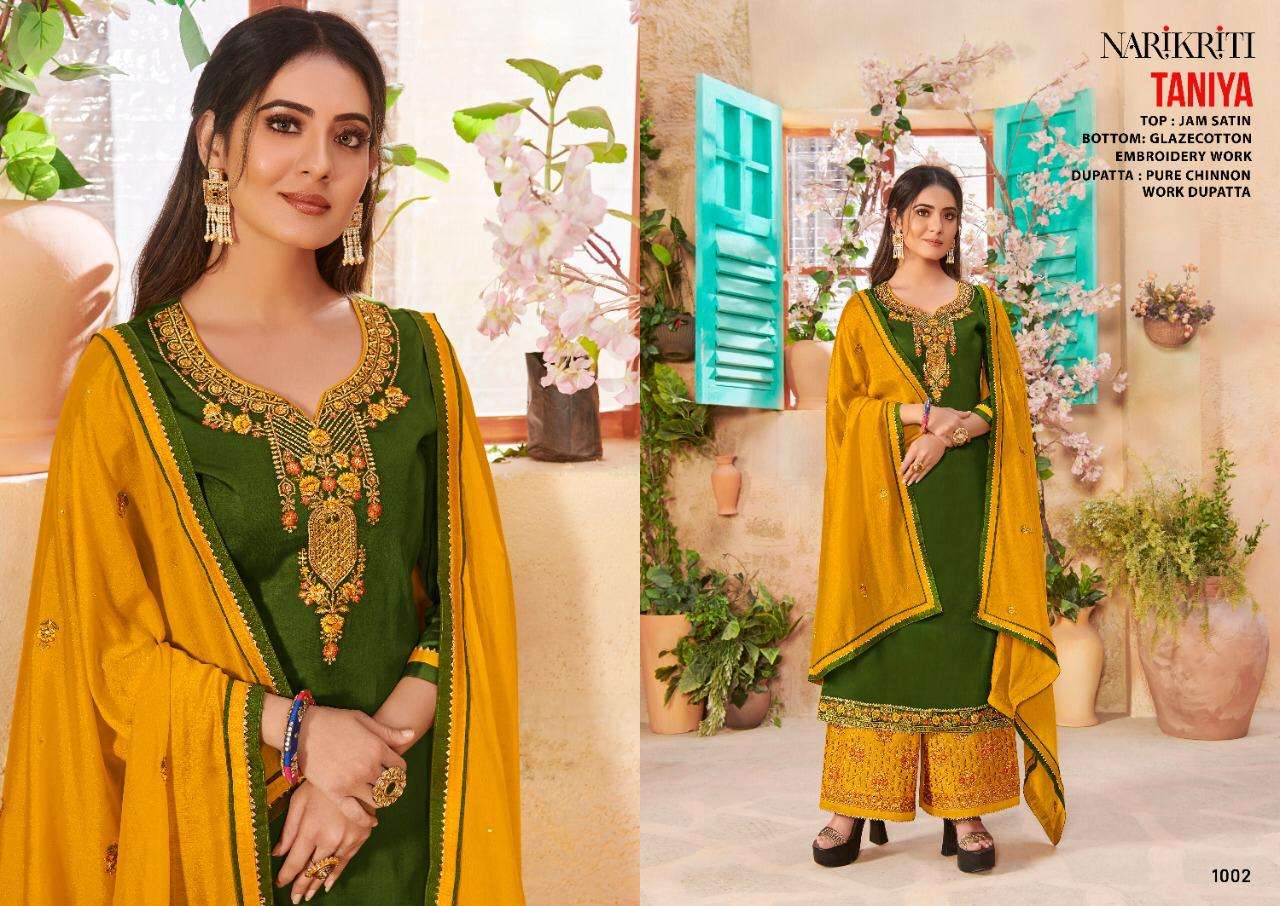 Brand - Glossy . DEGIEN name - TANIYAÂ Rate - 1105 per pcs . Fabric detail in index . Set to set . GST 5 Percent Extra. Delivery 2-3 days |