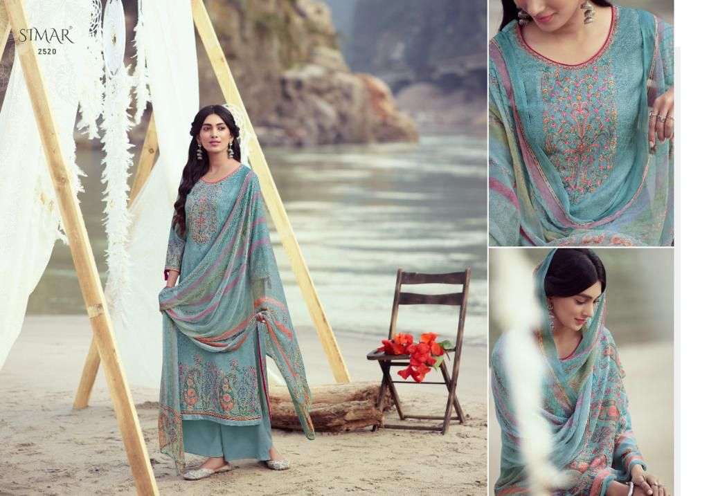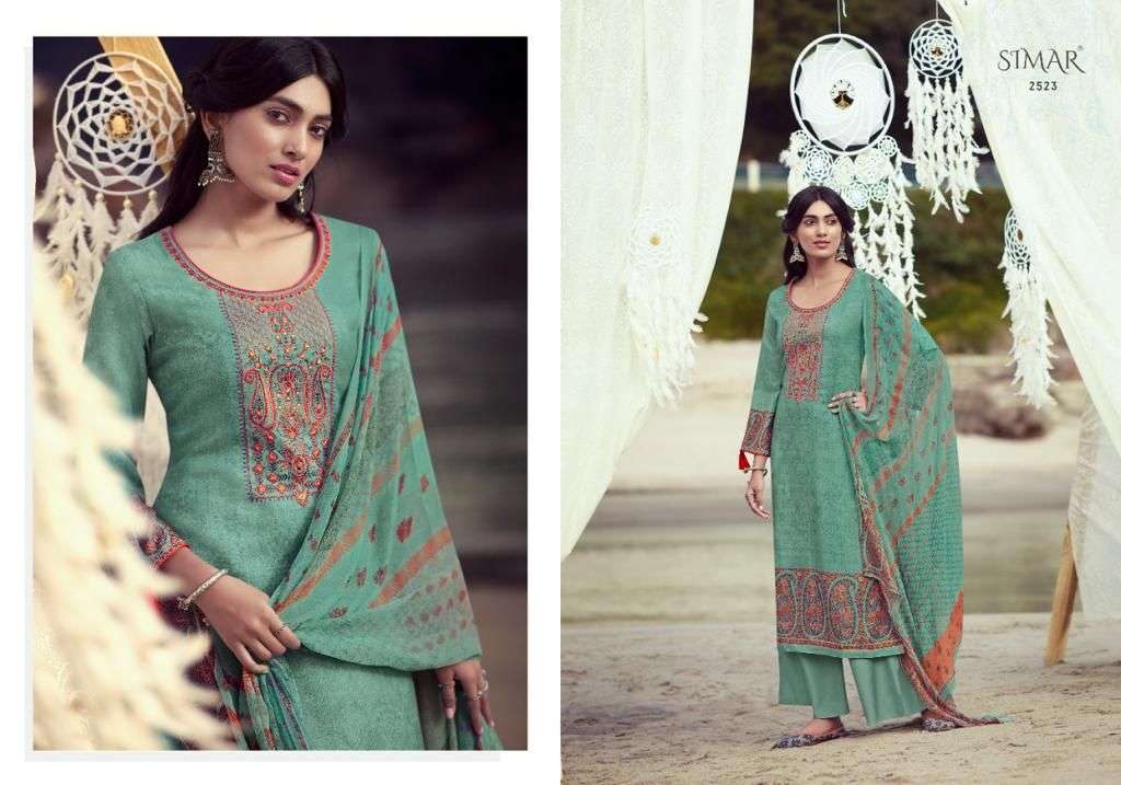 Brand - Glossy . Top : Pashmina Digital Print with Neck Embroidrey Bottom : Pashmina Solid Dyed Dupatta : Bemberg Chiffon Digital Print |