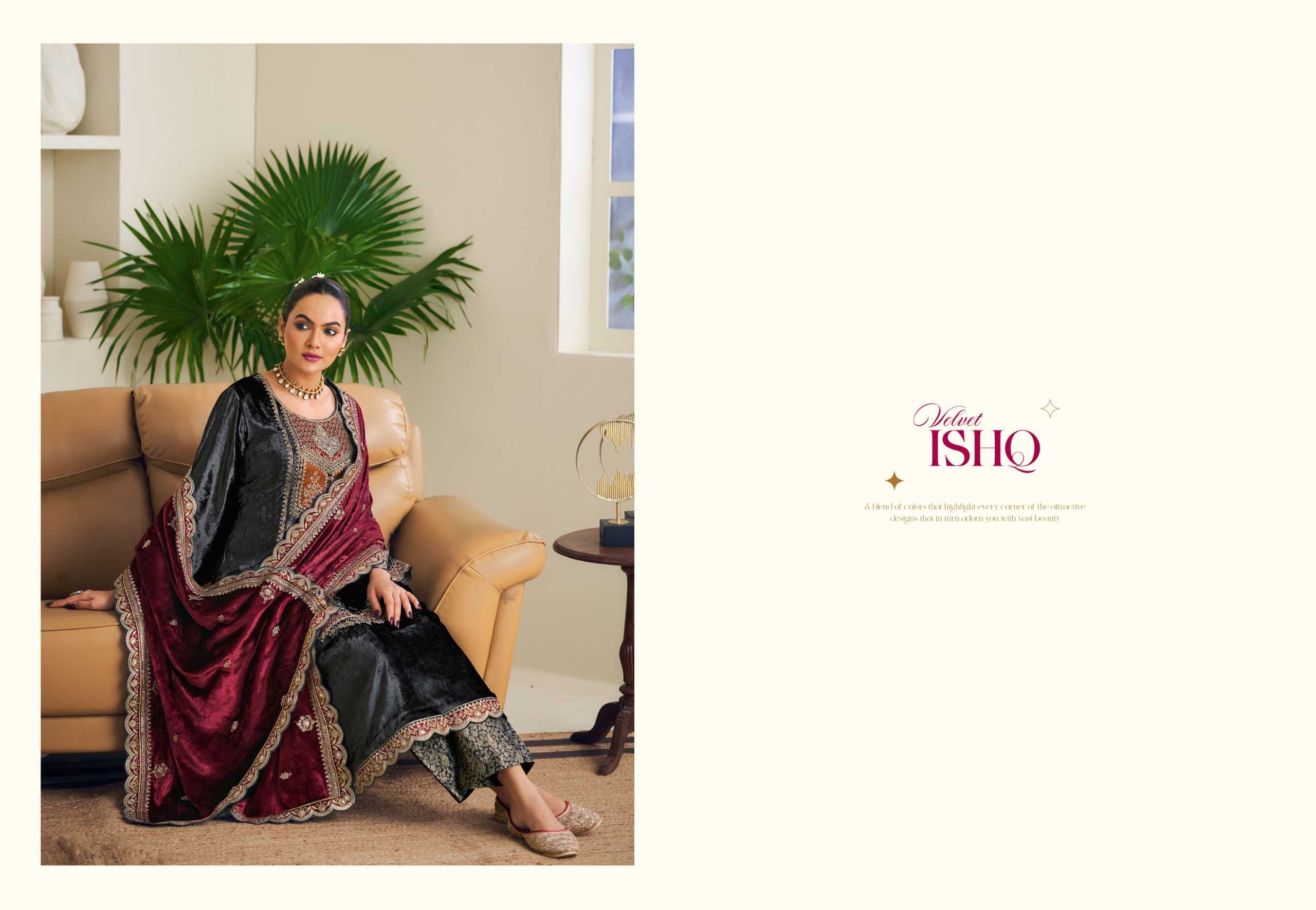 glossy velvet ishq embroidery work winter special velvet ladies suits