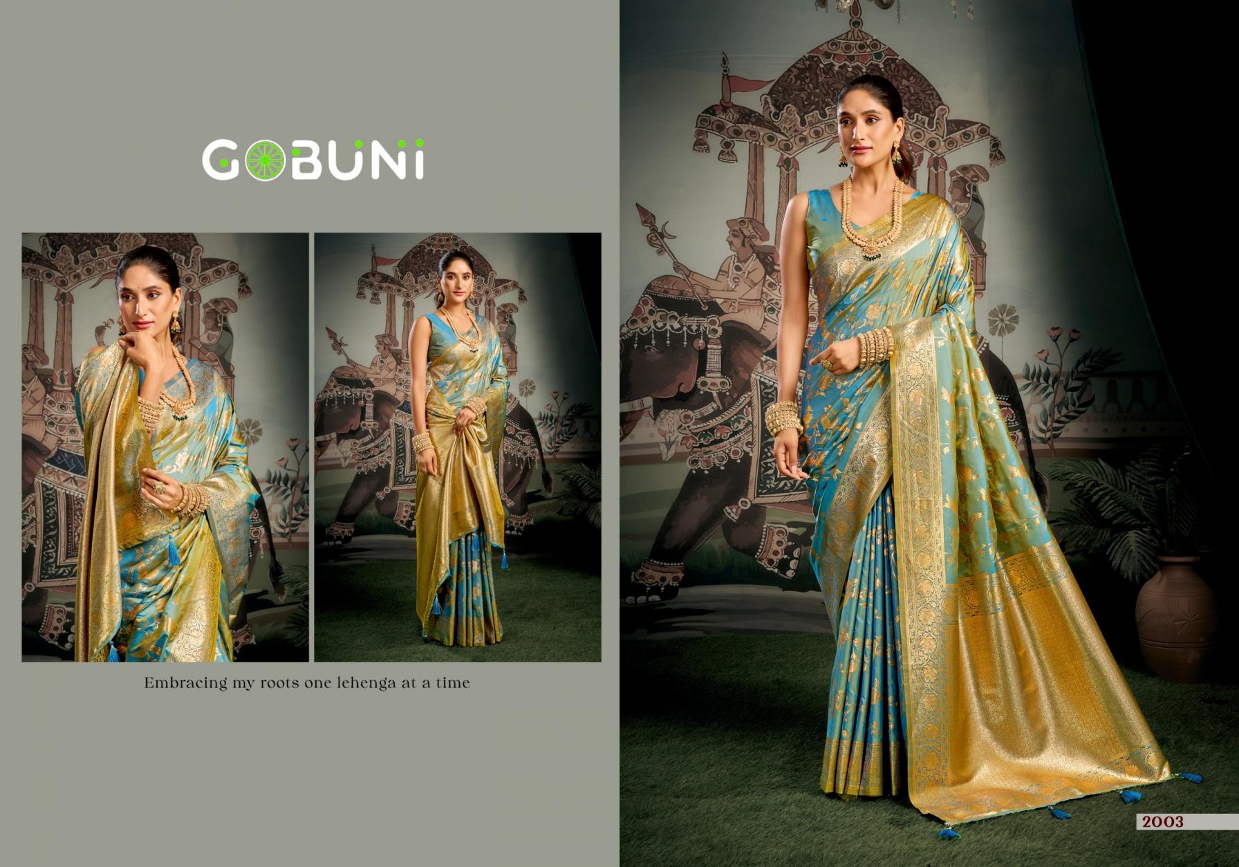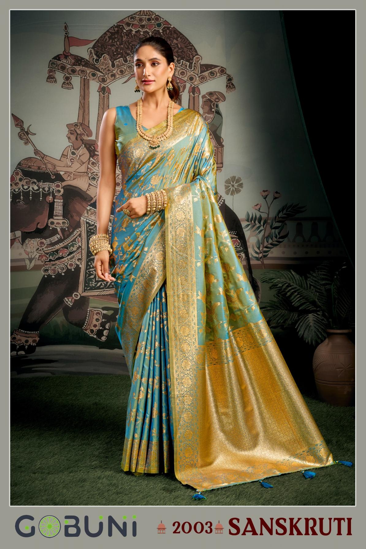 New Catalogue Launching by Gobuni 🥳 ⚡️Discover the charm of tradition with our Premium Soft Silk Sarees – delicately woven with love, culture, and craftsmanship. Brand - Gobuni 👑 Catalogue Name - Sanskruti Series - 2001 To 2004 Saree Fabric - Premium Soft Silk with Zhallar Cut - 6.30 mtr with Blouse Rate - 1165/- + 5% Gst 04 Pc Set |