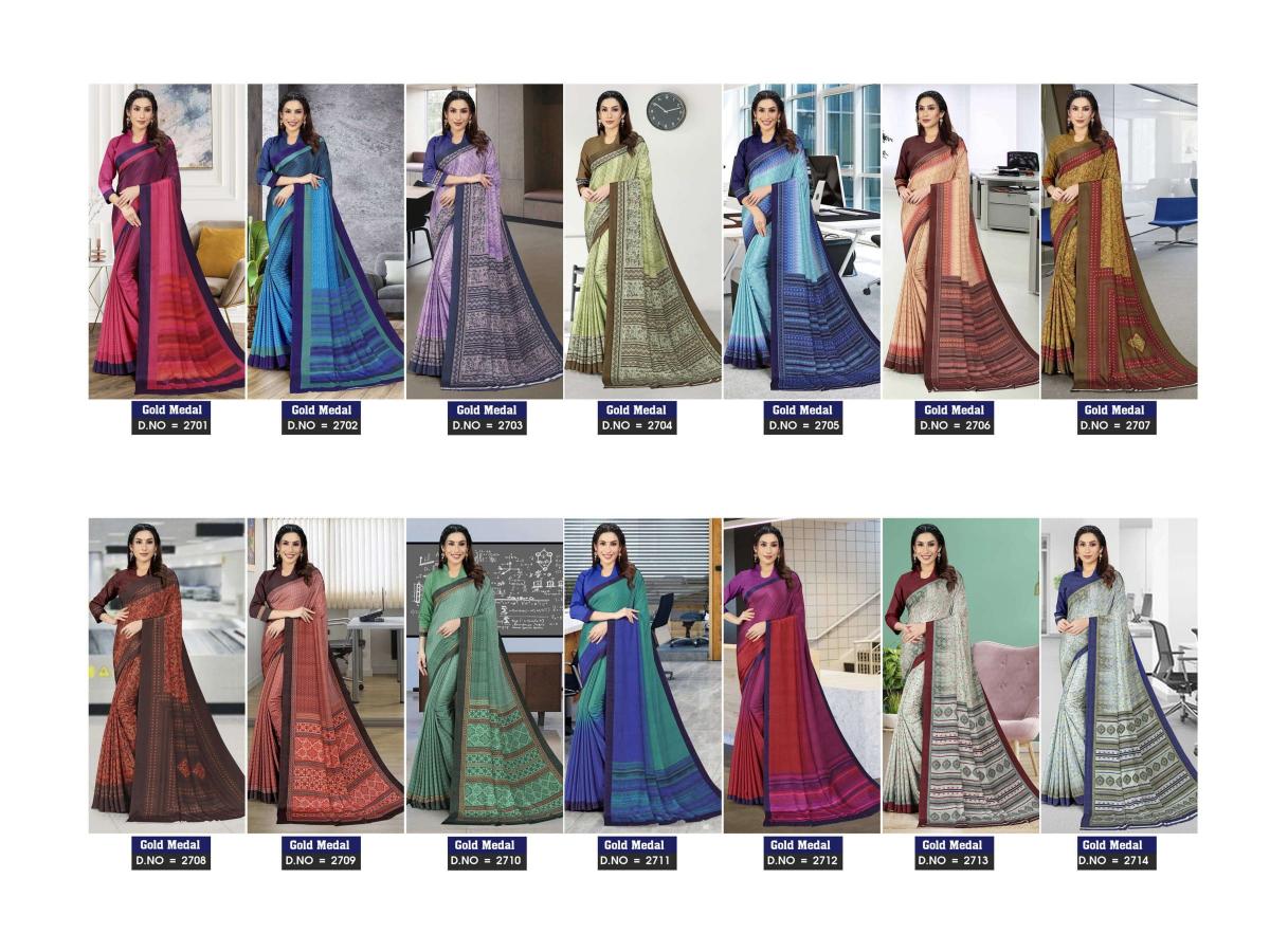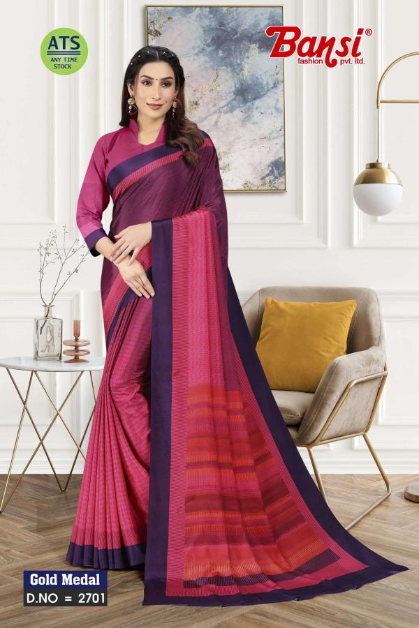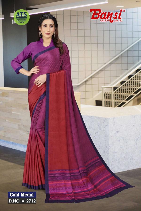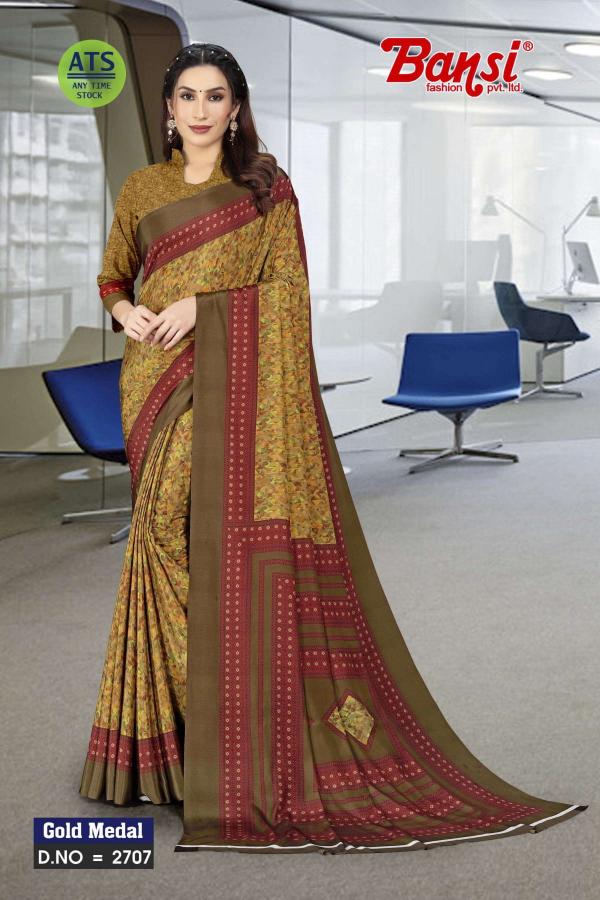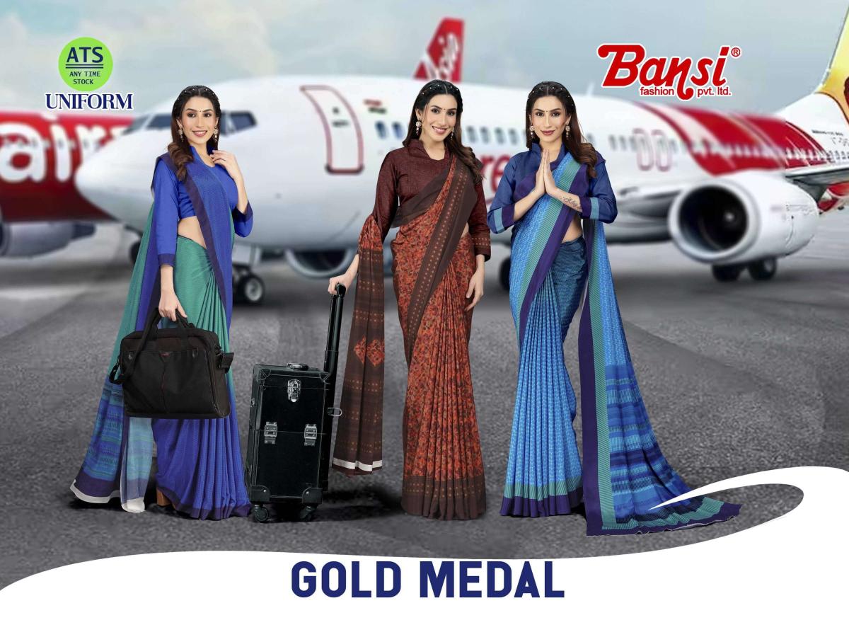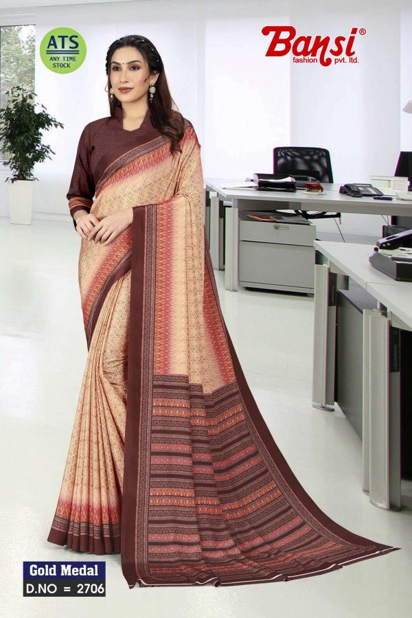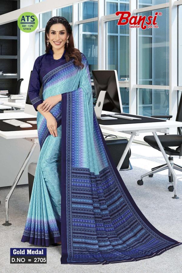 gold medal by bansi beeni crape uniform saree with fancy blouse