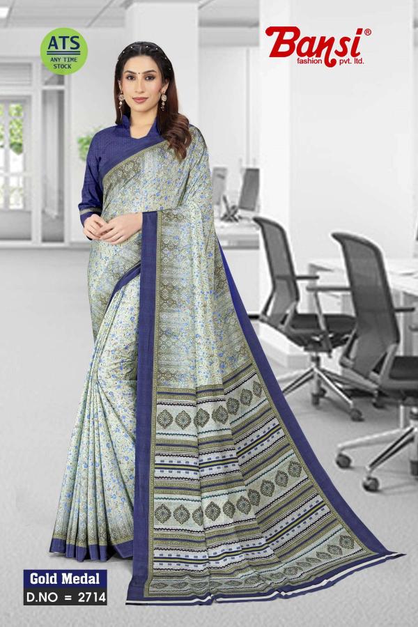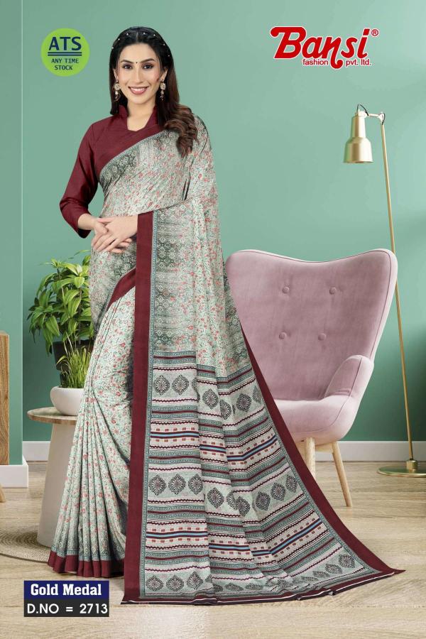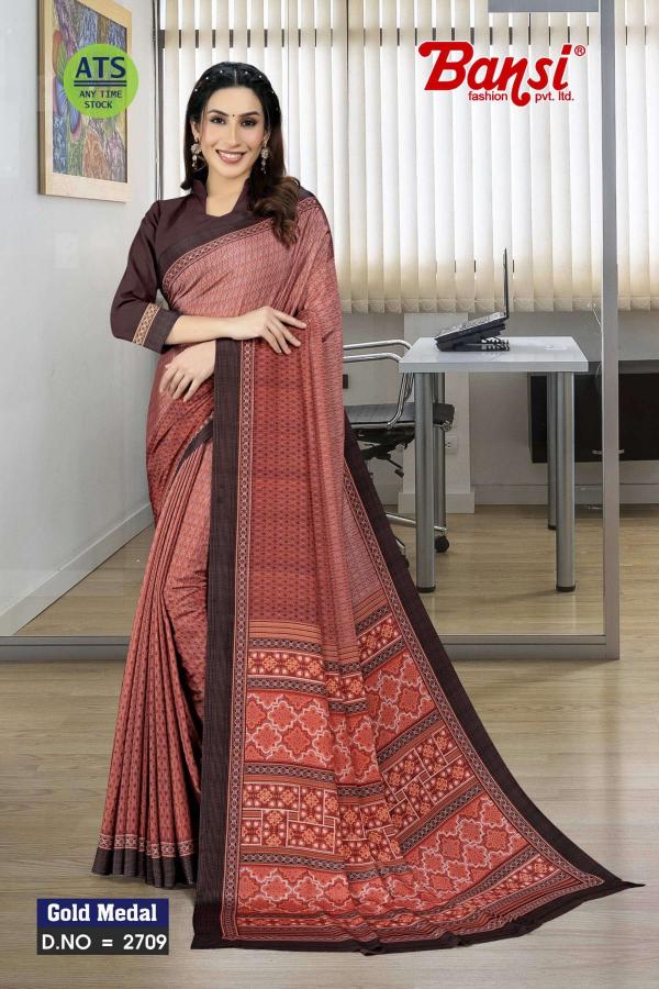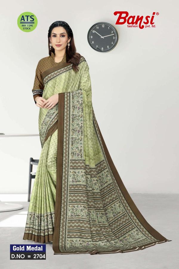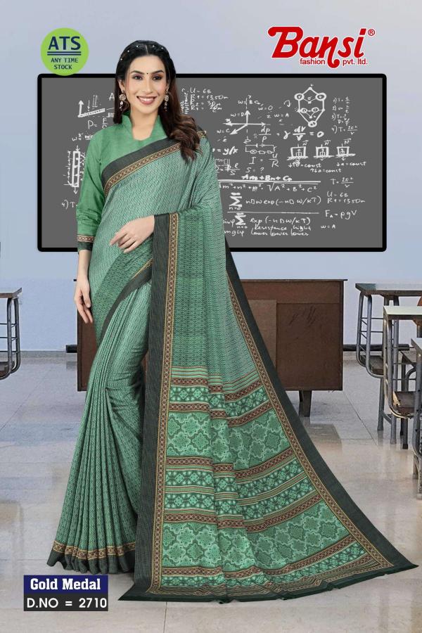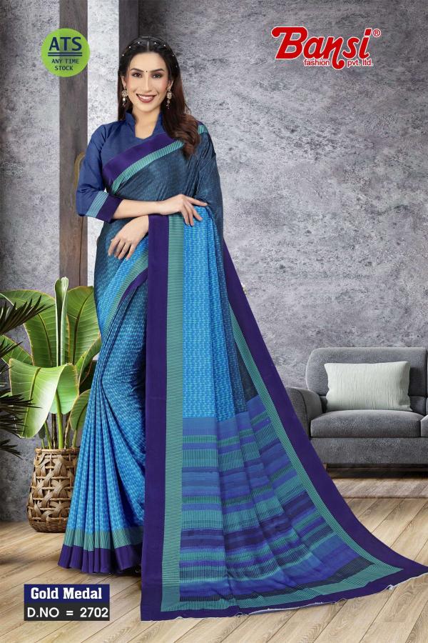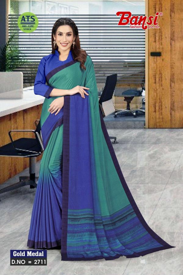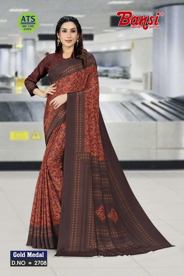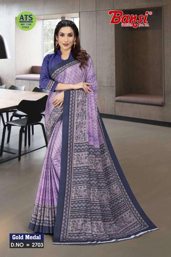 gold medal by bansi beeni crape uniform saree with fancy blouse