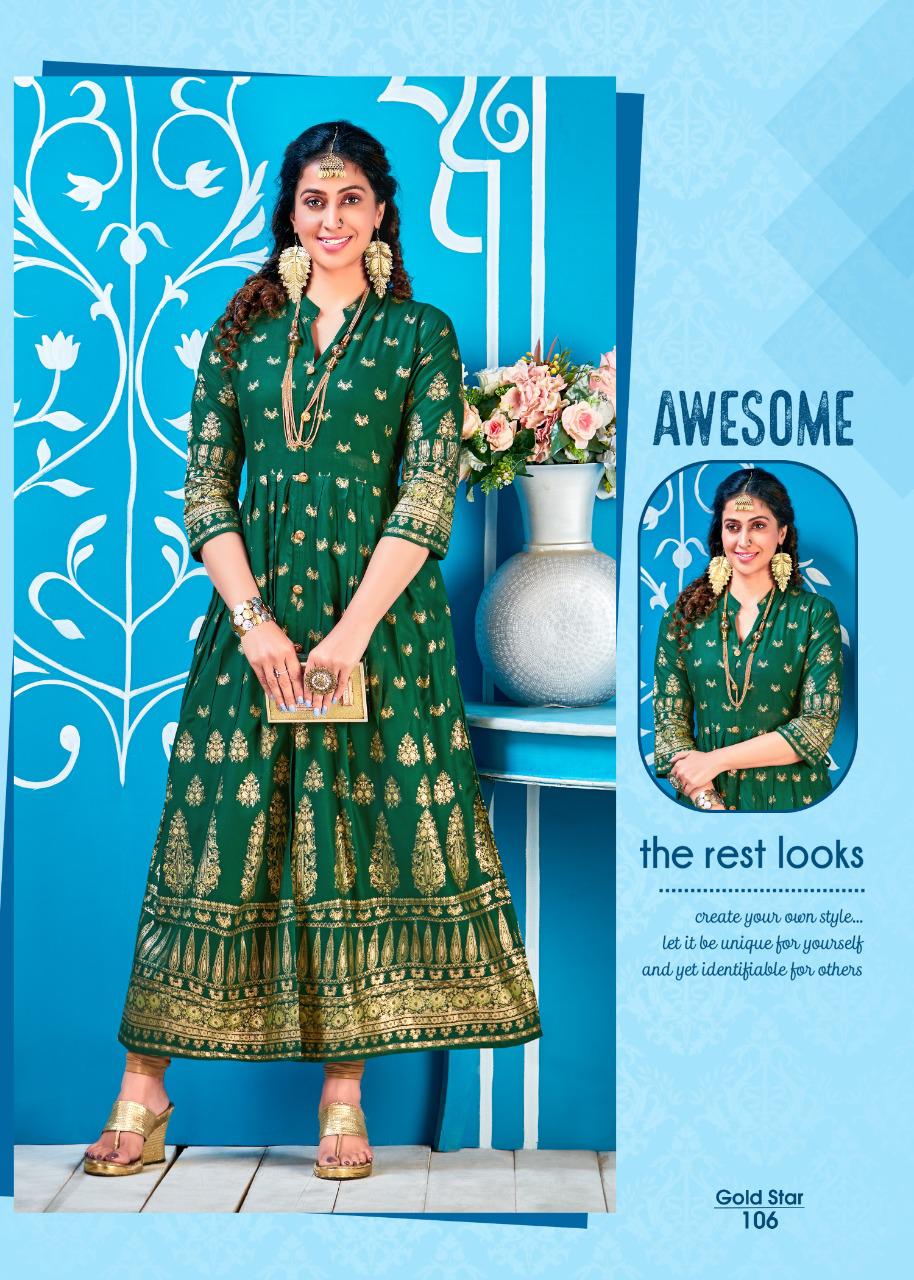 Gold Star By Fashion Talk Rayon Long Gown Style Traditional Look Kurti Wholesaler