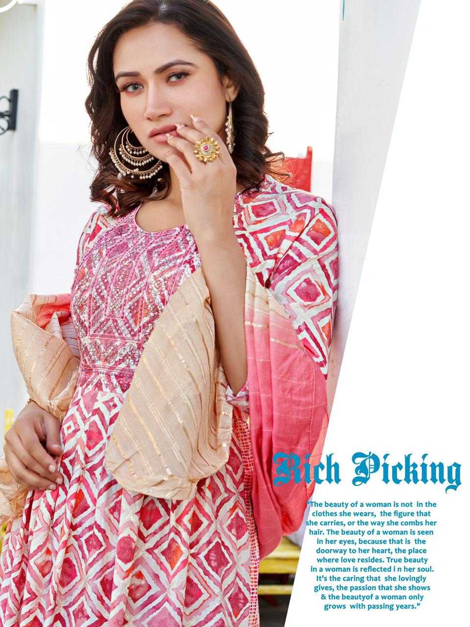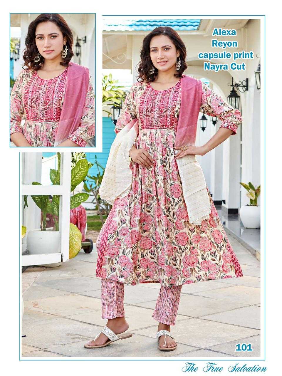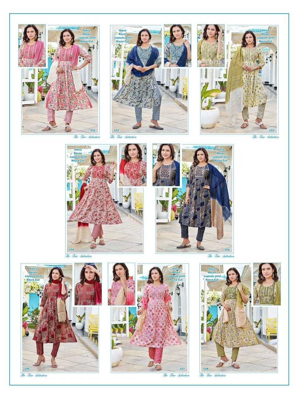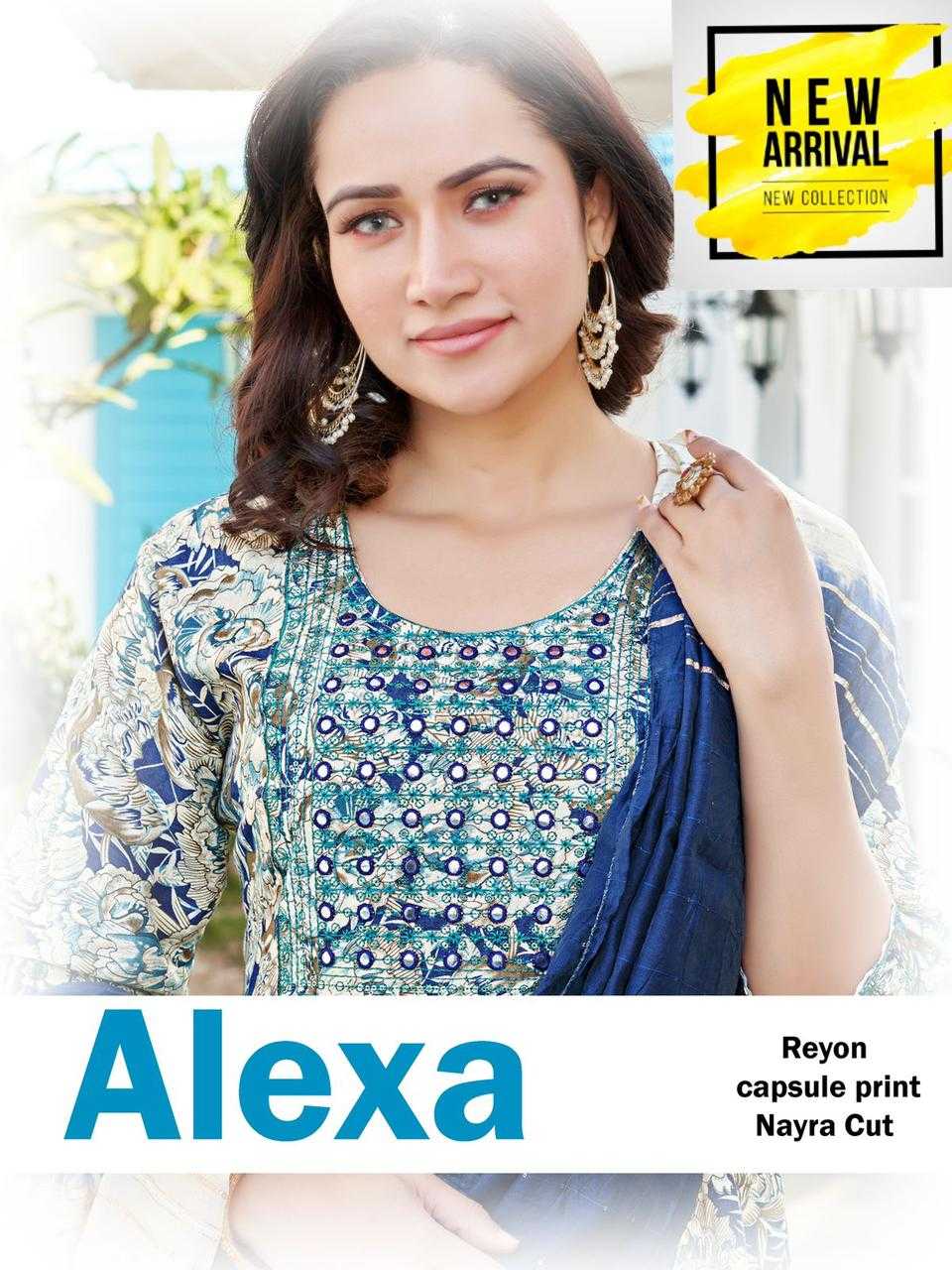 Golden Alexa Capsule Foil Print Nayra Pattern READYMADE SUIT CATALOG WHOLESALER BEST RATE