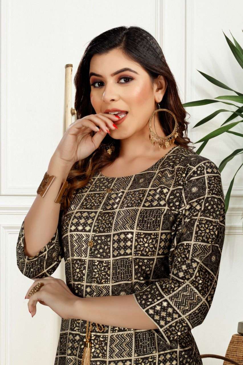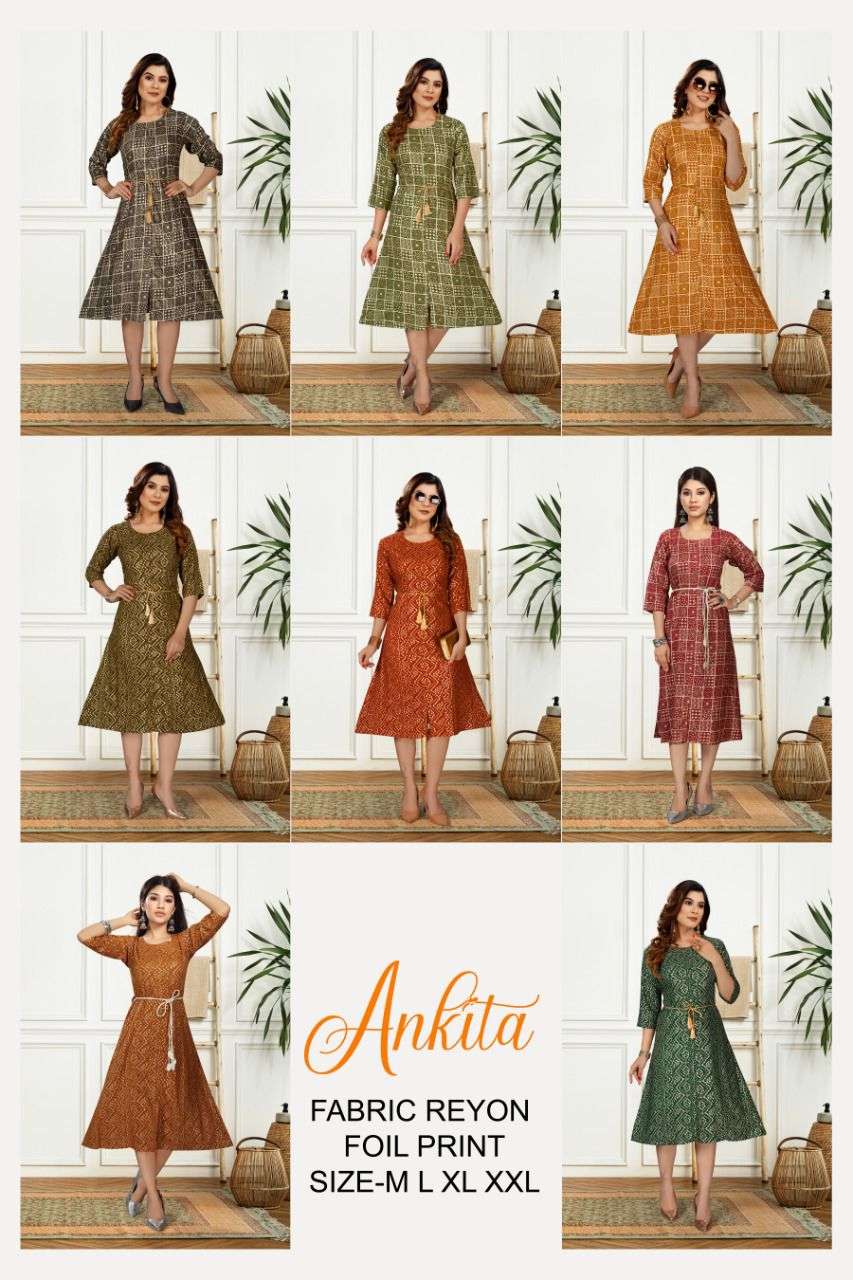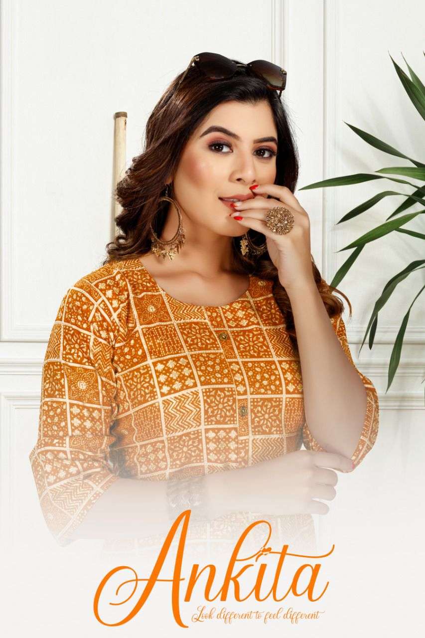 GOLDEN ANKITA HEAVY RAYON FOIL PRINT KURTI CATALOG WHOLESALER BEST RATE