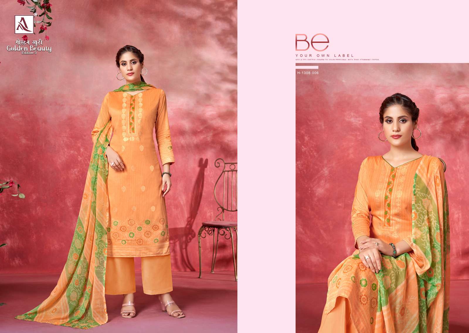 golden beauty vol 3 by alok suit fancy work adorable casual wear salwar kameez wholesaler