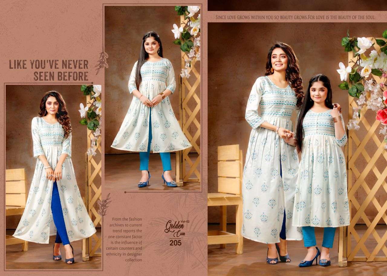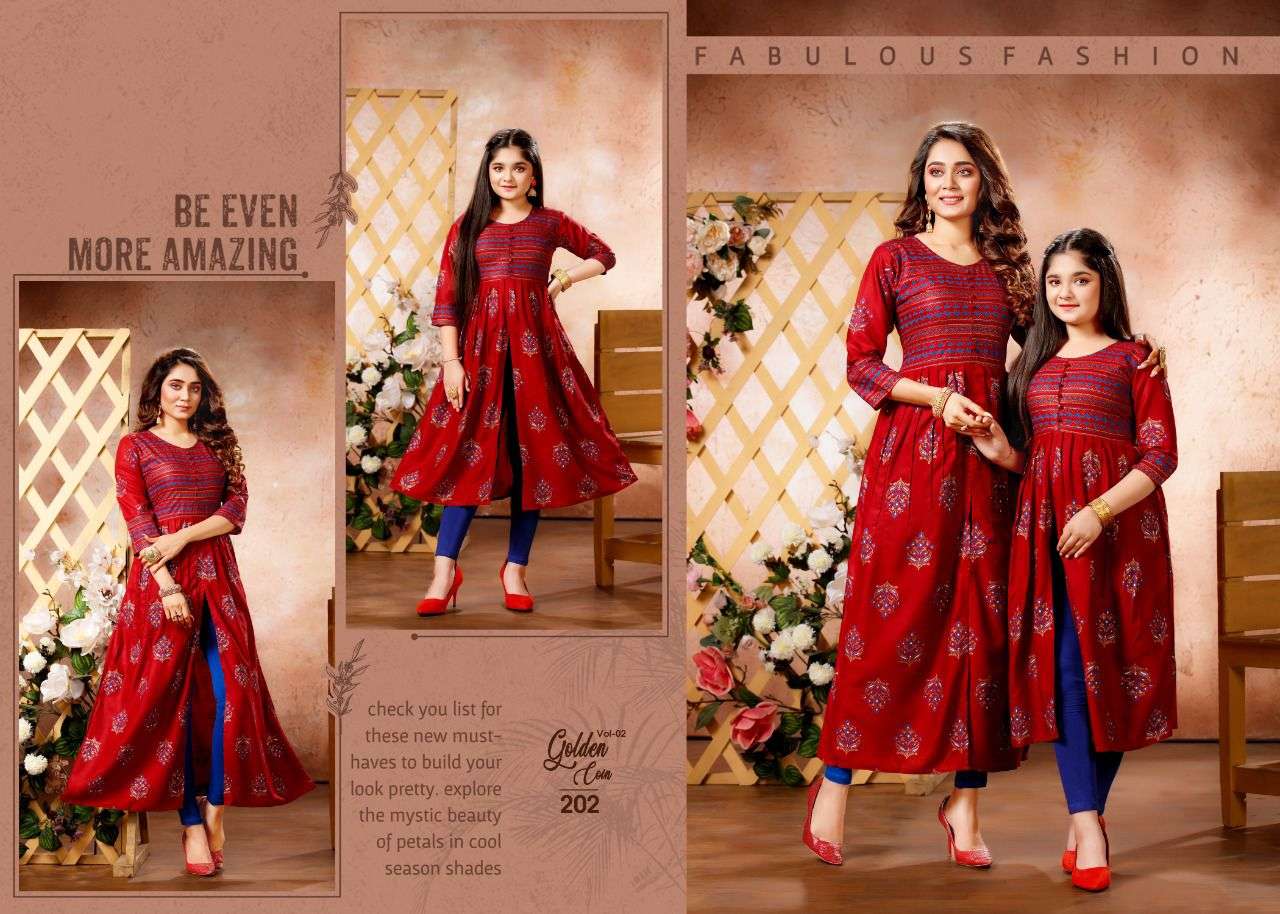 GOLDEN COIN VOL.2 BY FASHION TALK HEAVY RAYON WITH GOLD FOIL PRINT CHILD KURTI CATALOG WHOLESALER BEST RATE