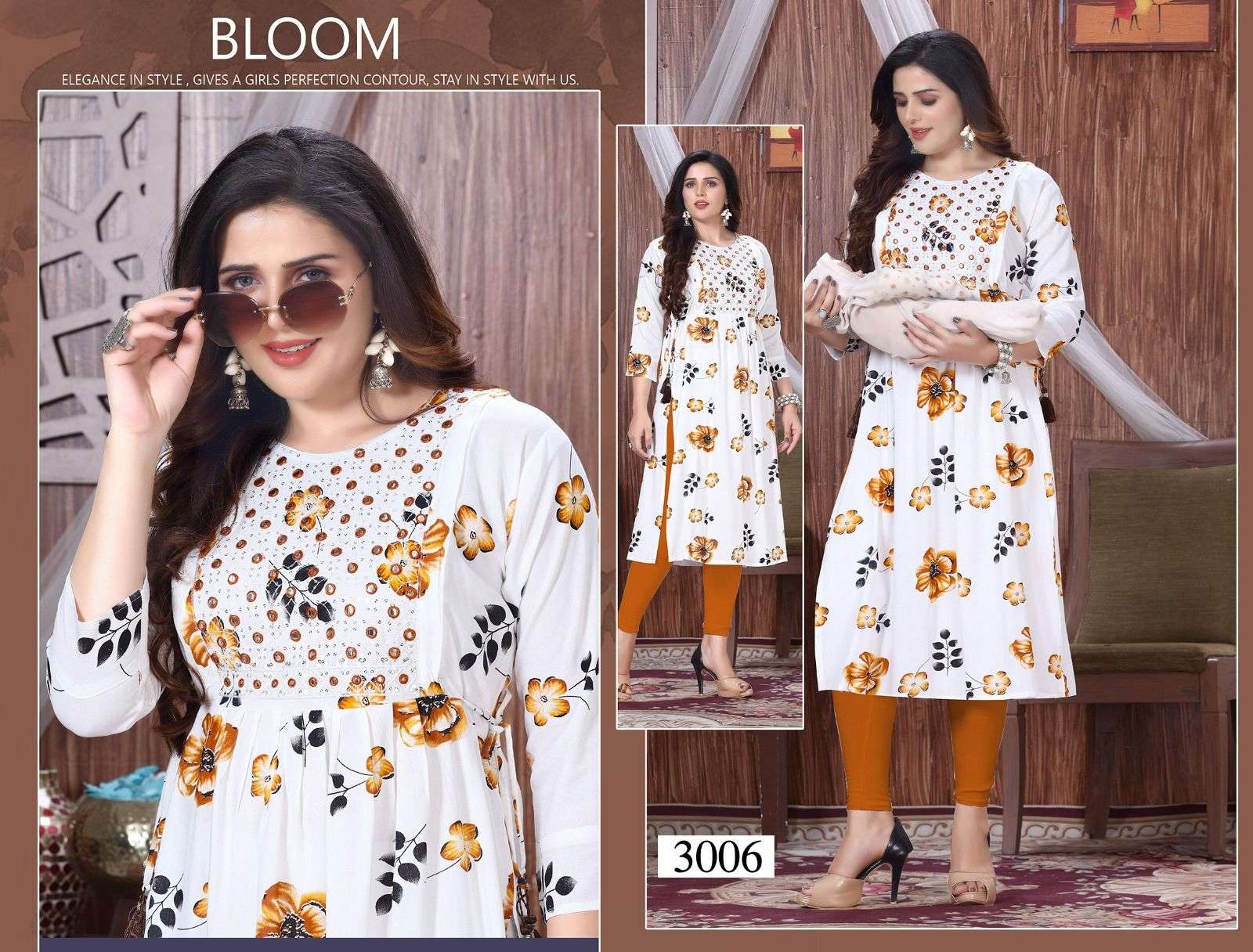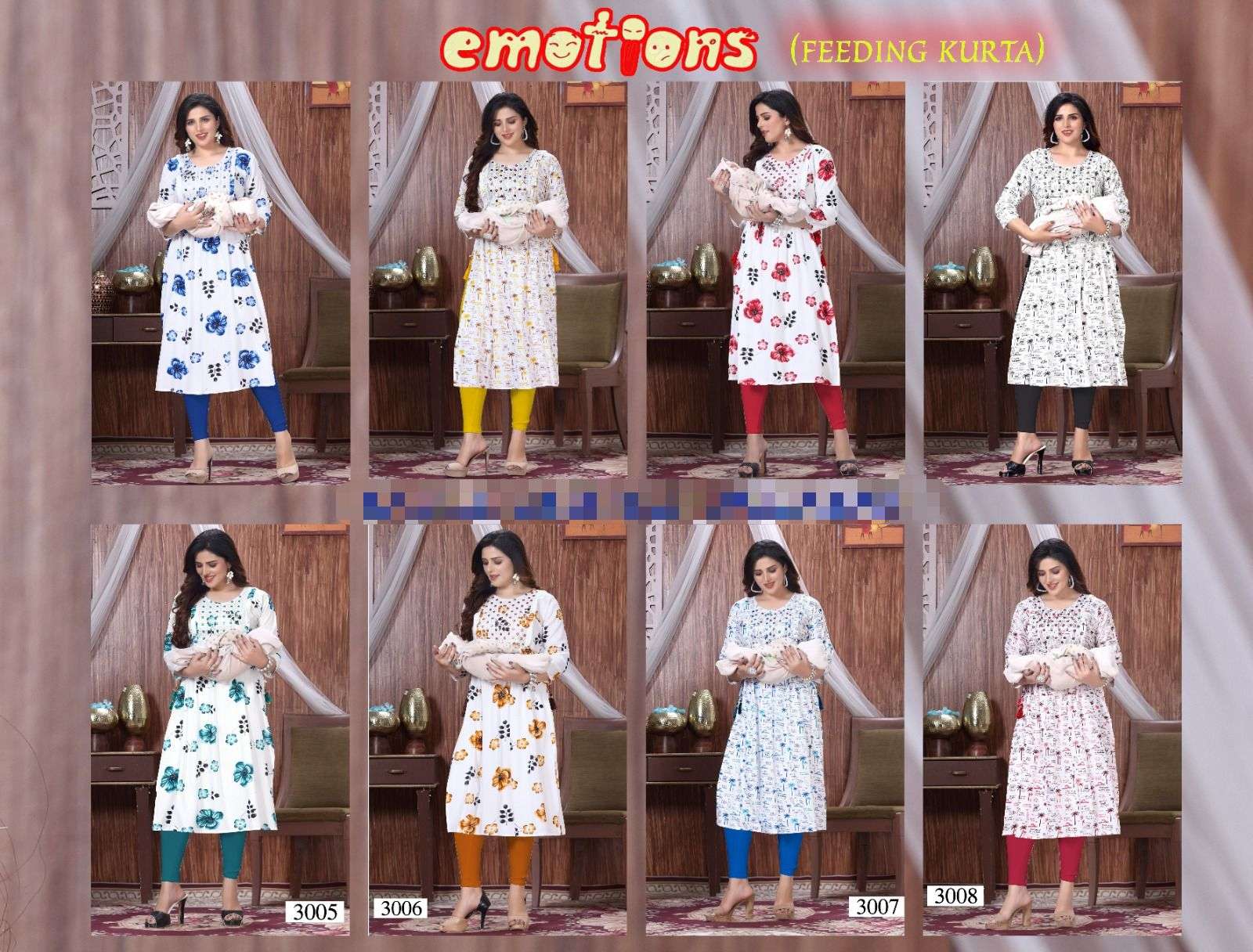 🎀Launch New Rayon Feeding Kurti Catalogue🎀 📕Catalogue name :" GOLDEN EMOTIONS 🌼 👌🏻" 💵Rate : 385/- only 💵 👗Designs : 8 ✂Sizes : L XL XXL 3XL 4XL 5XL 6XL & 7XL 👘Fabric Details : Finest Quality of 14 Kg Rayon Print Heavy Fabric Feeding Kurti With Embroidery & Printed Naira Flared Kurti Length : 45” |