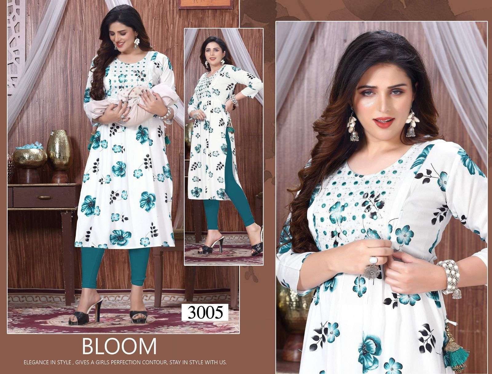 GOLDEN EMOTIONS 14 Kg Rayon Print Heavy Fabric KURTI CATALOG WHOLESALER BEST RATE