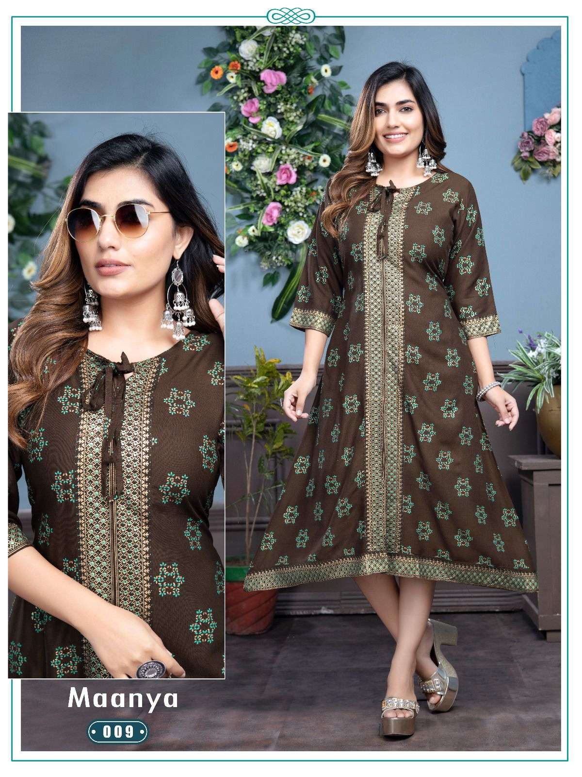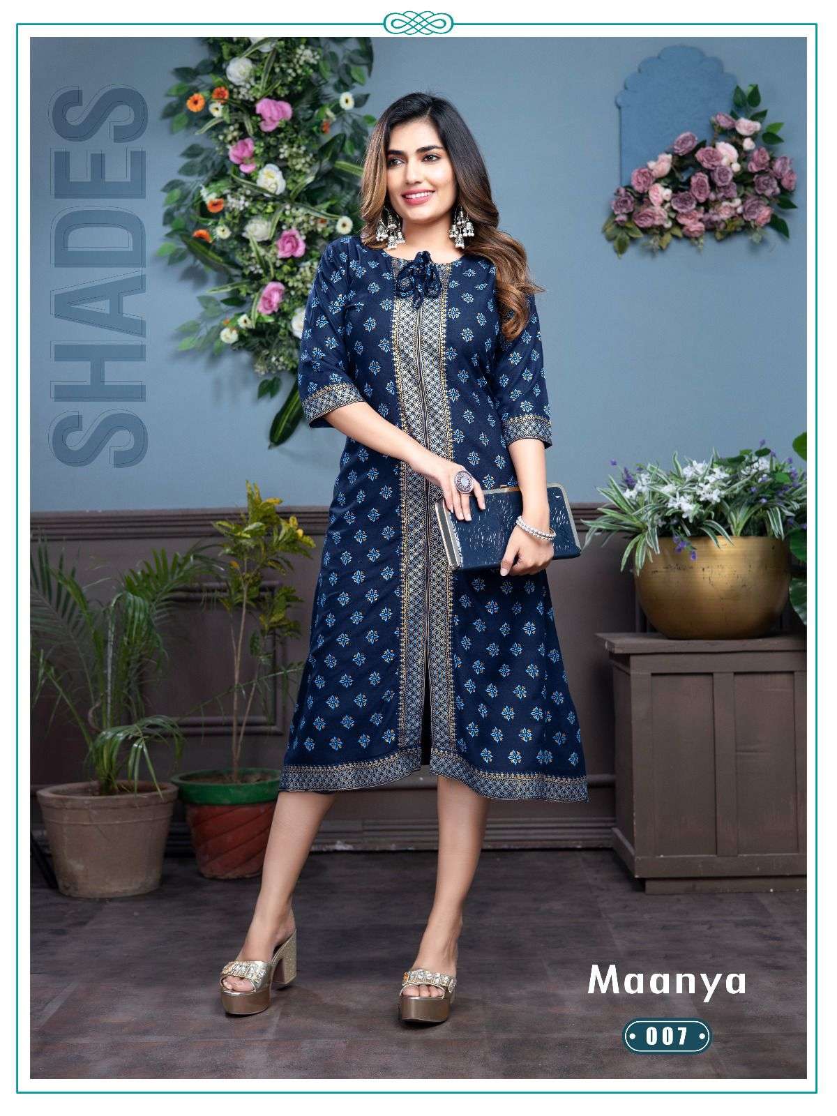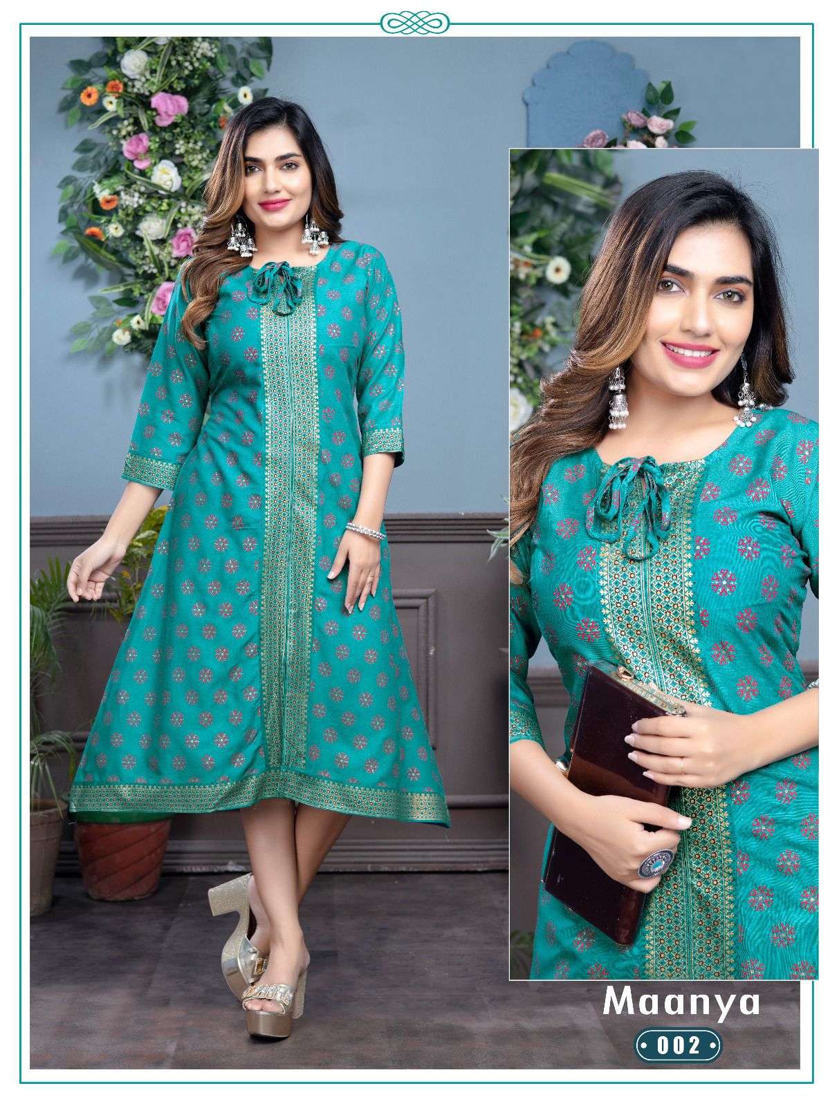 GOLDEN MAANYA (Vol.1) RAYON PRINT KURTI CATALOG WHOLESALER BEST RATE