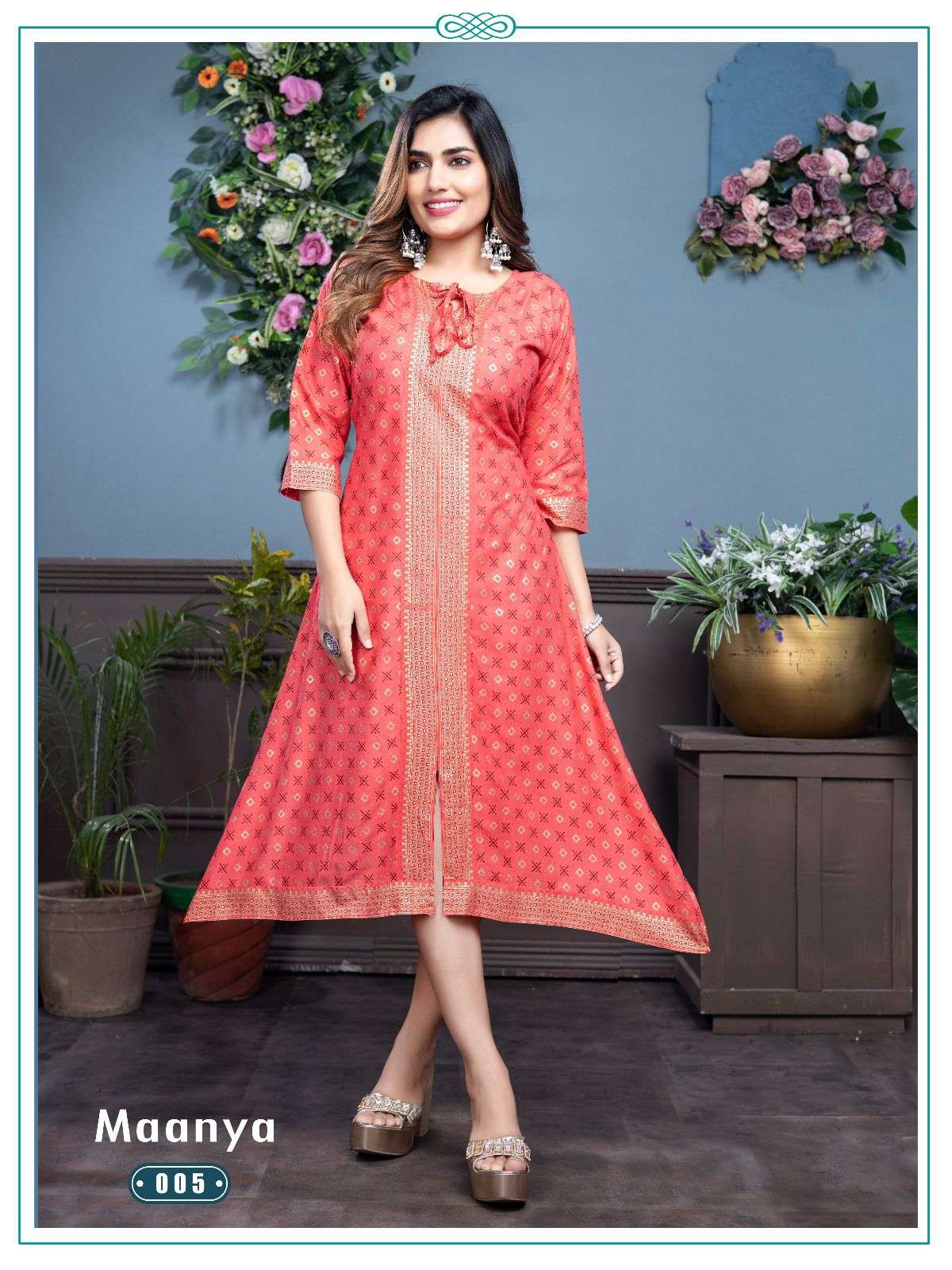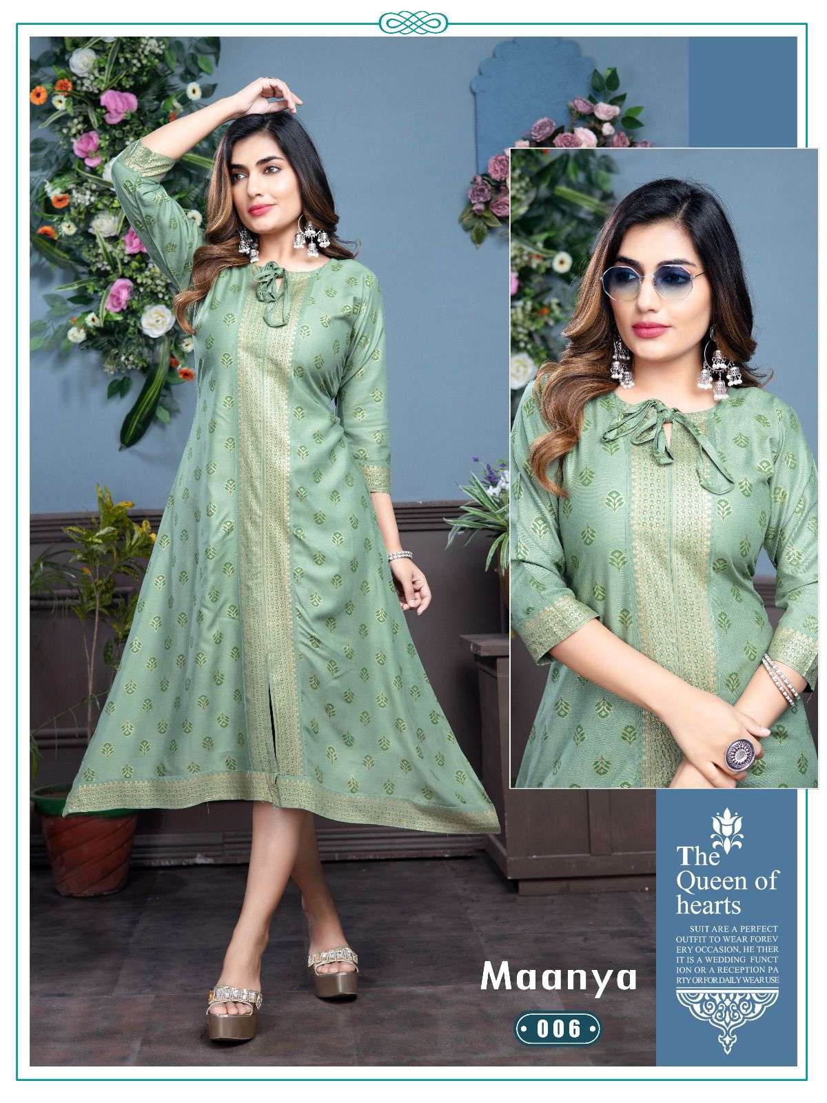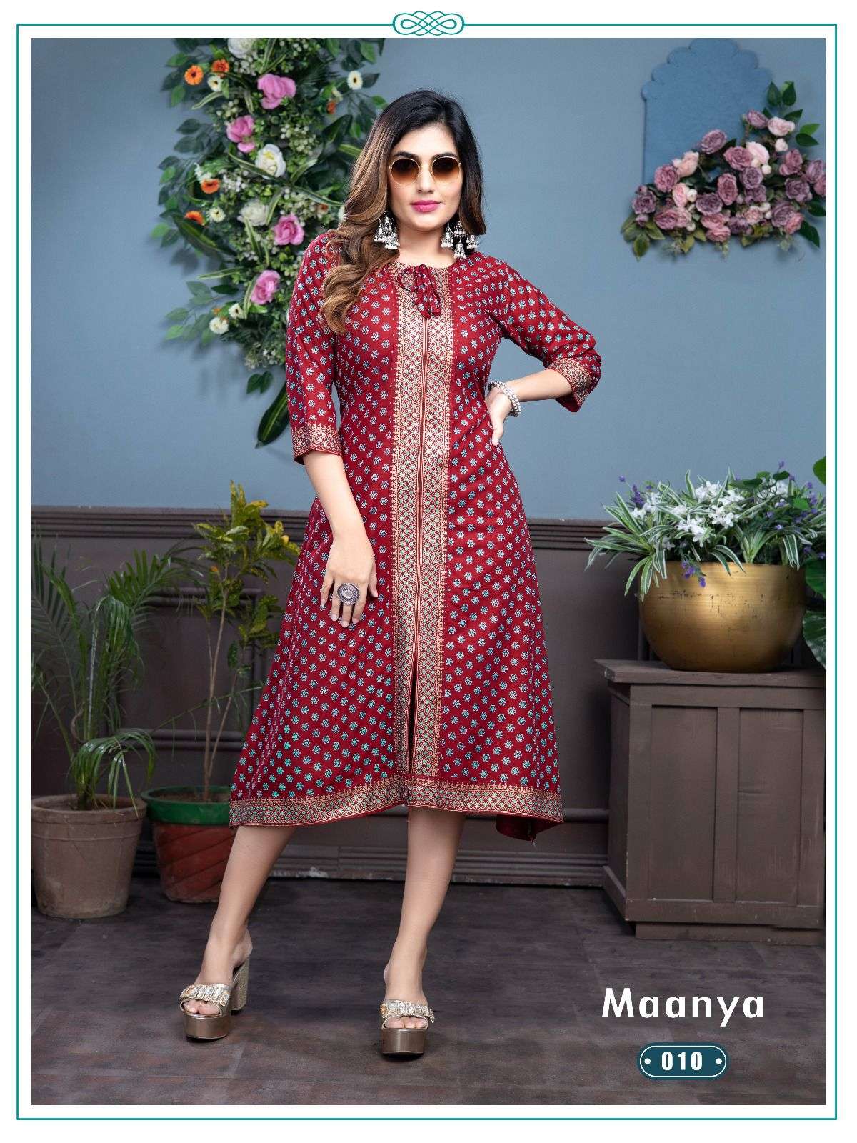 GOLDEN MAANYA (Vol.1) RAYON PRINT KURTI CATALOG WHOLESALER BEST RATE