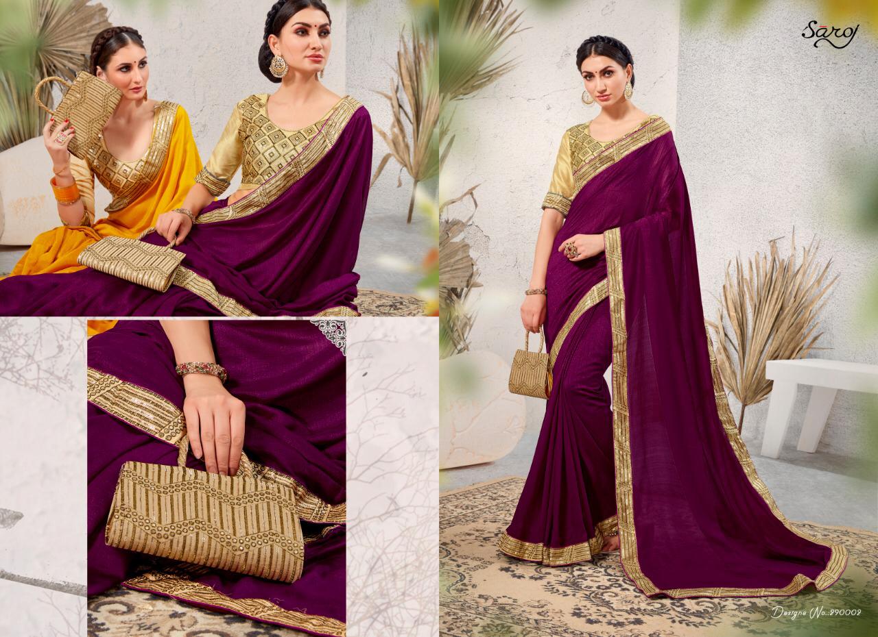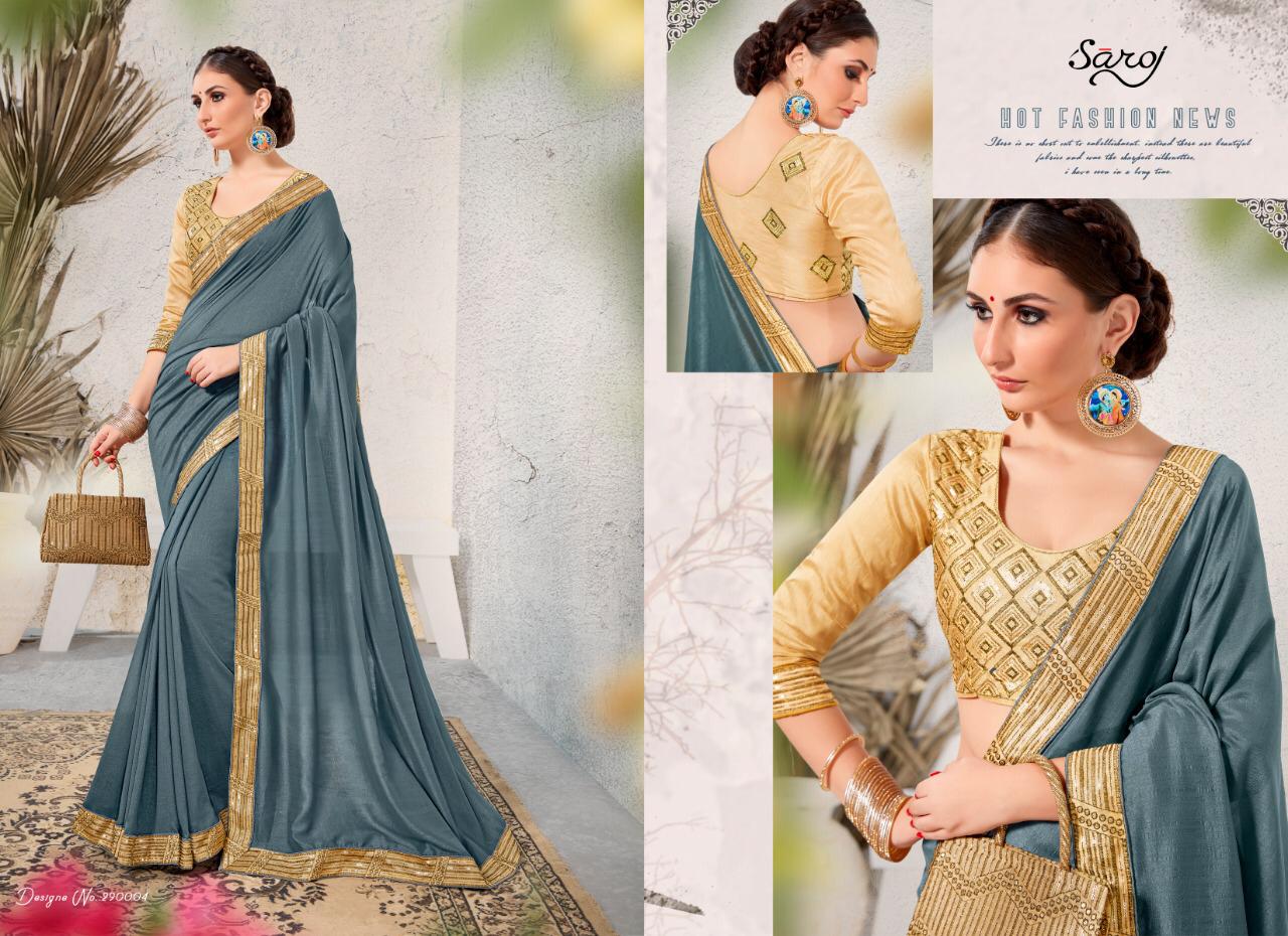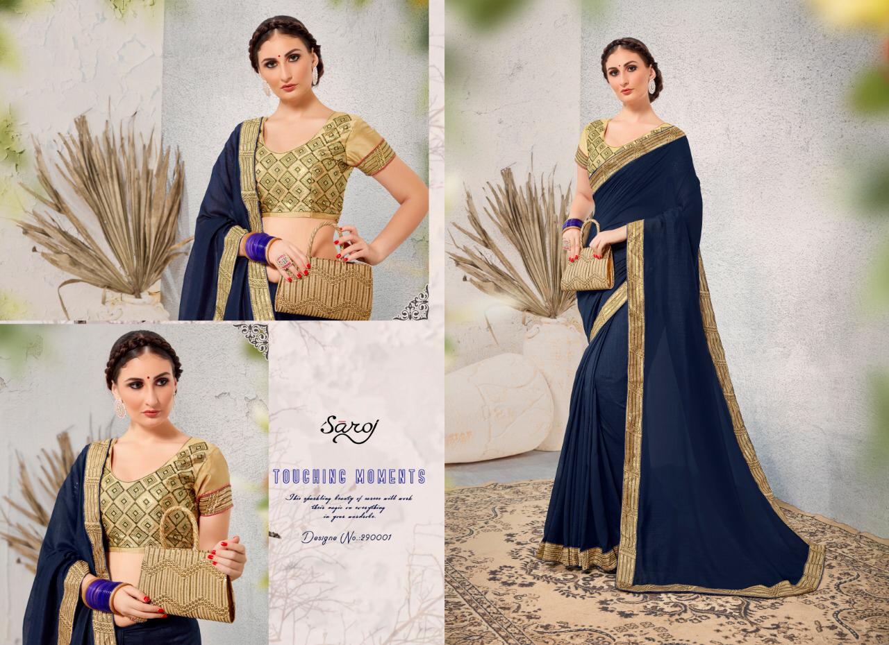 Golden Moments By Saroj Plain Saree With Fancy Blouse Concept