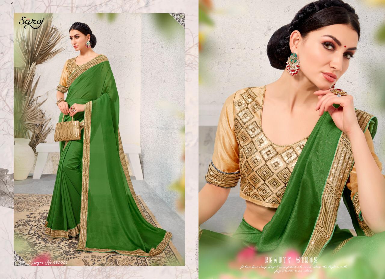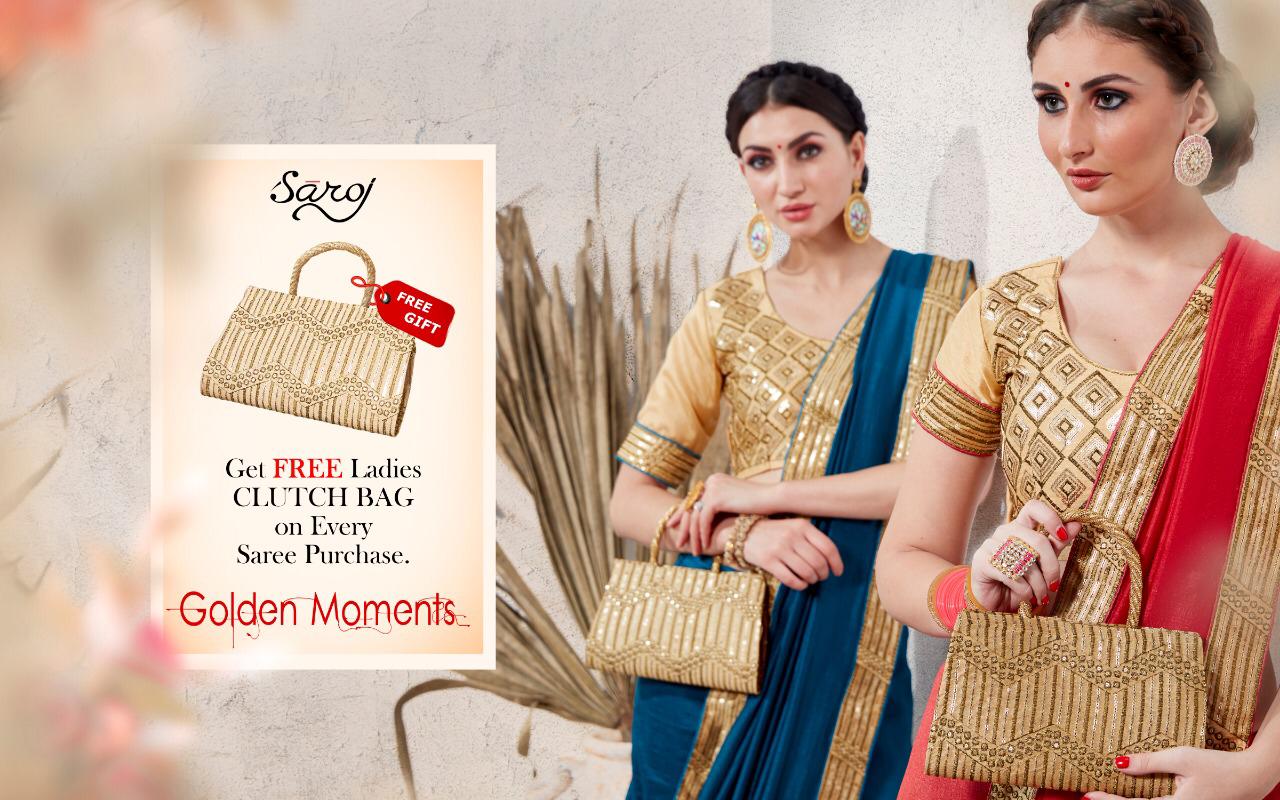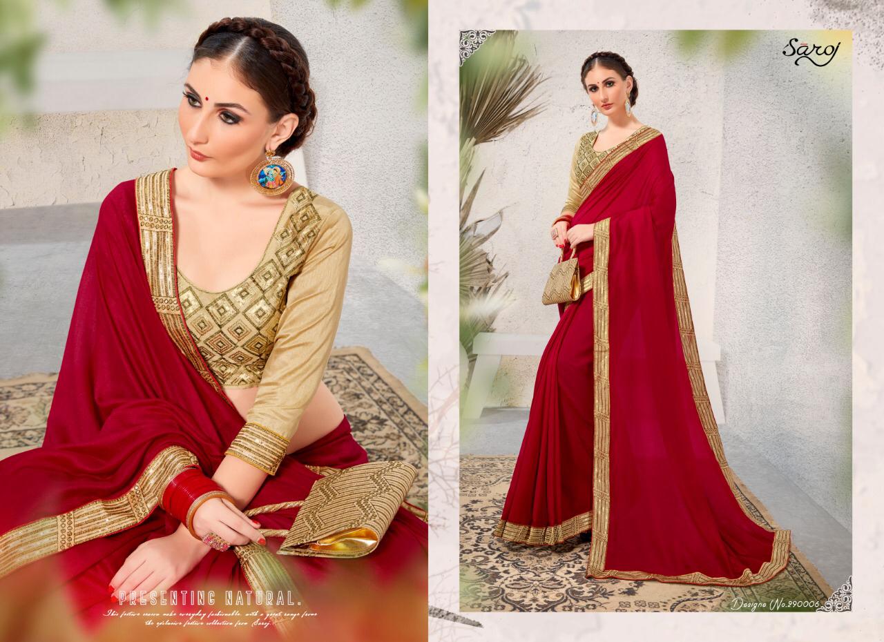 Golden Moments By Saroj Plain Saree With Fancy Blouse Concept