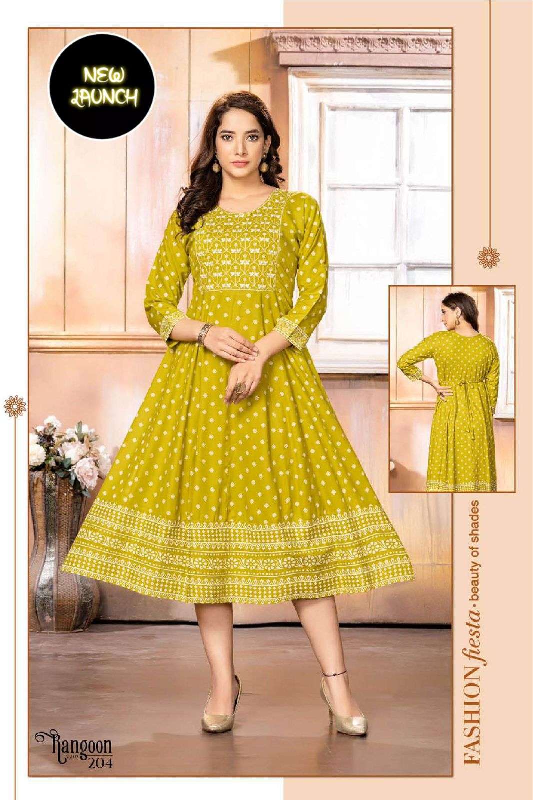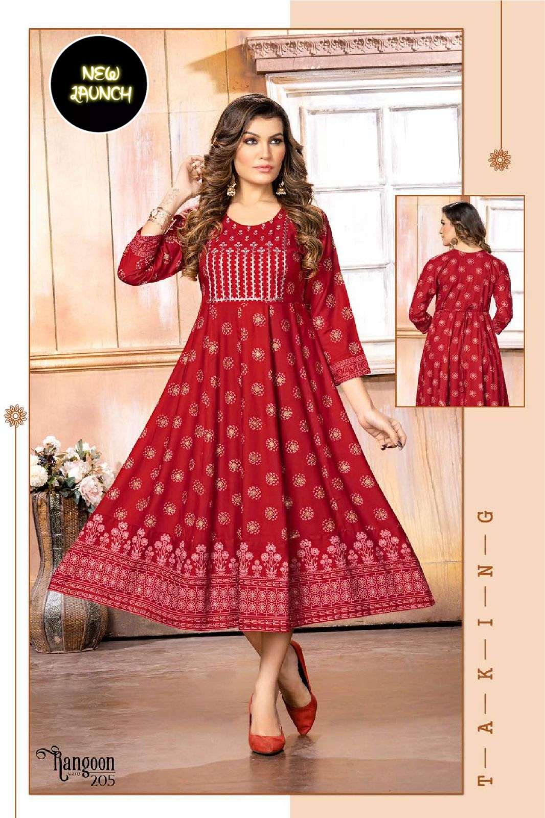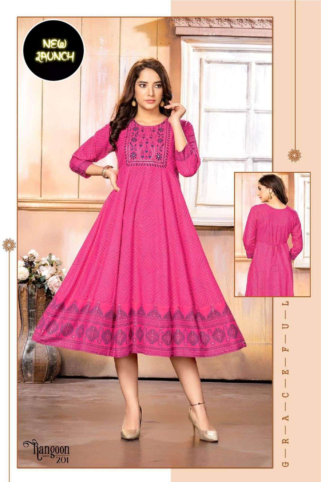 GOLDEN RANGOON V.2 HEAVY RAYON PRINT KURTI CATALOG WHOLESALER BEST RATE