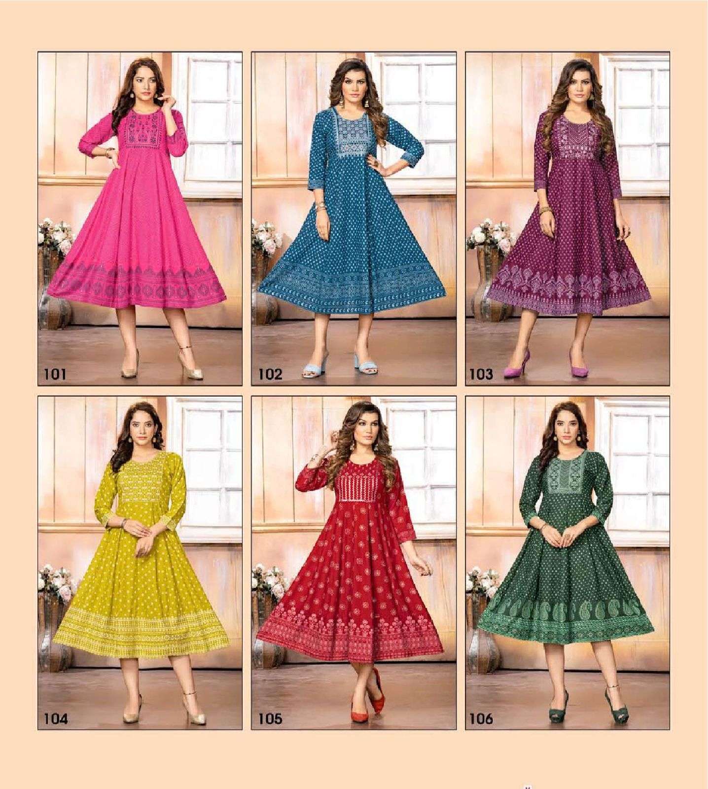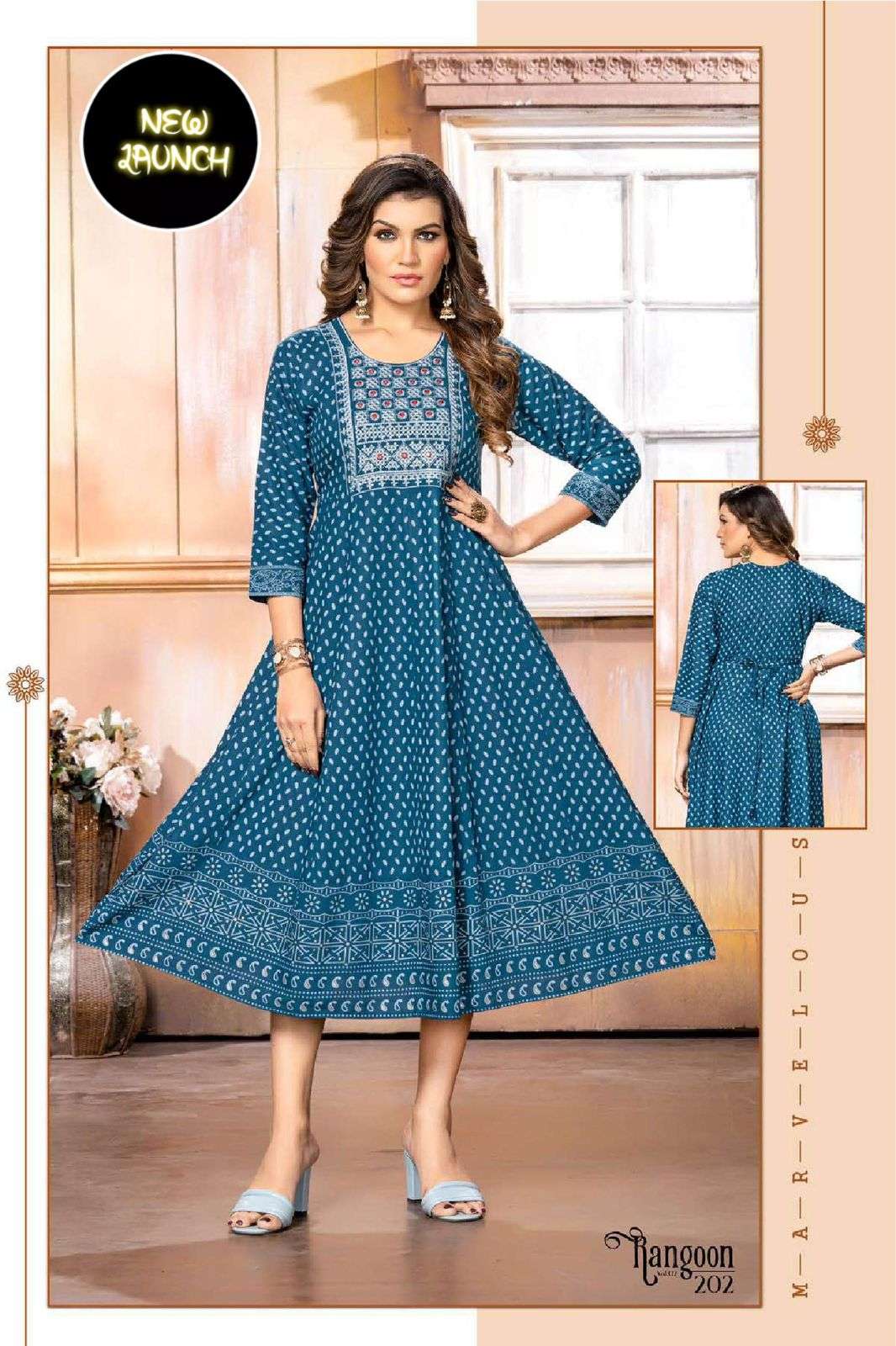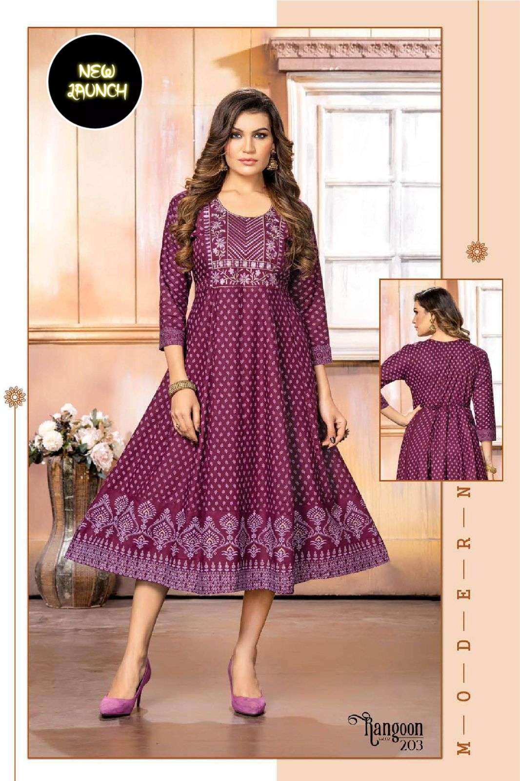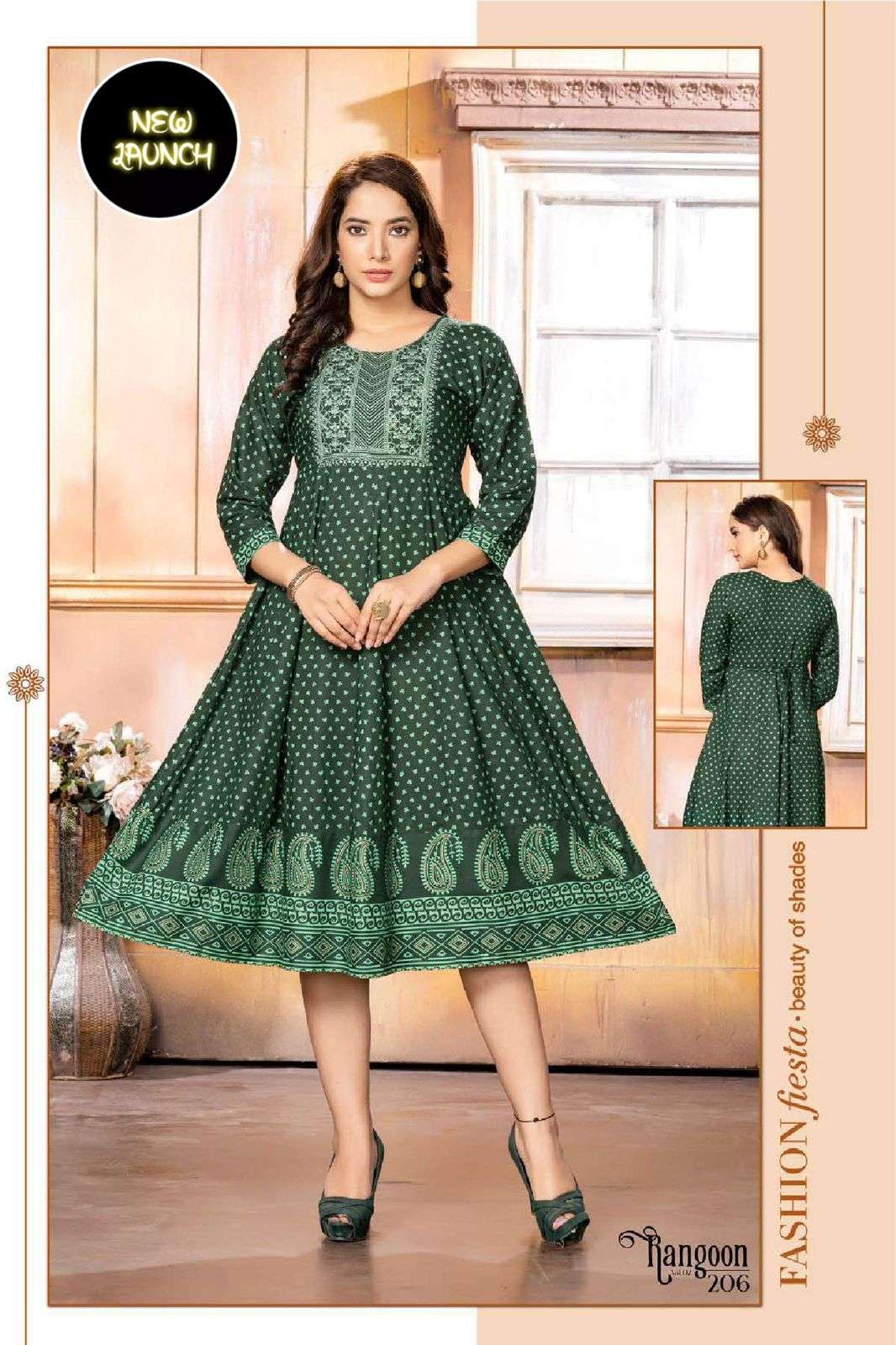 GOLDEN RANGOON V.2 HEAVY RAYON PRINT KURTI CATALOG WHOLESALER BEST RATE
