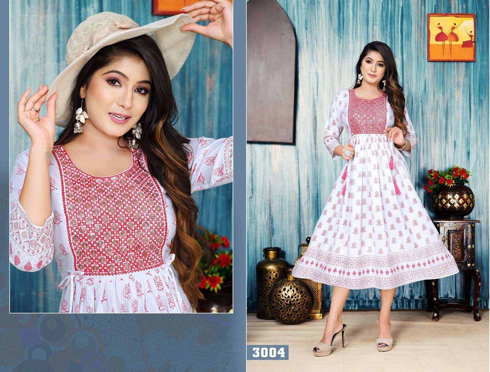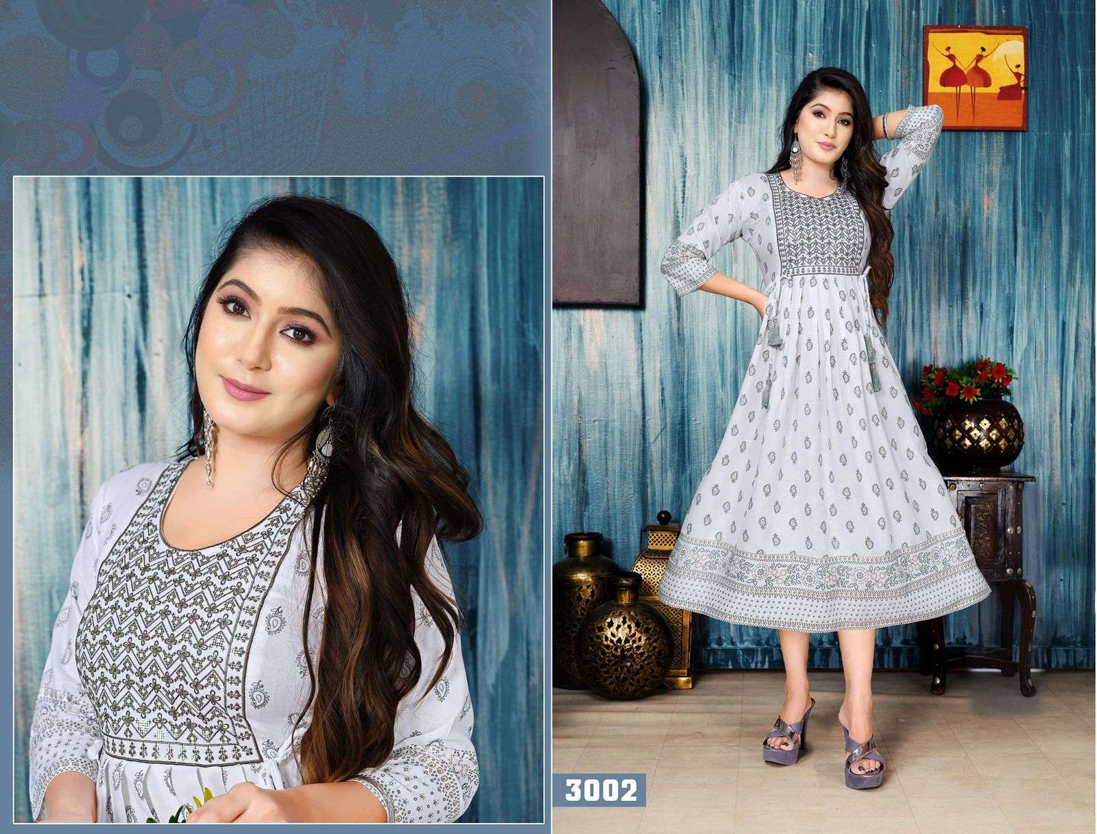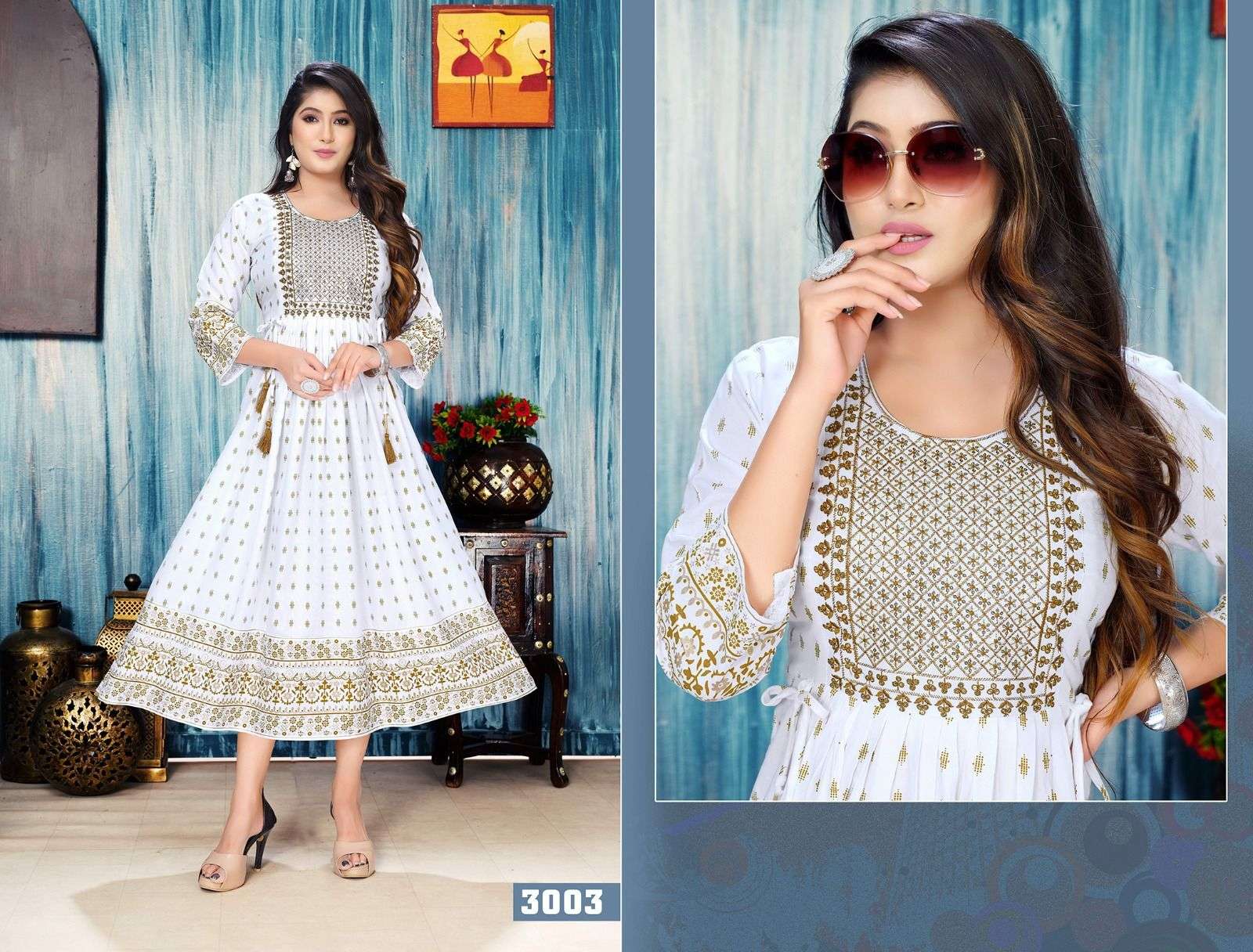 Name :- GOLDEN WHITE FLORAL Design :- 06 Fabric:- 14 kg Rayon Foil Print Size:- S M L.XL.XXL.3XL.4XL.5XL.6XL.7XL Length :- 48 inch Pattern :- Embroidered With Foil Printed Special :- Milky White Style :- A- Line Ghera Pattern Price :- 470/- |