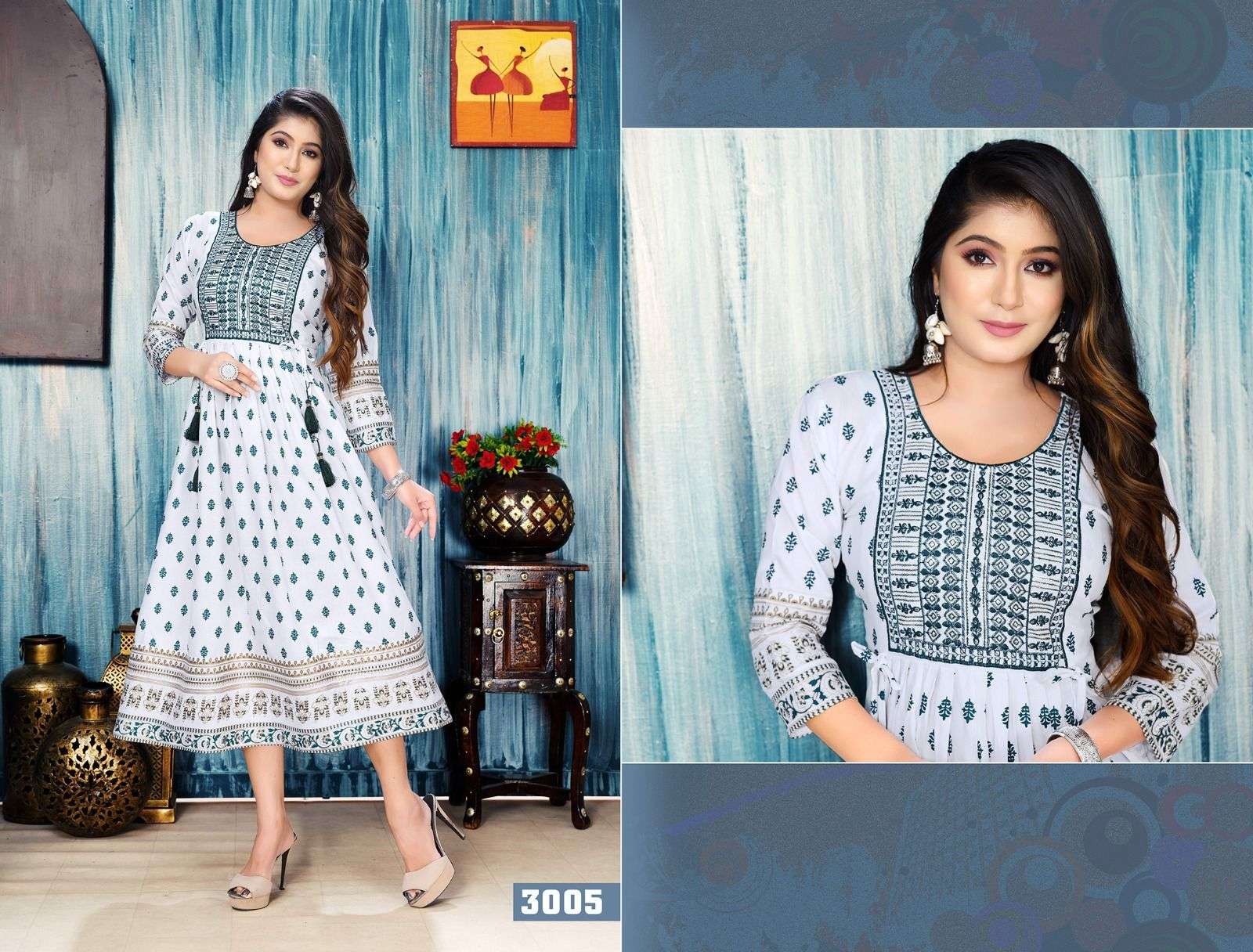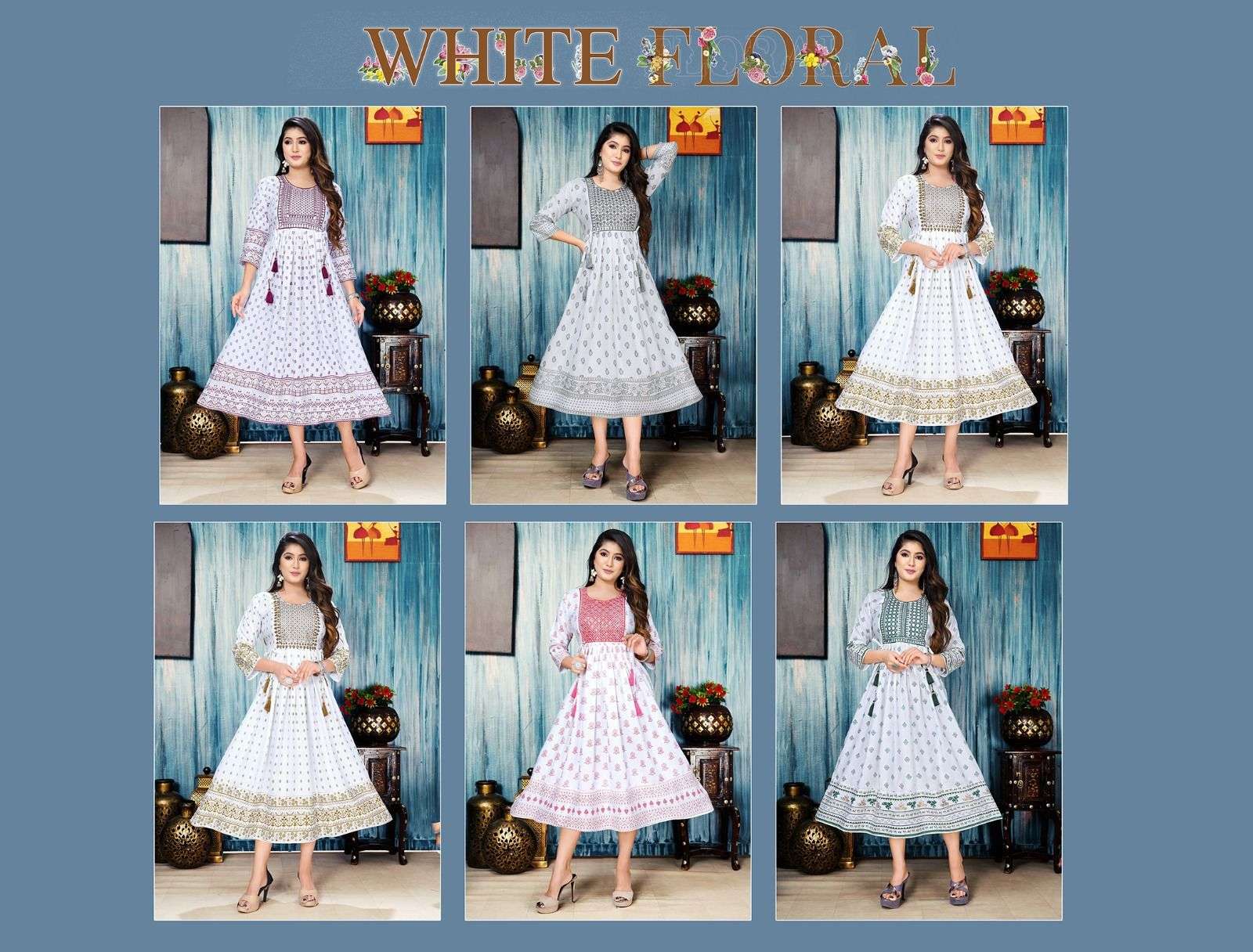 GOLDEN WHITE FLORAL 14 kg Rayon Foil Print KURTI CATALOG WHOLESALER BEST RATE