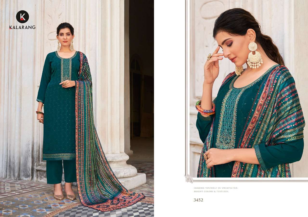 Kalarang Fashion Presents Latest Collection Launched on 22-11-2021. Presenting Beautiful collection of 4 PCS with Unstitched .