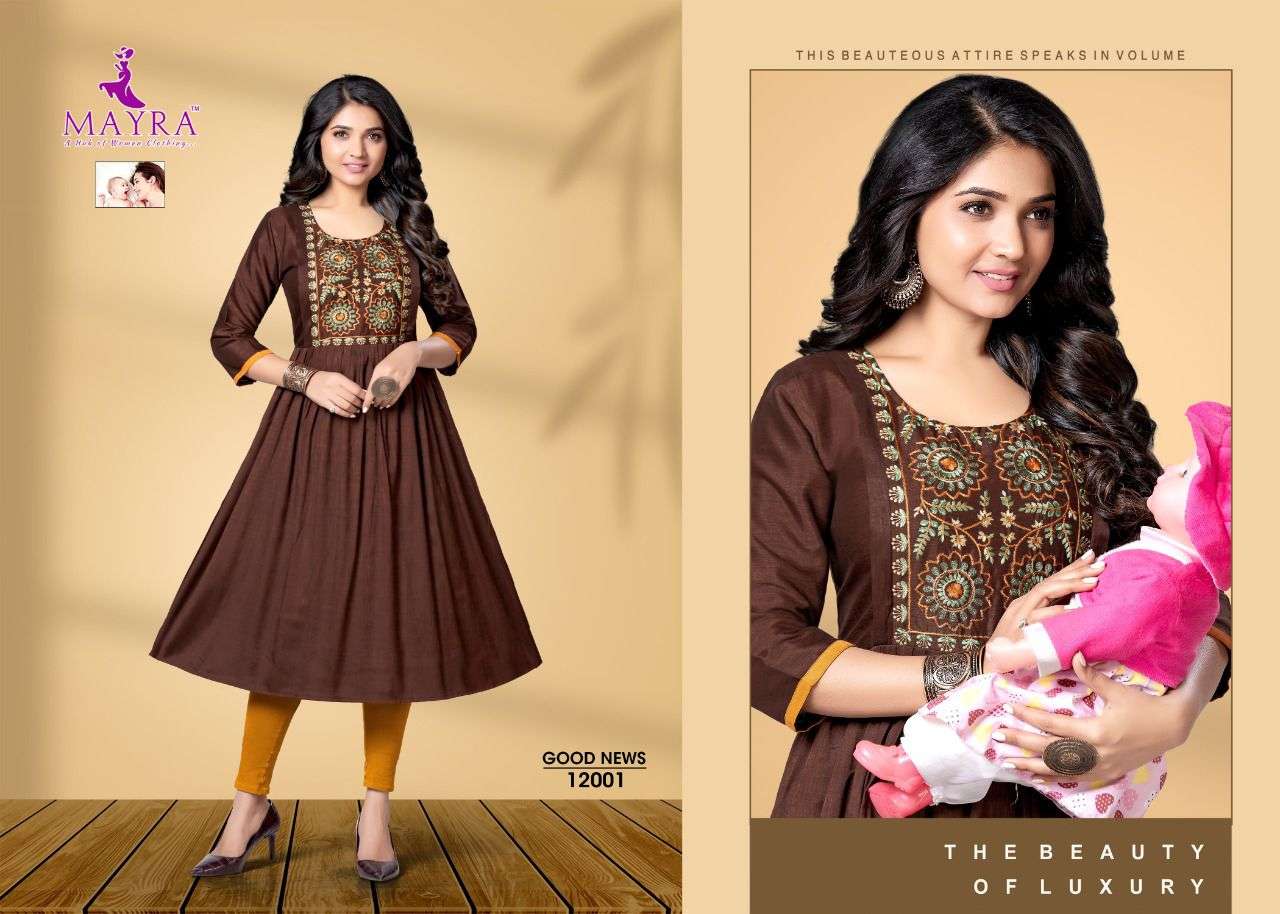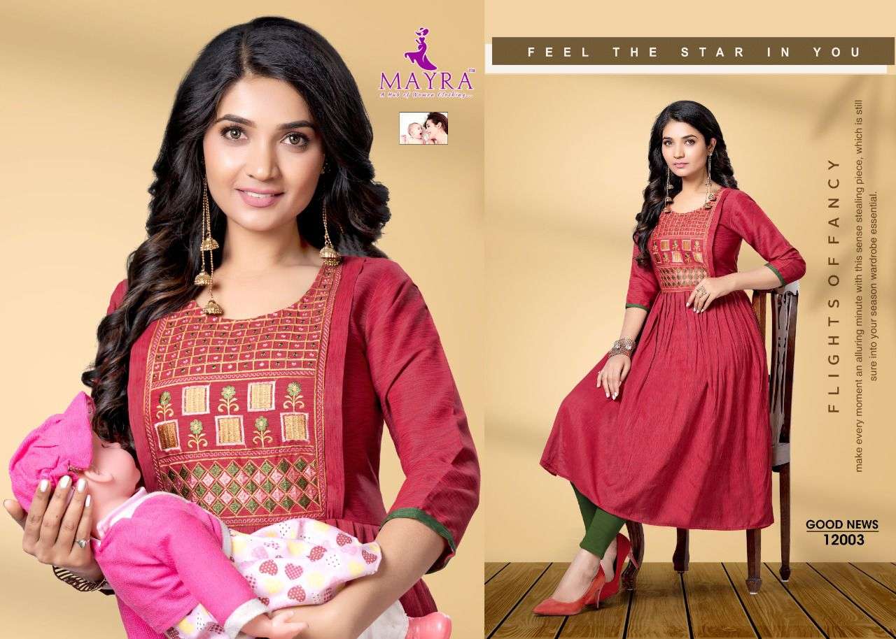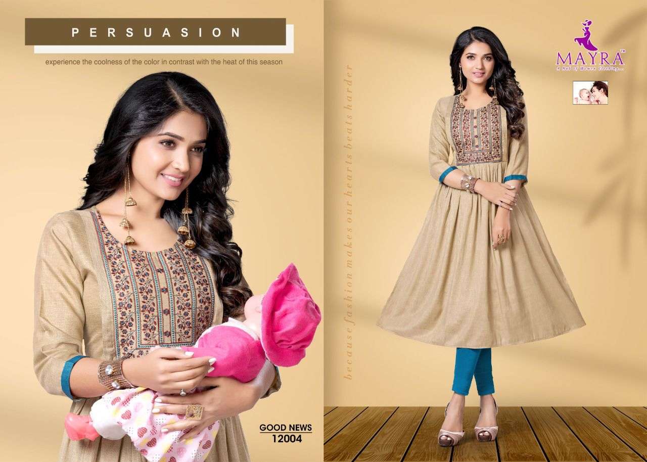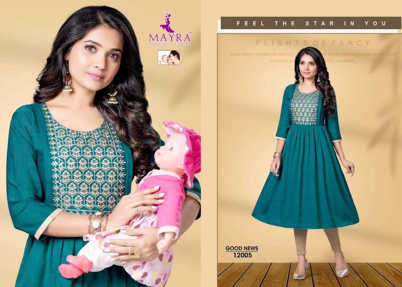 GOOD-NEWS BY MAYRA HEAVY REYON liquid Slub Embroydrey Feeding top CONCEPT with Nayra cut (side open) KURTI CATALOG WHOLESALER BEST RATE