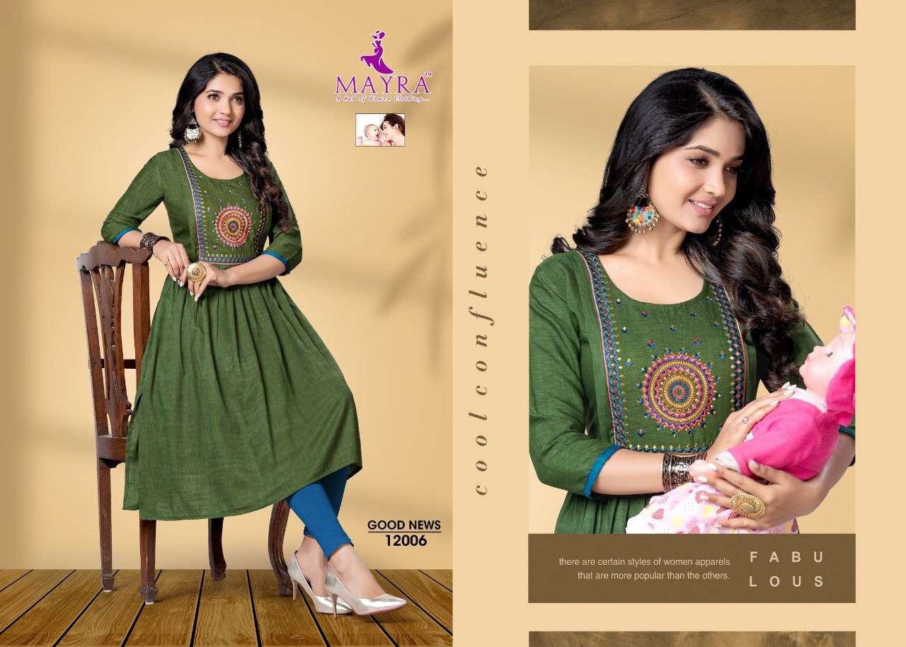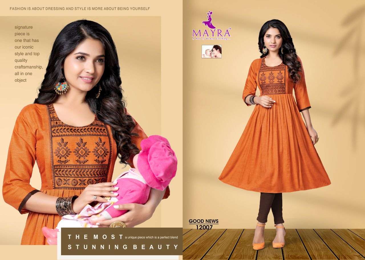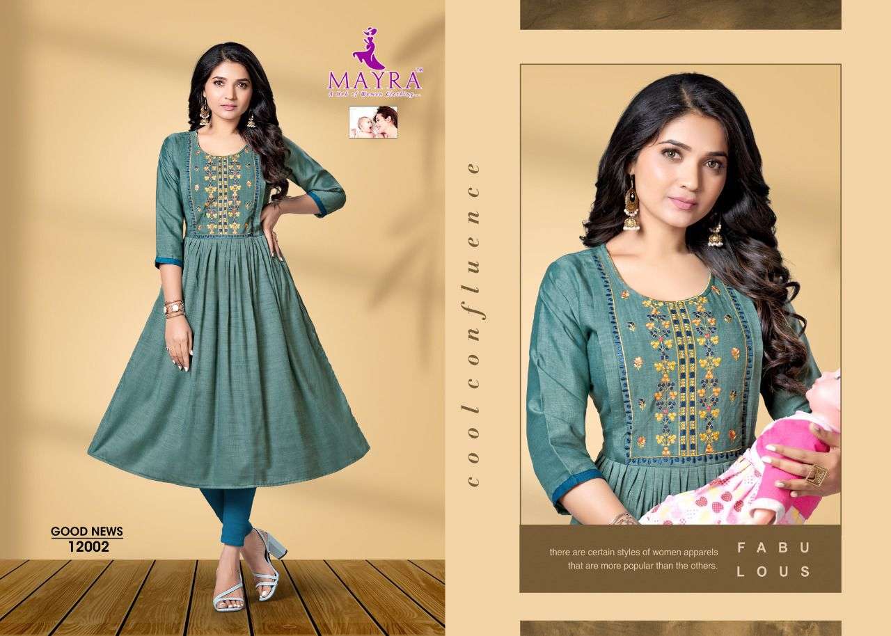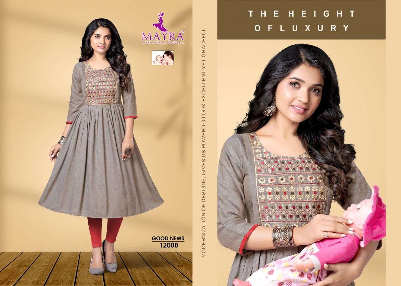 GOOD-NEWS BY MAYRA HEAVY REYON liquid Slub Embroydrey Feeding top CONCEPT with Nayra cut (side open) KURTI CATALOG WHOLESALER BEST RATE