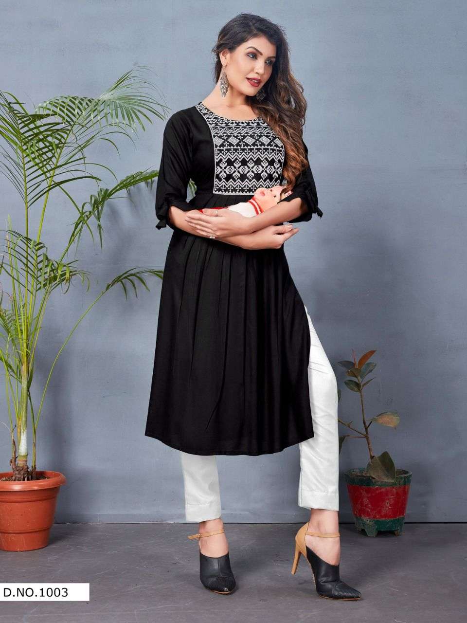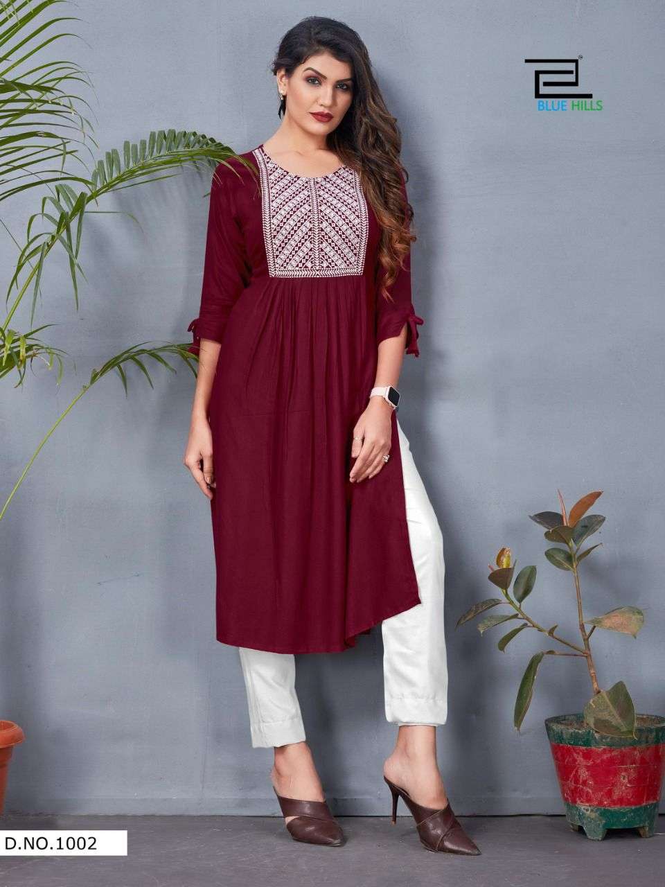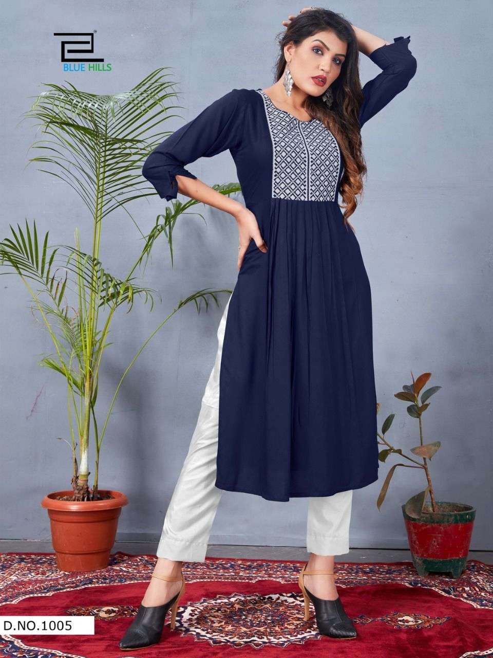 blue hills present ( Feeding top ) ( Twin vertical Zip ) Name:-.  Good news vol-10 Fabric.  : Rayon 14kg Concept:- Embroidery work        Style.    : * Nayra cut* Sleeves. : 3/4 sleeves Length.  : 45 (Approx) Sizes    : L (40) XL (42) XXL (44) Rate - 445+GST Designs  : 8 |