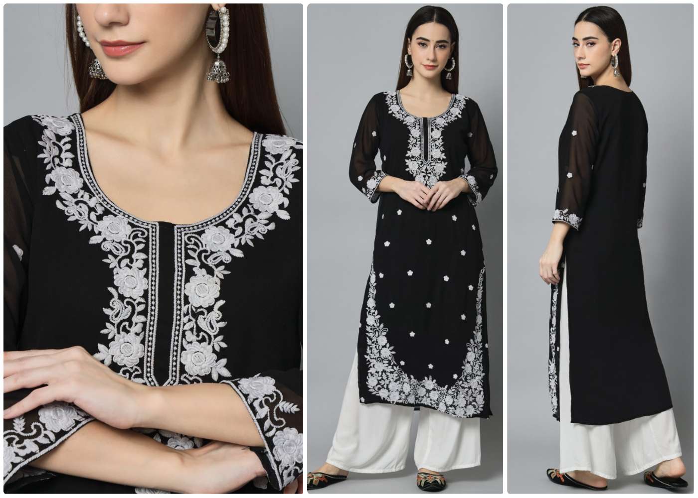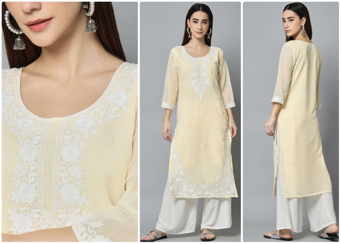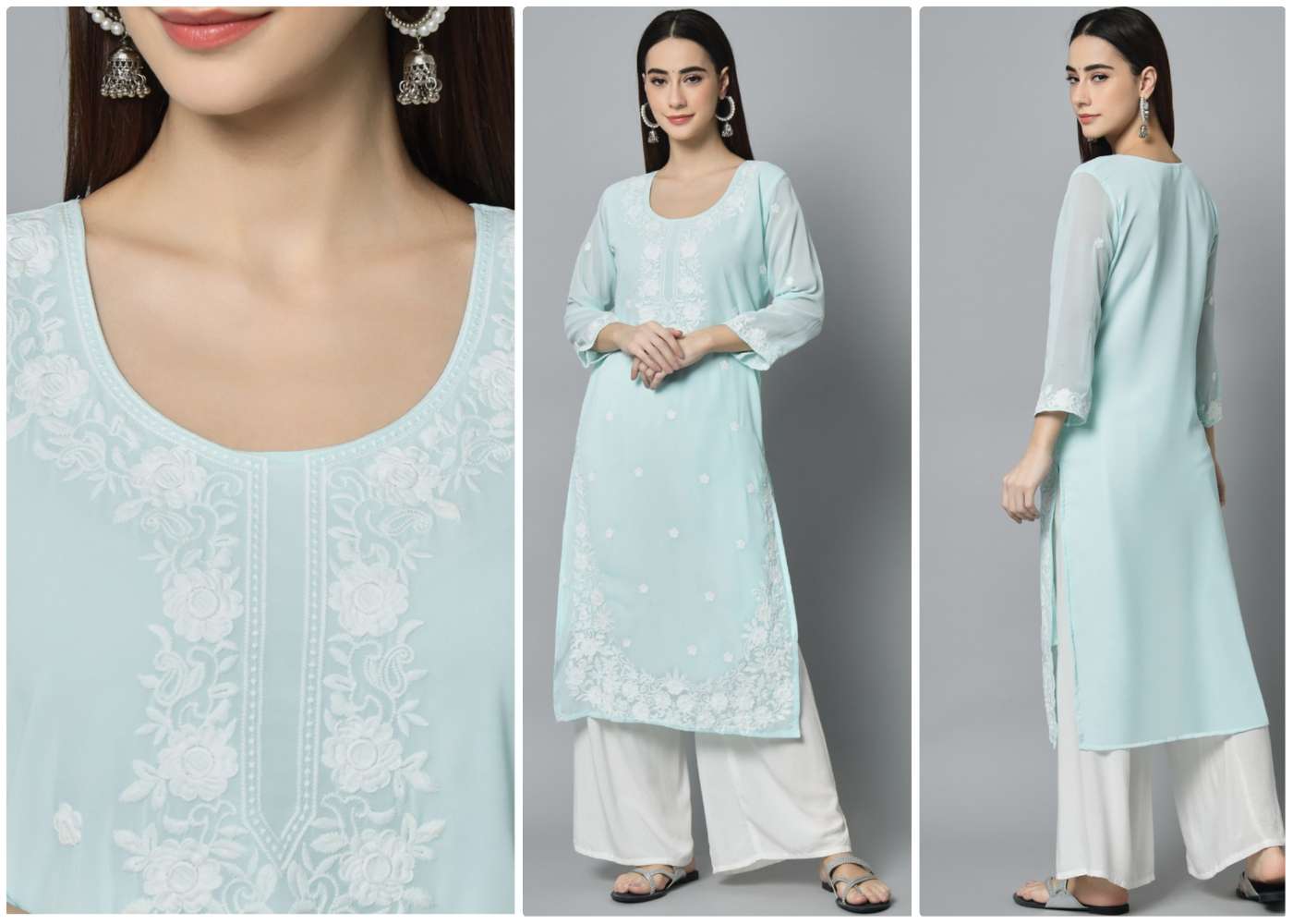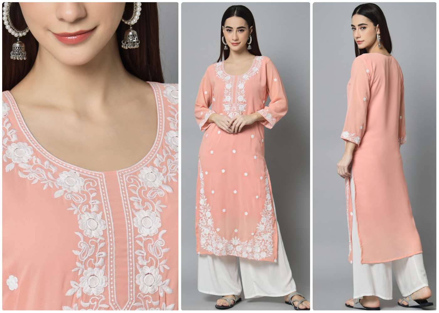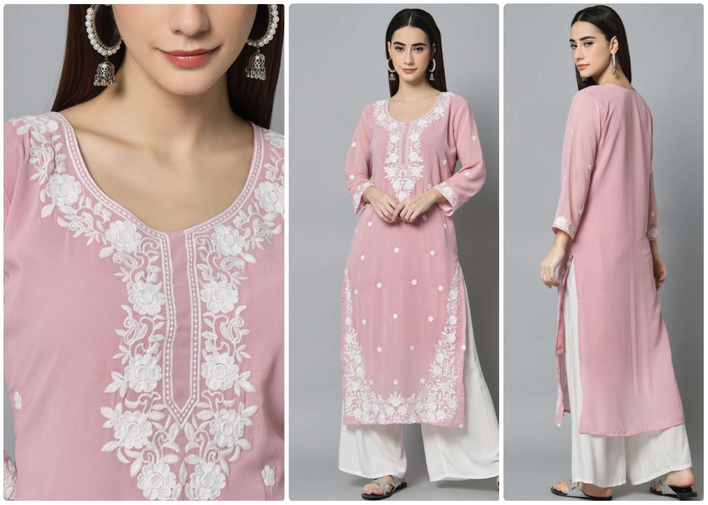 Gopala Georgette with crepe inner and Lucknowi Embroidery Work |