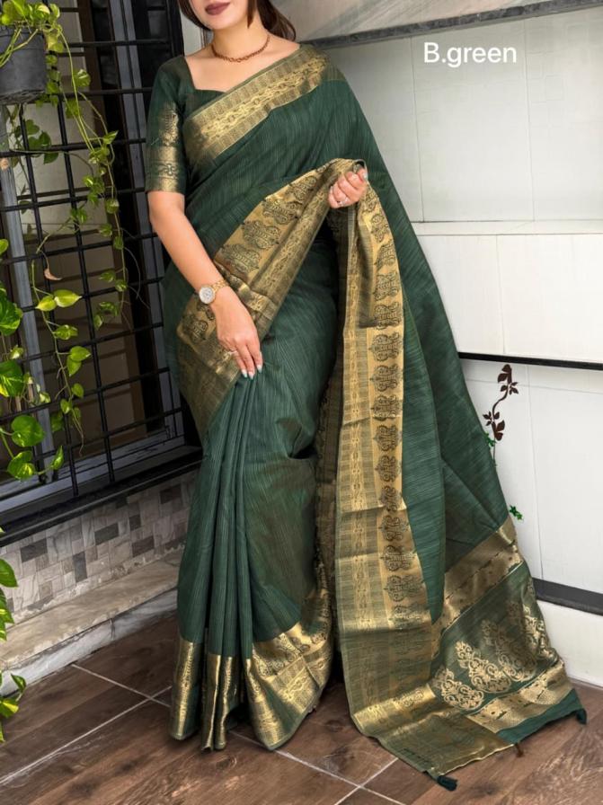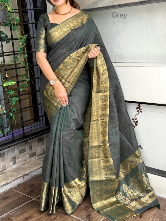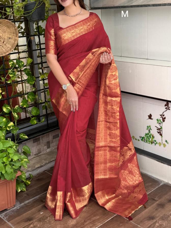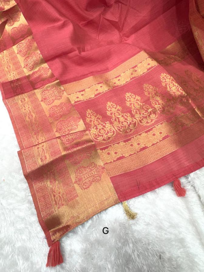 Design- Gowri vol-4 A simple solid colored causal wear saree with touch of zari weaving jacquard Product details Fabric- Size- Pattern- Rate : 499/- +gst |