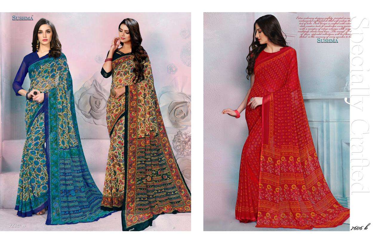 grace vol 5 by sushma silk georgette printed casual wear saree