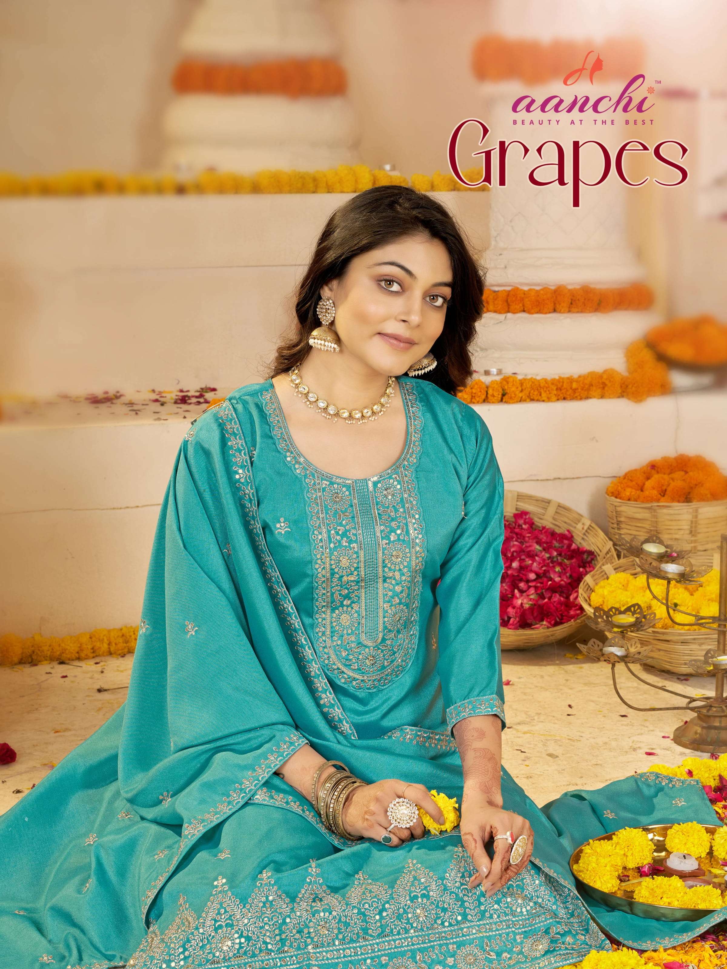 grapes by aanchi readymade unique crystal silk suit for womens