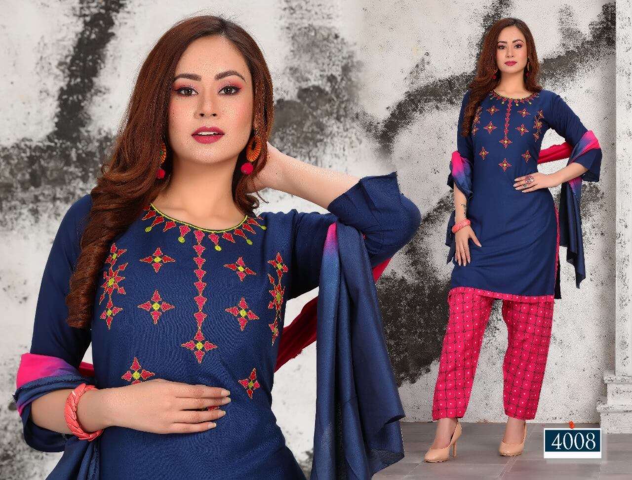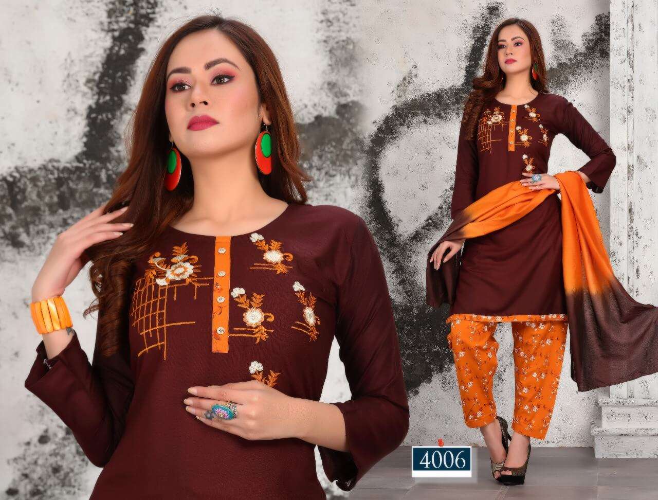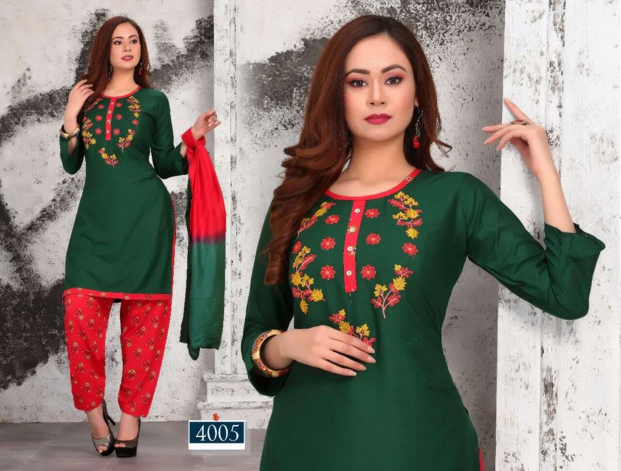 IN STOCK Model:tt-gravity Weight:3.00kg MOQ:8 Pcs Fabric: 140 gm reyeon Length: 36-38 Work: Embroidery Type: SALWAR SUIT Size L XL |