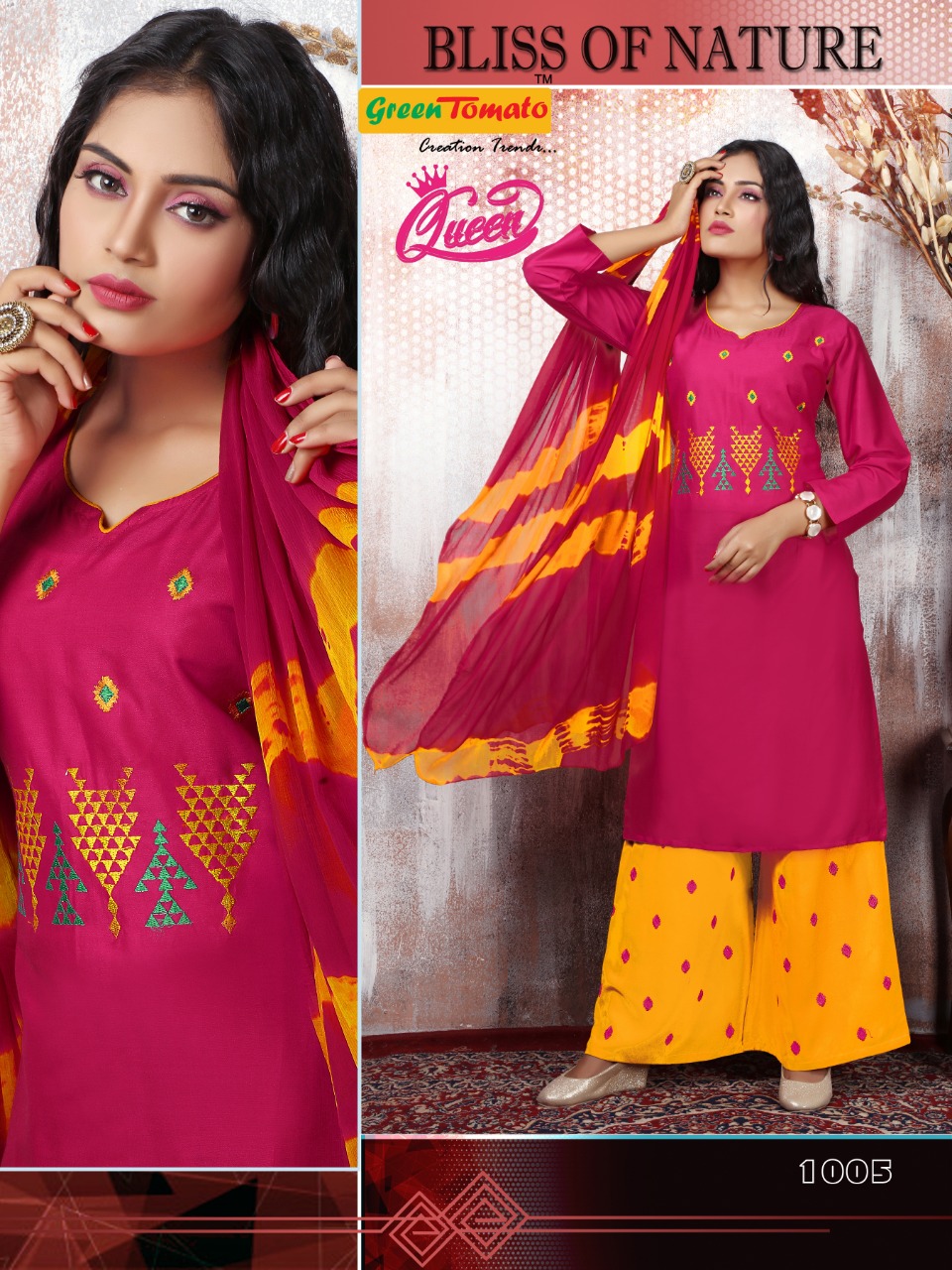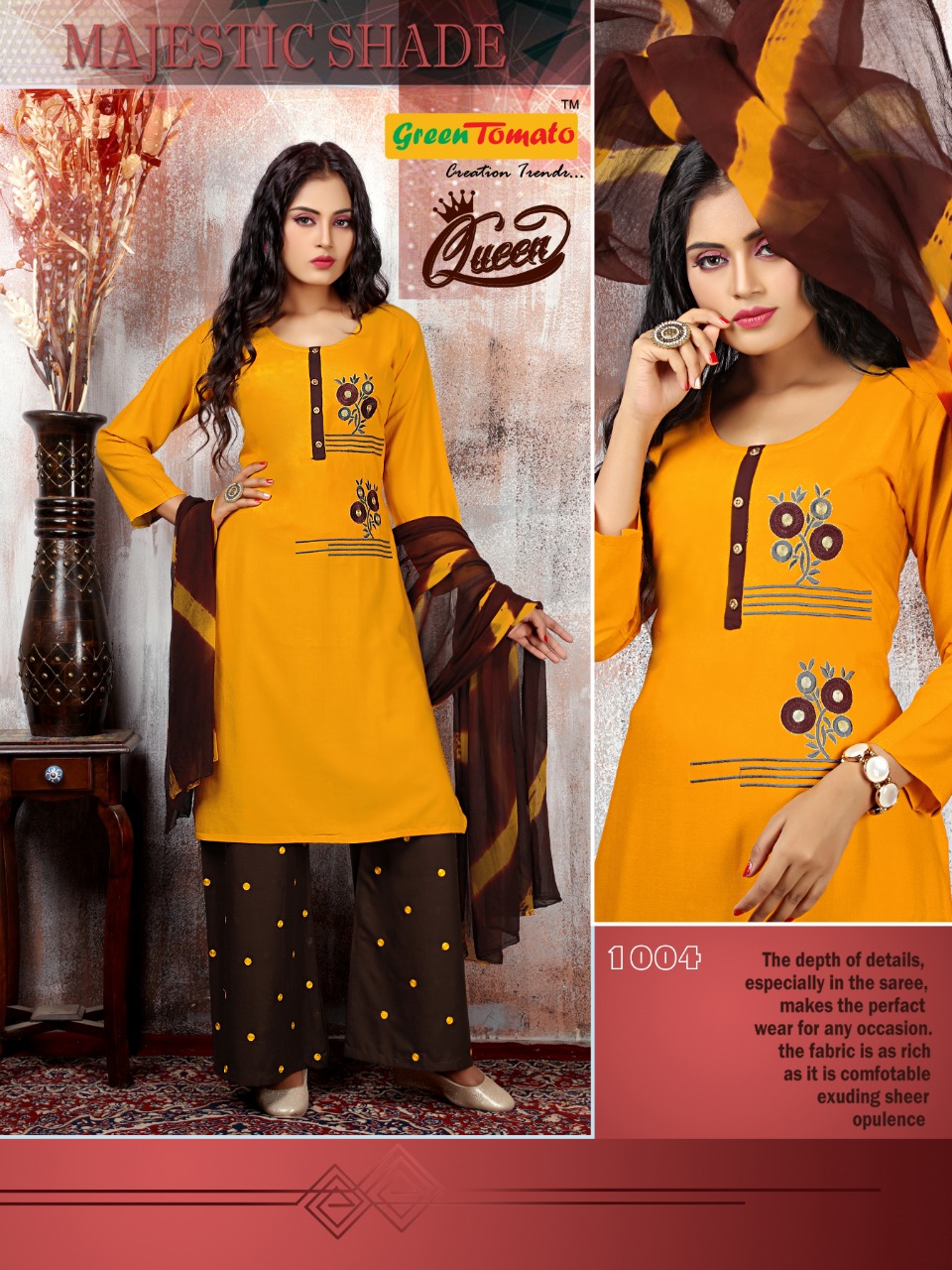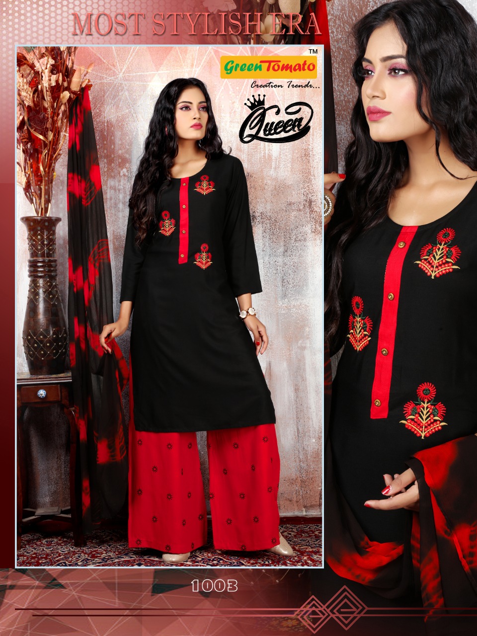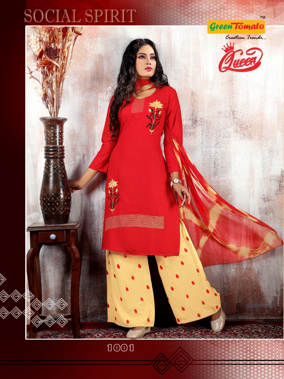 Green Tomato Present Queen Rayon Embroidery Readymade Palazzo Salwar Kameez