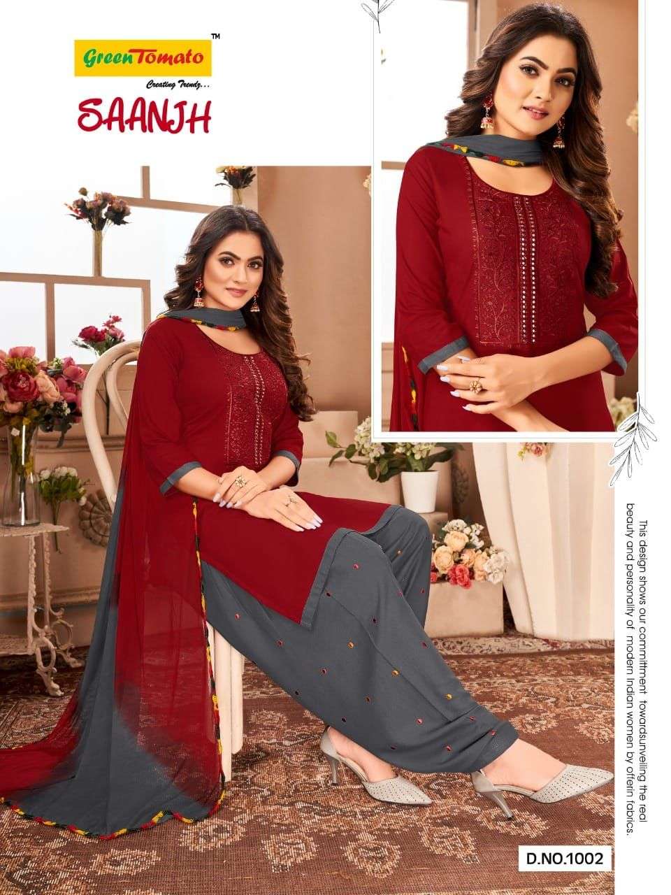 GREEN TOMATO SAANJH PATIYALA Heavy Rayon READYMADE SUIT CATALOG WHOLESALER BEST RATE