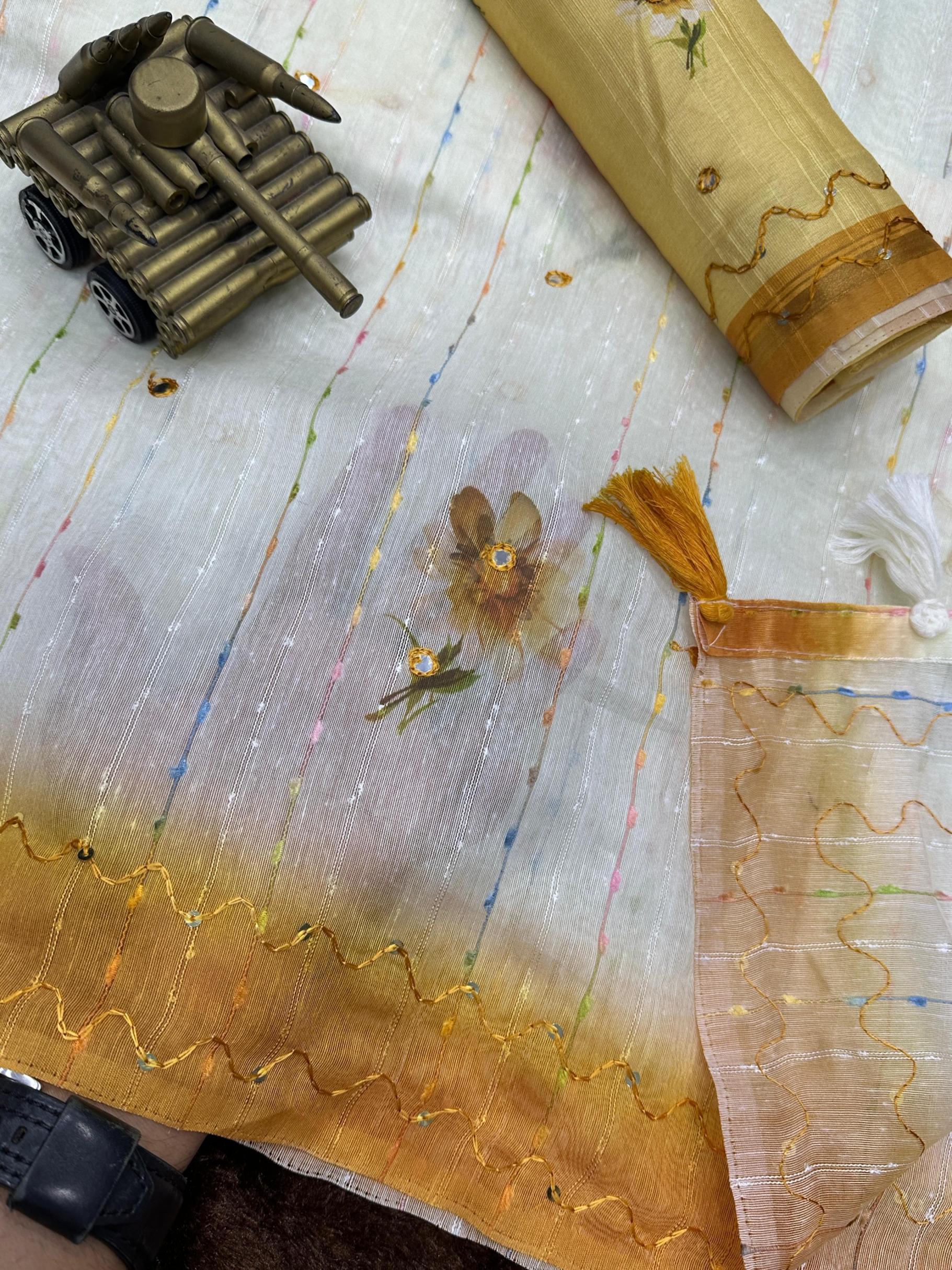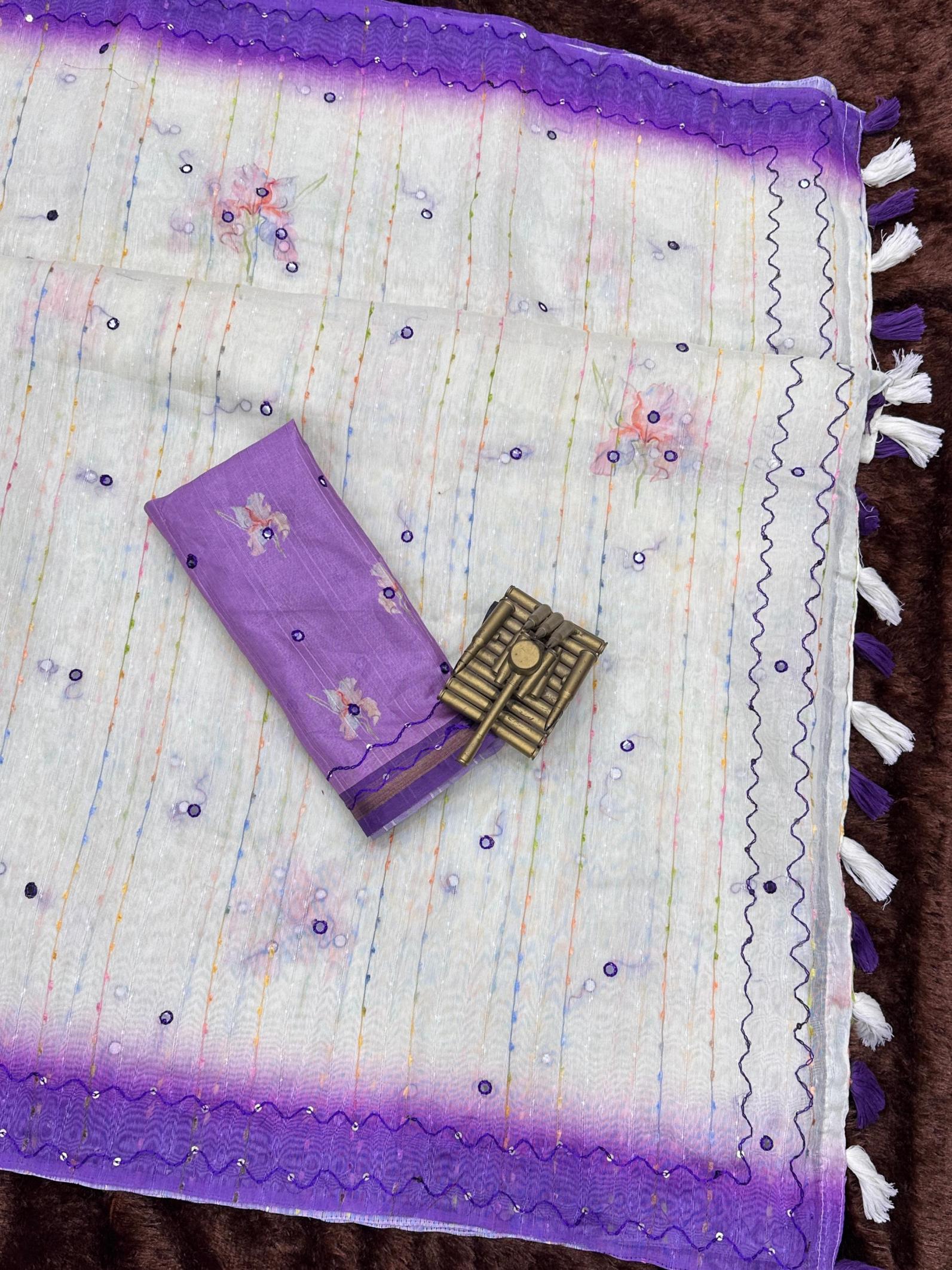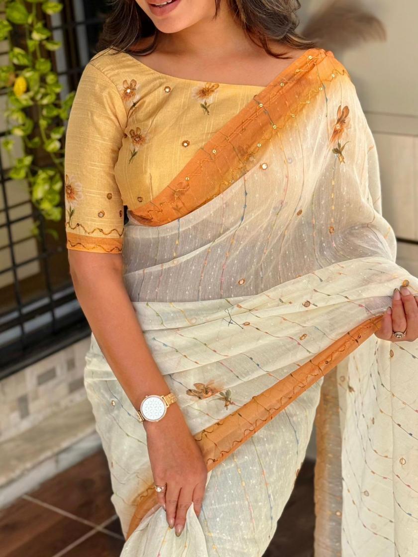 Design- Grishma✨ Presenting here a perfect saree with an elegant look of its contrast color shades with katha work for summer collection Product details👇🏻 Fabric- Size- Pattern-