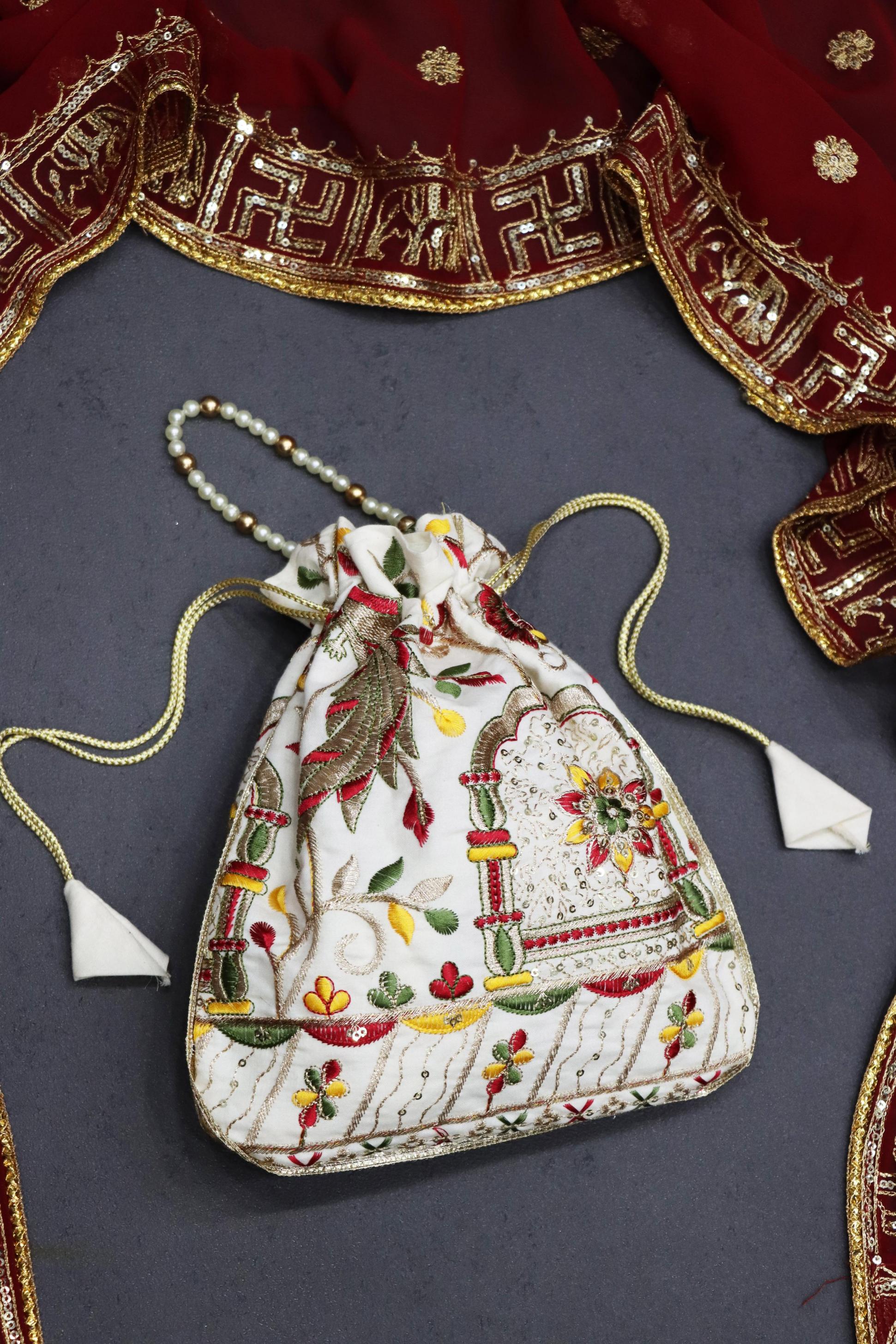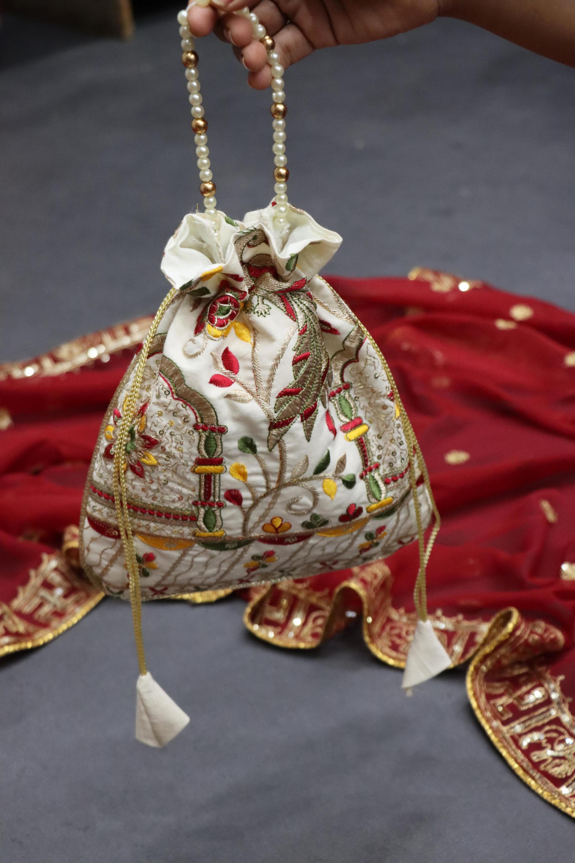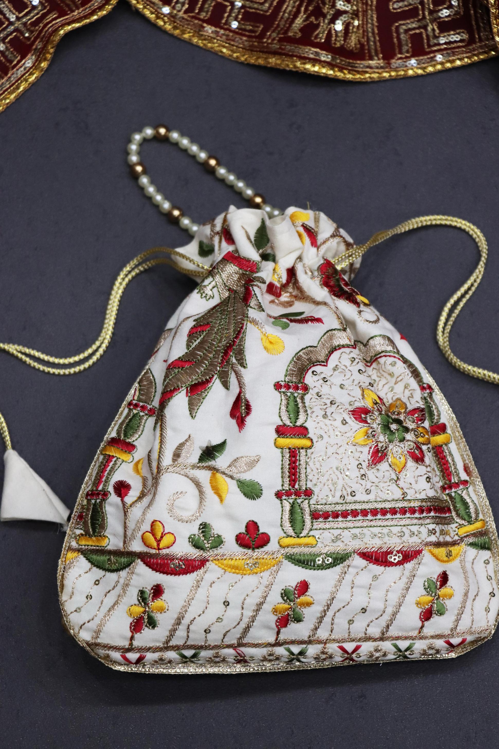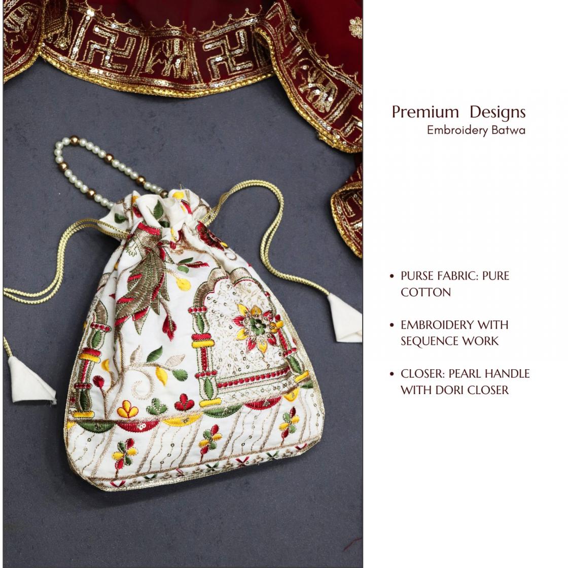 Designer Batwa with Pearl Handle ✨ 👜Elevate your ethnic charm with our exquisite Designer Batwa with Pearl Dori—a perfect blend of tradition and elegance.Pair it with your ethnic outfits to complete your traditional look with grace and sophistication! 🌸 GRTN4002OFFWHT Potli Purse Fabric Price: 299/- Book Here 👜 |