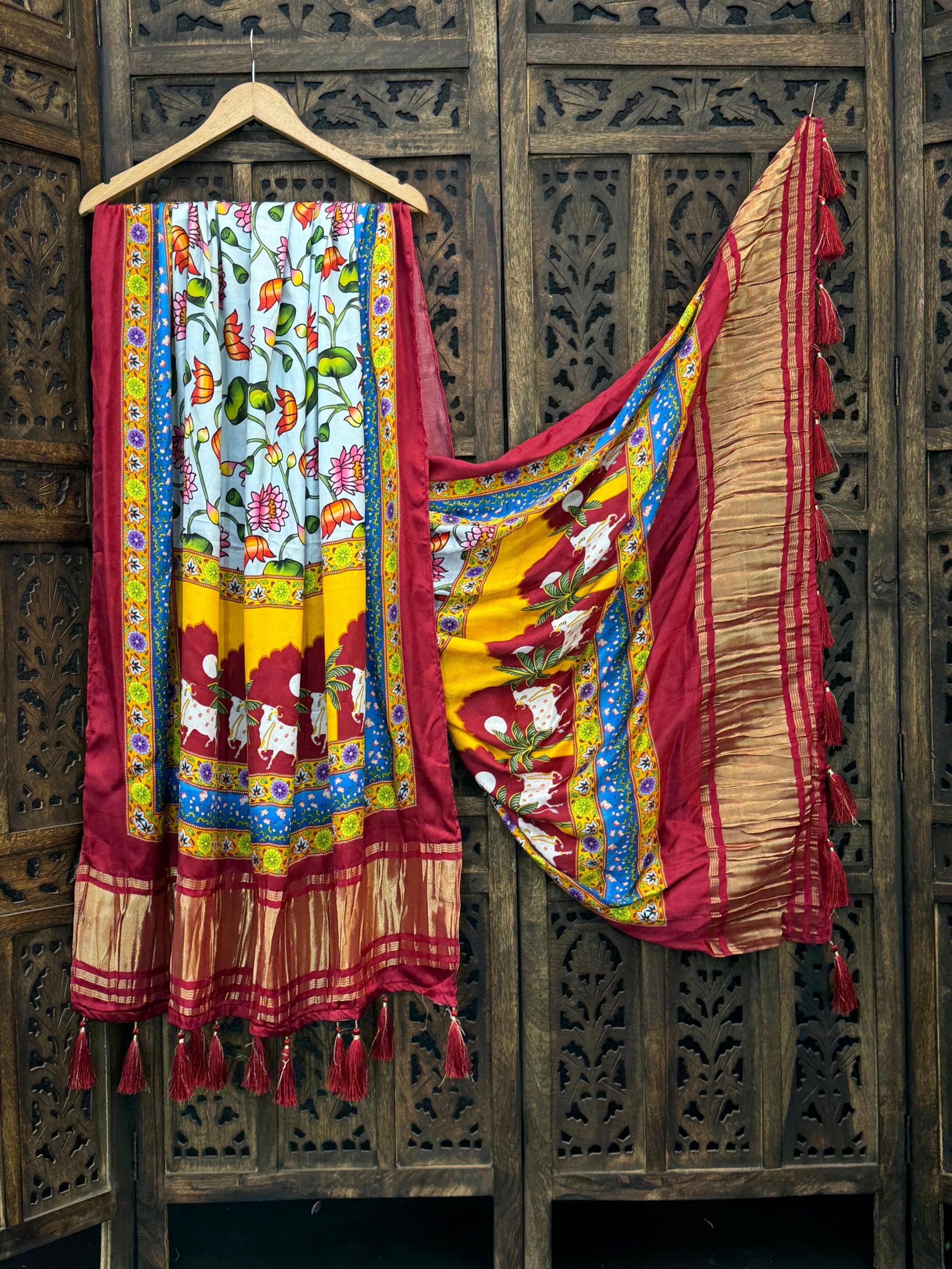 🆕 Gaji Dupatta Collection 🌼 Explore Colorful Dupatta Style for Your Garments,Pure Gaji Silk Printed With Lagdi Patta,Its Suitable for Both Younger Lady to Older Women, can be Drapped on Kurtas, Sarees, Dresses, Gowns as per your Style Requirements. Explore the Latest Collection this Season. GRTN5104PNKORG