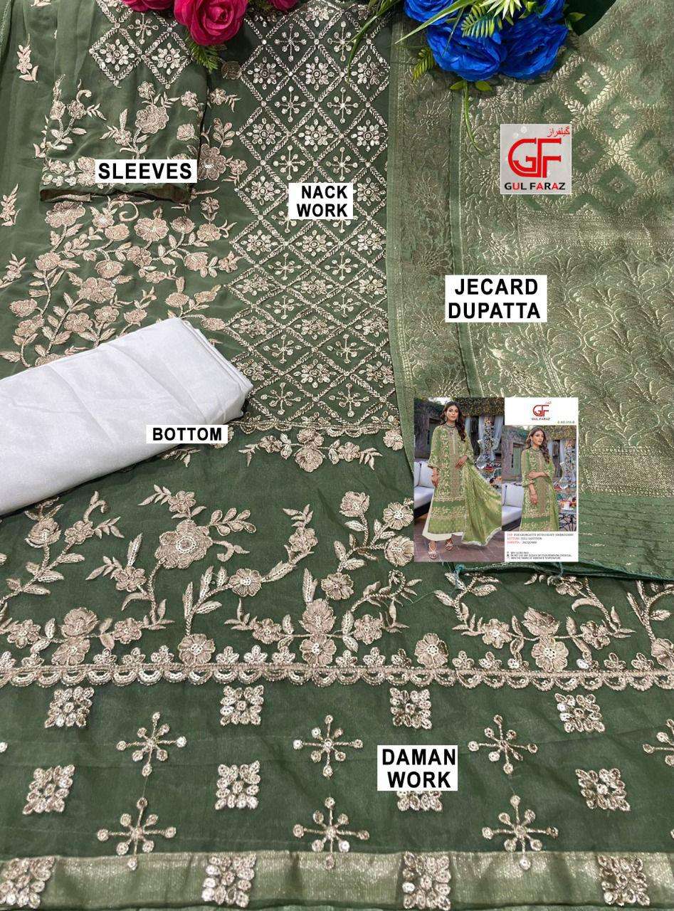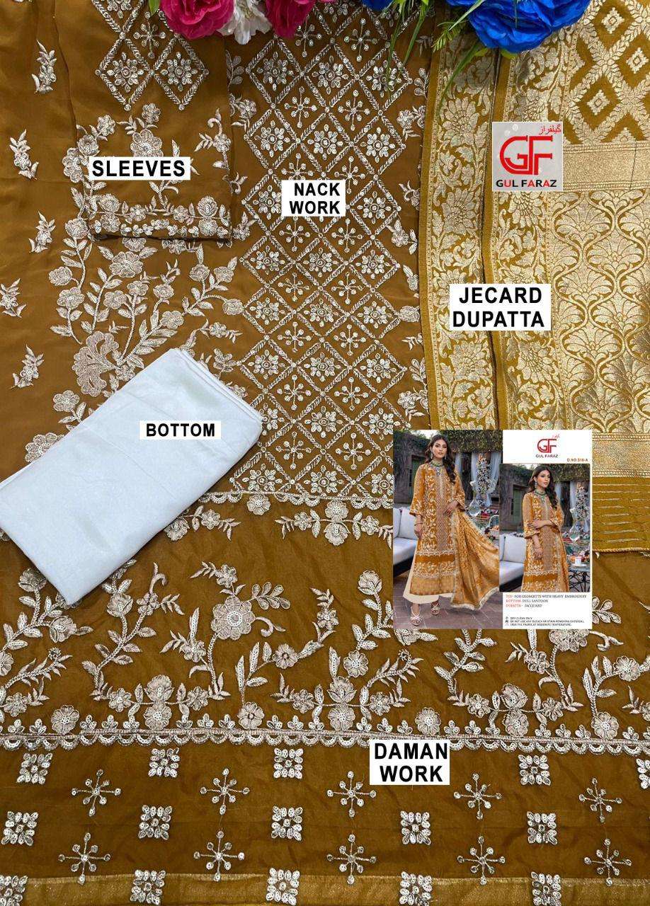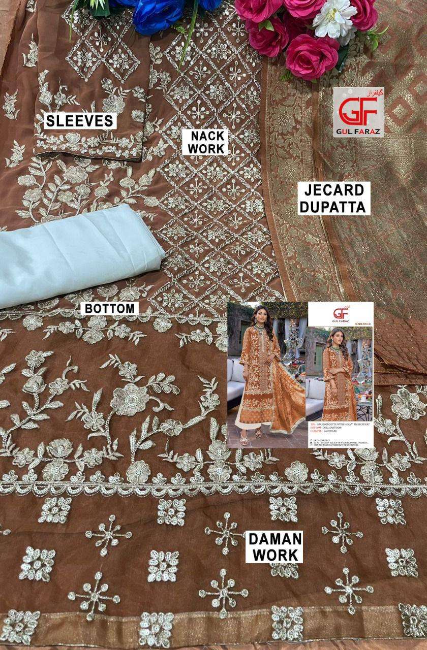 GUL FARAZ BRAND DESIGN NO.-510 DESIGN NO.:- 510 TOP:-FAUX GORGETTE WITH HEAVY EMBROIDERY Special:- JACARD VISCOUS DUPATTA GUL FARAZ SURAT |